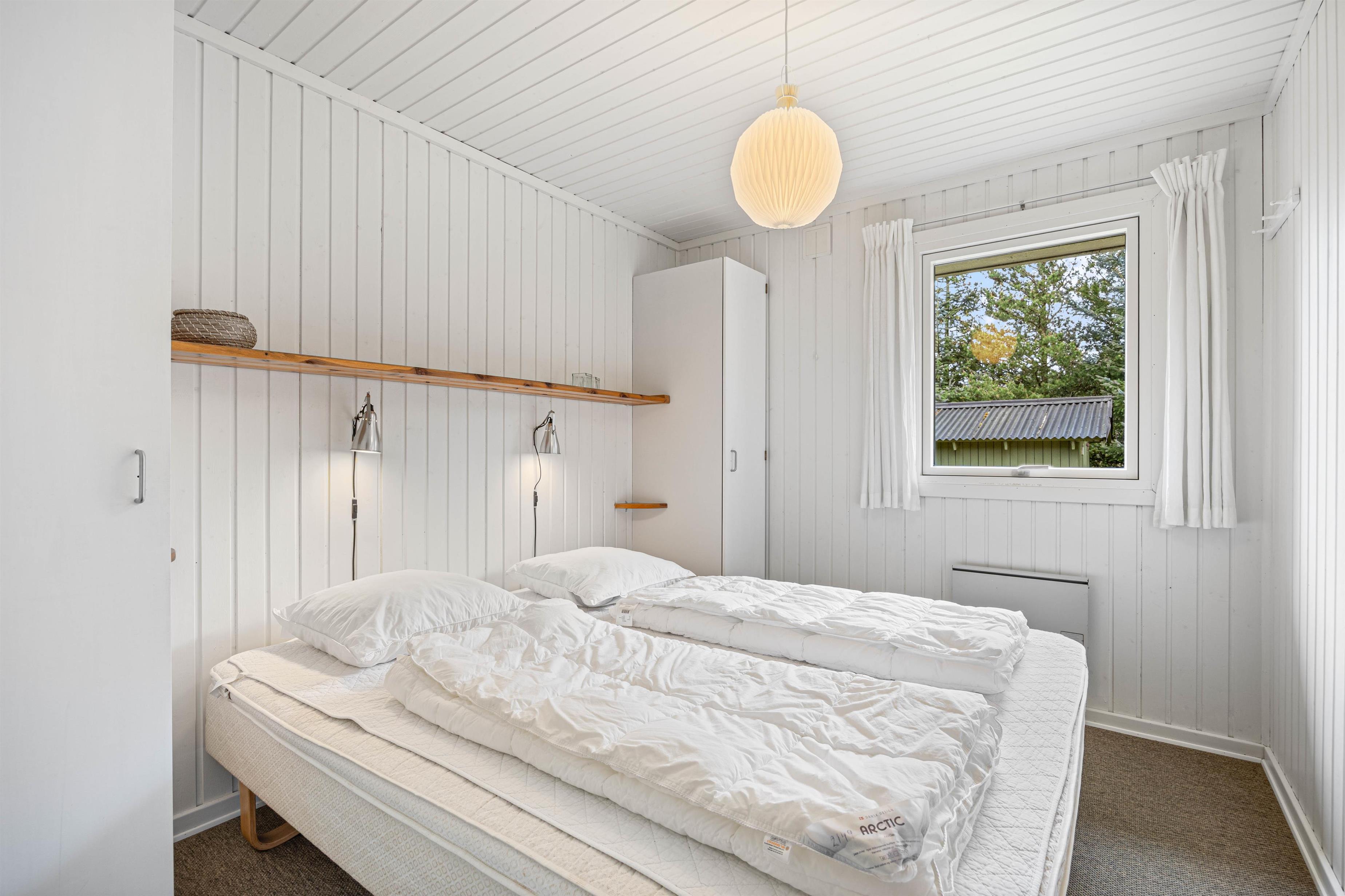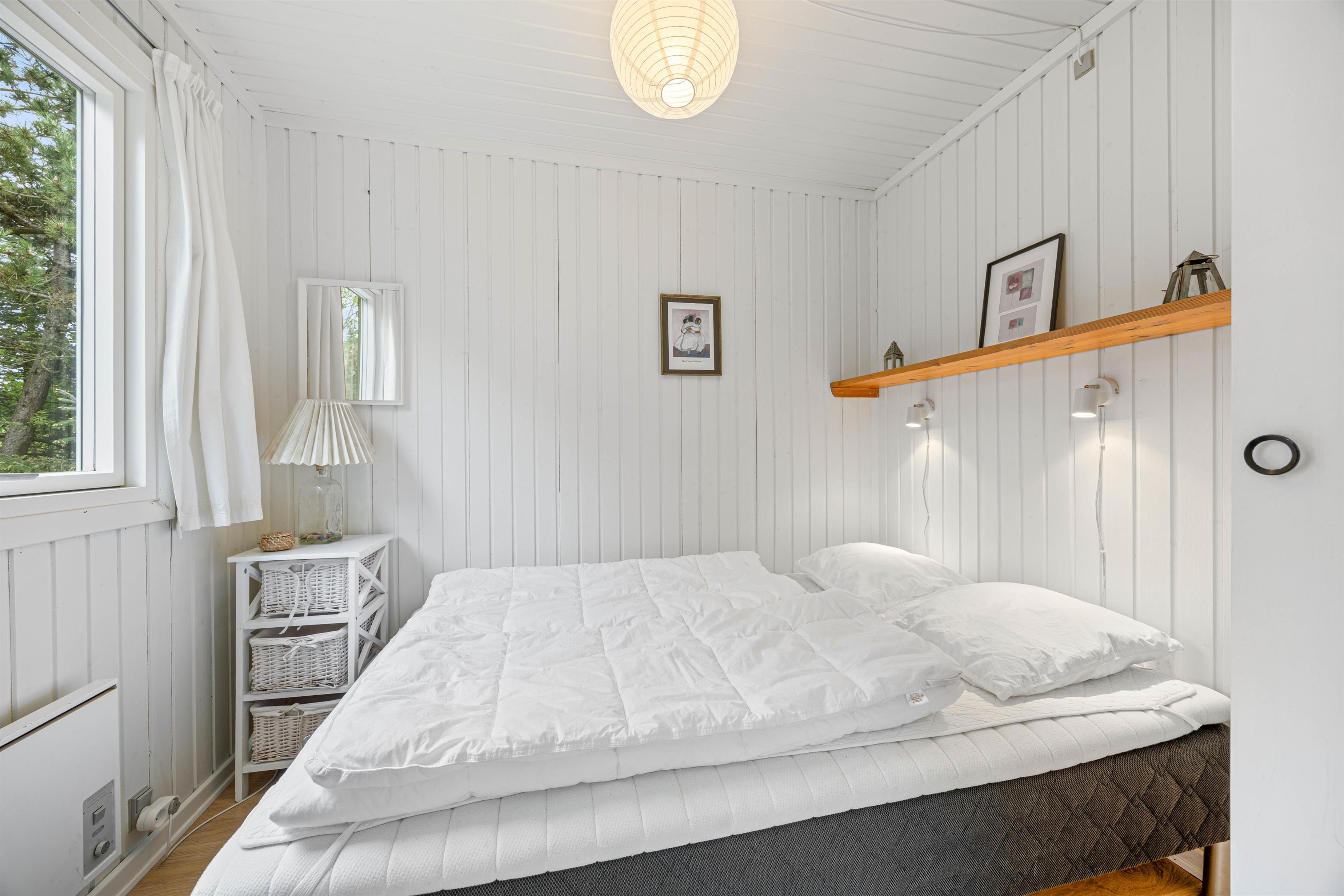 Dette hyggelige sommerhus fremstår lyst og indbydende og danner fine rammer om en afslappende ferie med familien. Sommerhuset rummer i alt 6 sovepladser, som er fordelt på 3 værelser – alle indrettet med dobbeltsenge, så I kan se frem til en god nats søvn efter dagens oplevelser. Badeværelset er udstyret med behagelig gulvvarme, så I kan starte dagen uden kolde fødder, selv på de køligere morgener.