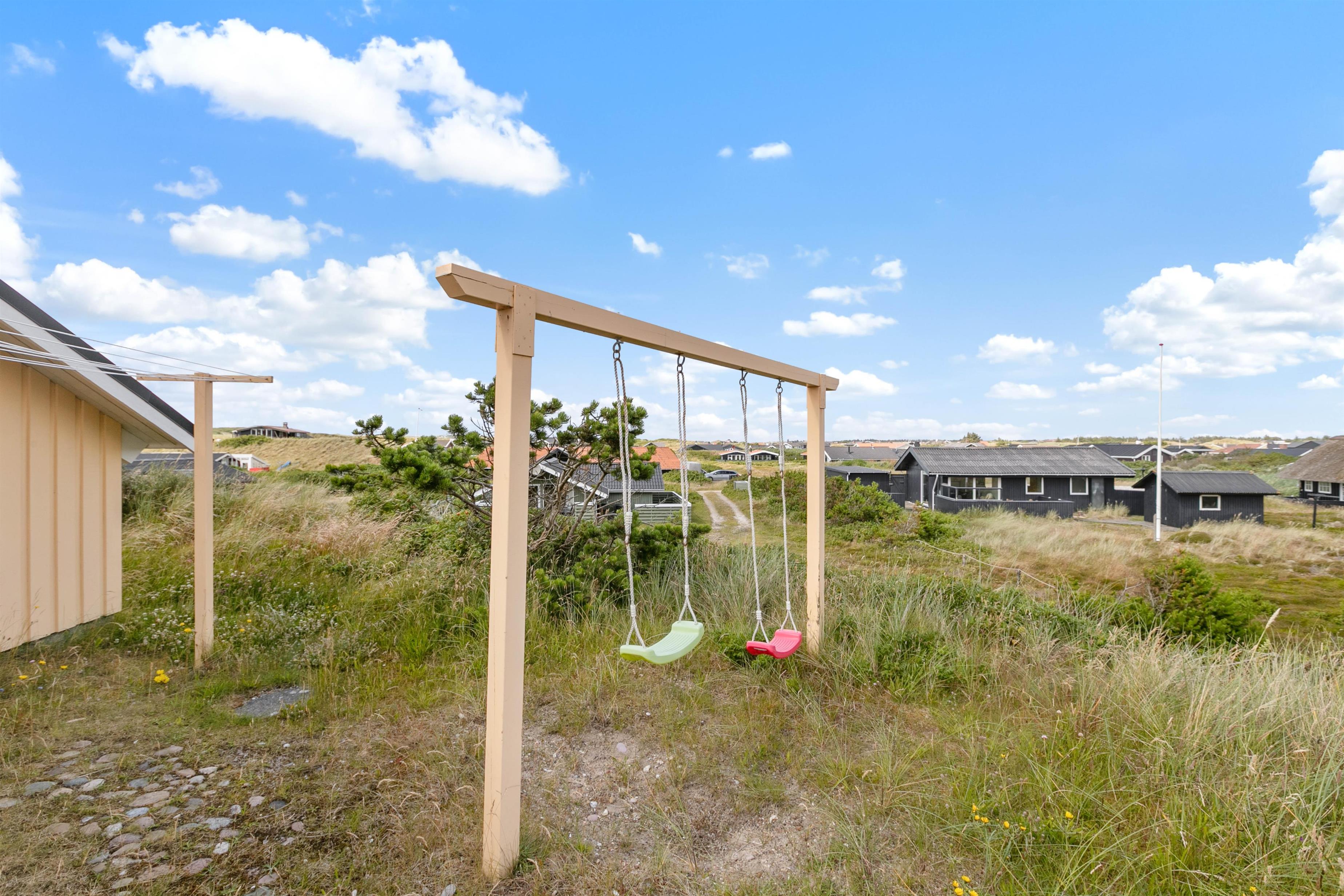 På de gode, delvist overdækkede, møblerede terrasser på den højtbeliggende naturgrund kan man rigtig nyde solen, naturen og den friske havluft. Den ene terrasse er helt lukket, hvilket særligt er praktisk for familien med småbørn. Her er det oplagt at trylle med husets grill til hyggeaftener i den skønne natur. Børnene har også mulgihed for at slå slig løs på de tilhørende gynger og i husets sandkasse.