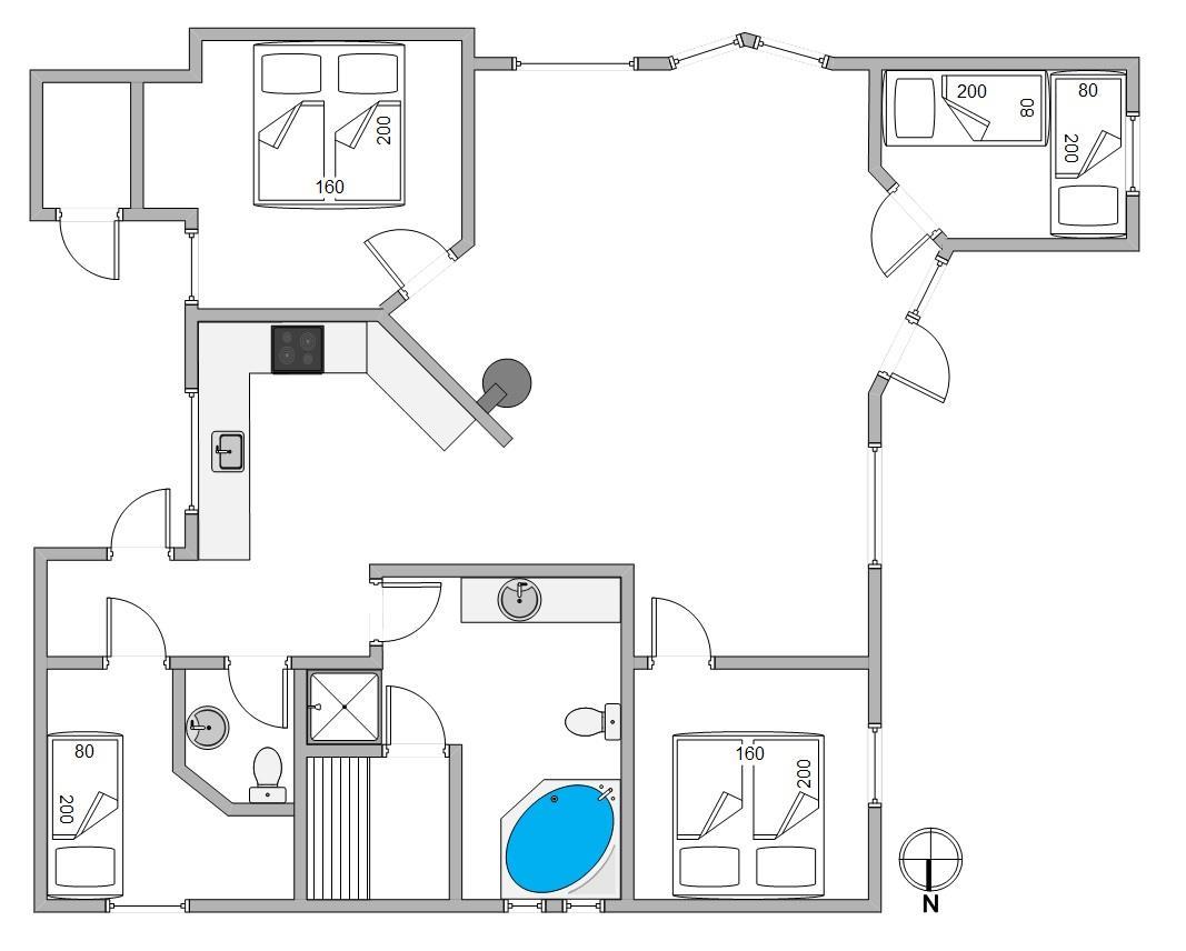 Huset opvarmes af en energibesparende varmepumpe/aircondition, så I både kan holde varmen og køle ned på de varme dage. Efter dagens udflugter eller badeture byder sommerhuset også på afslapning i både spa og sauna.