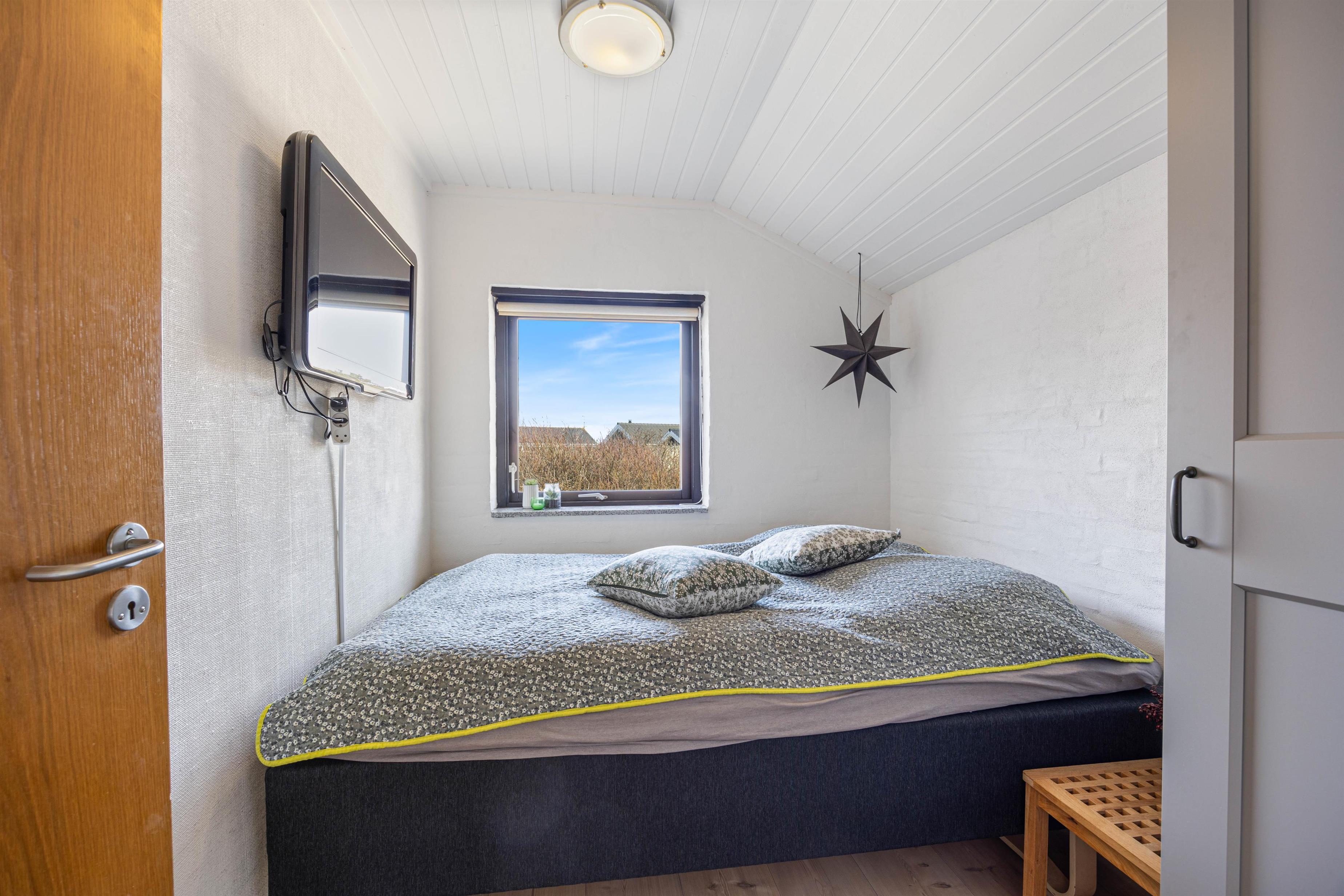 Sommerhuset har et dejligt badeværelse med gulvvarme. Her finder I også både vaskemaskine og tørretumbler, der gør det let at få toppen af vaskekurven, efter en lang dag i klitterne. Sommerhuset råder over 3 soveværelser, der med sine hvide vægge, lyse gulve og lofter venligt indbyder til en god nats søvn.