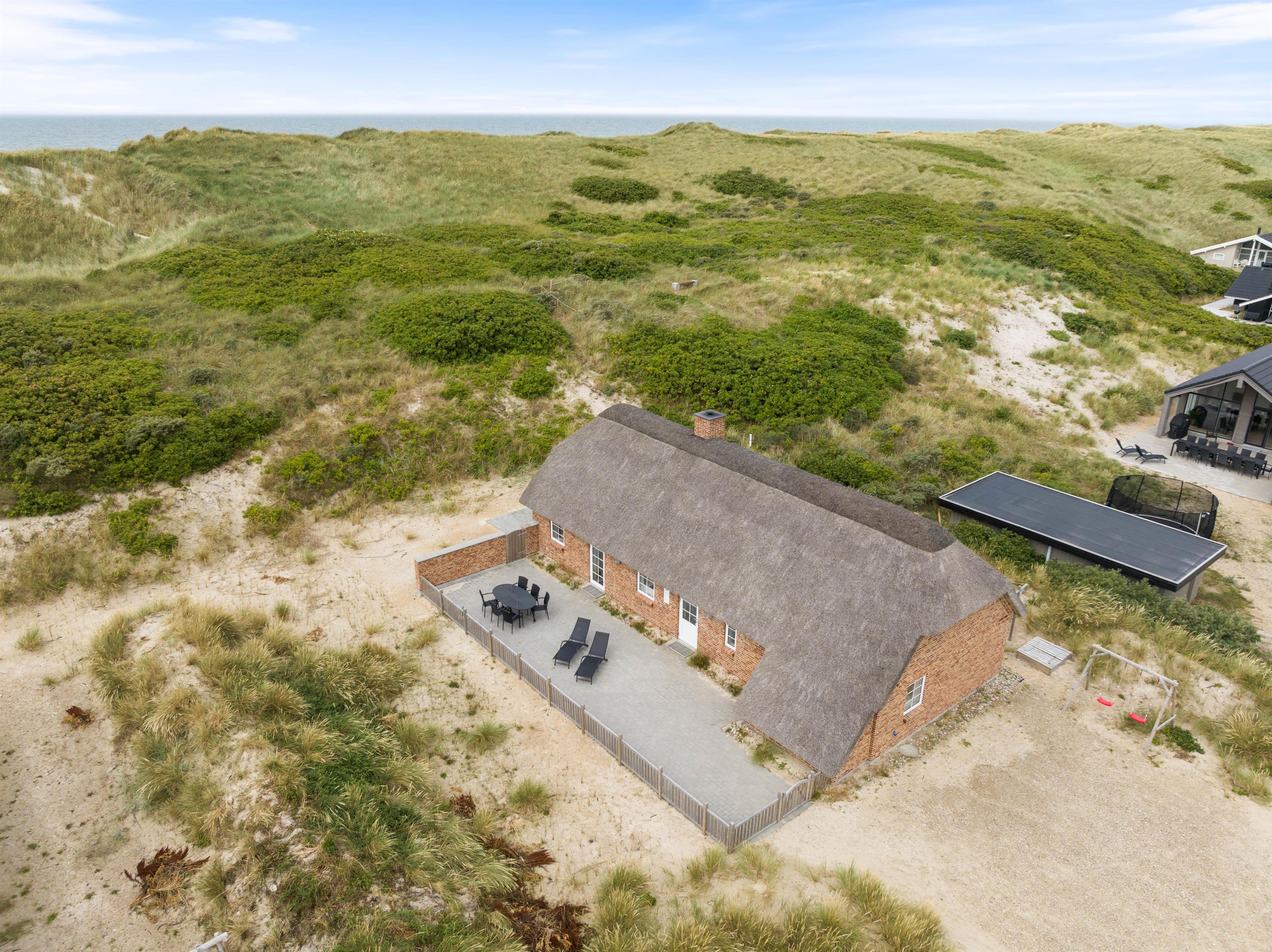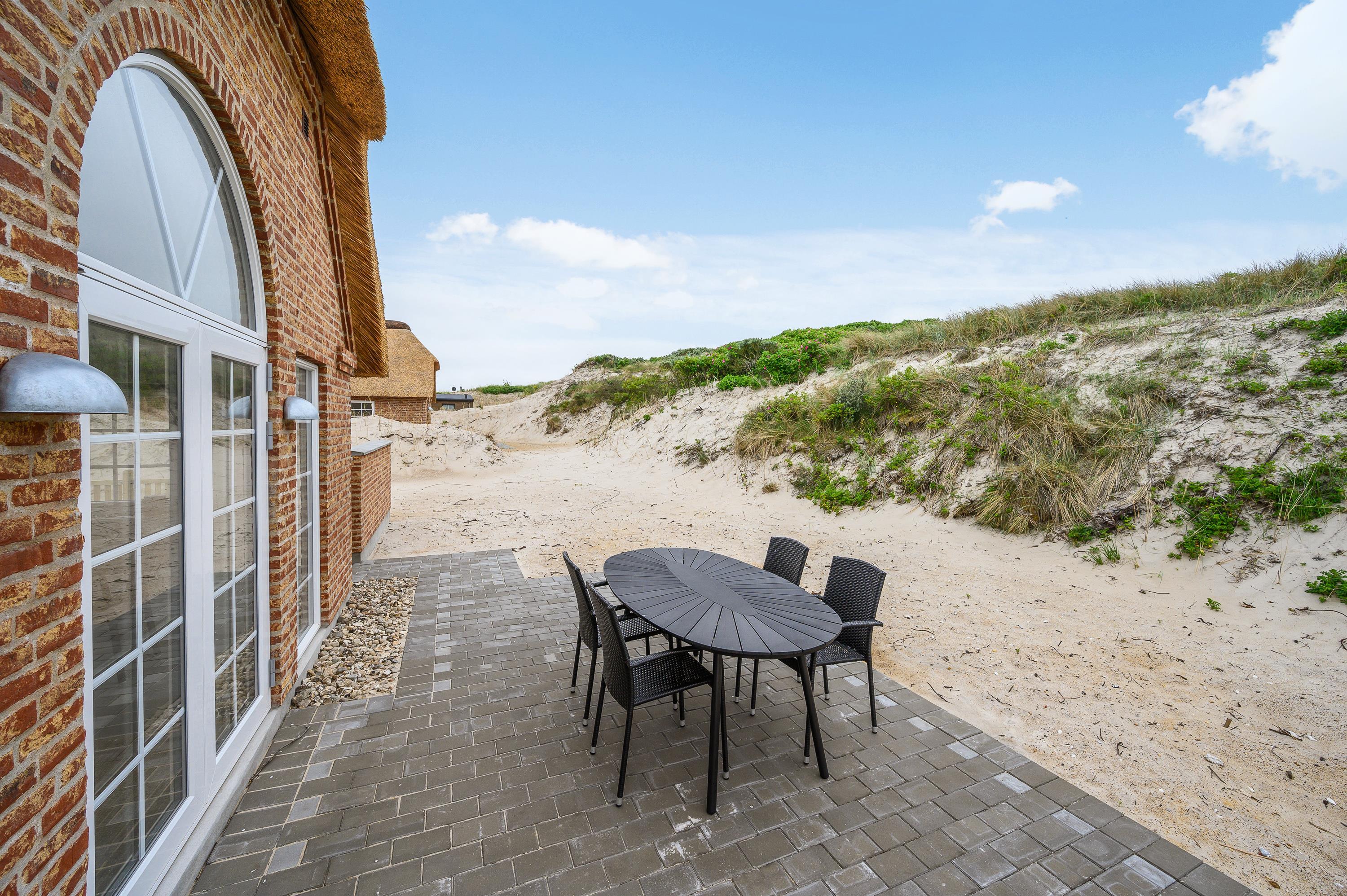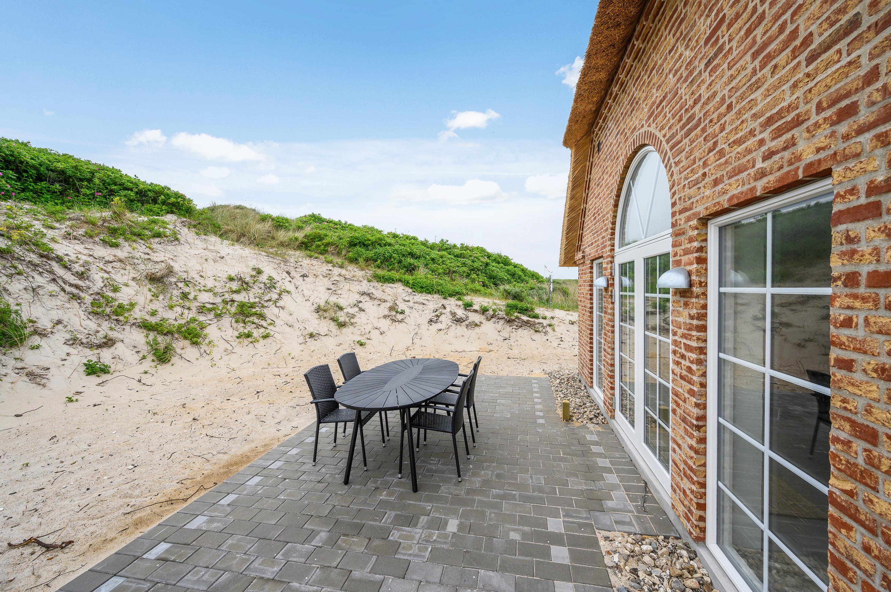Liggestole, havemøbler og en grill står til jeres rådighed på den store terrasse, så I kan lægge jer godt til rette og nyde de varme feriedage udendørs og afslutte dem på bedste vis med god mad på grillen. Alt sammen med lyden af brændingen i baggrunden fra den nærliggende strand.