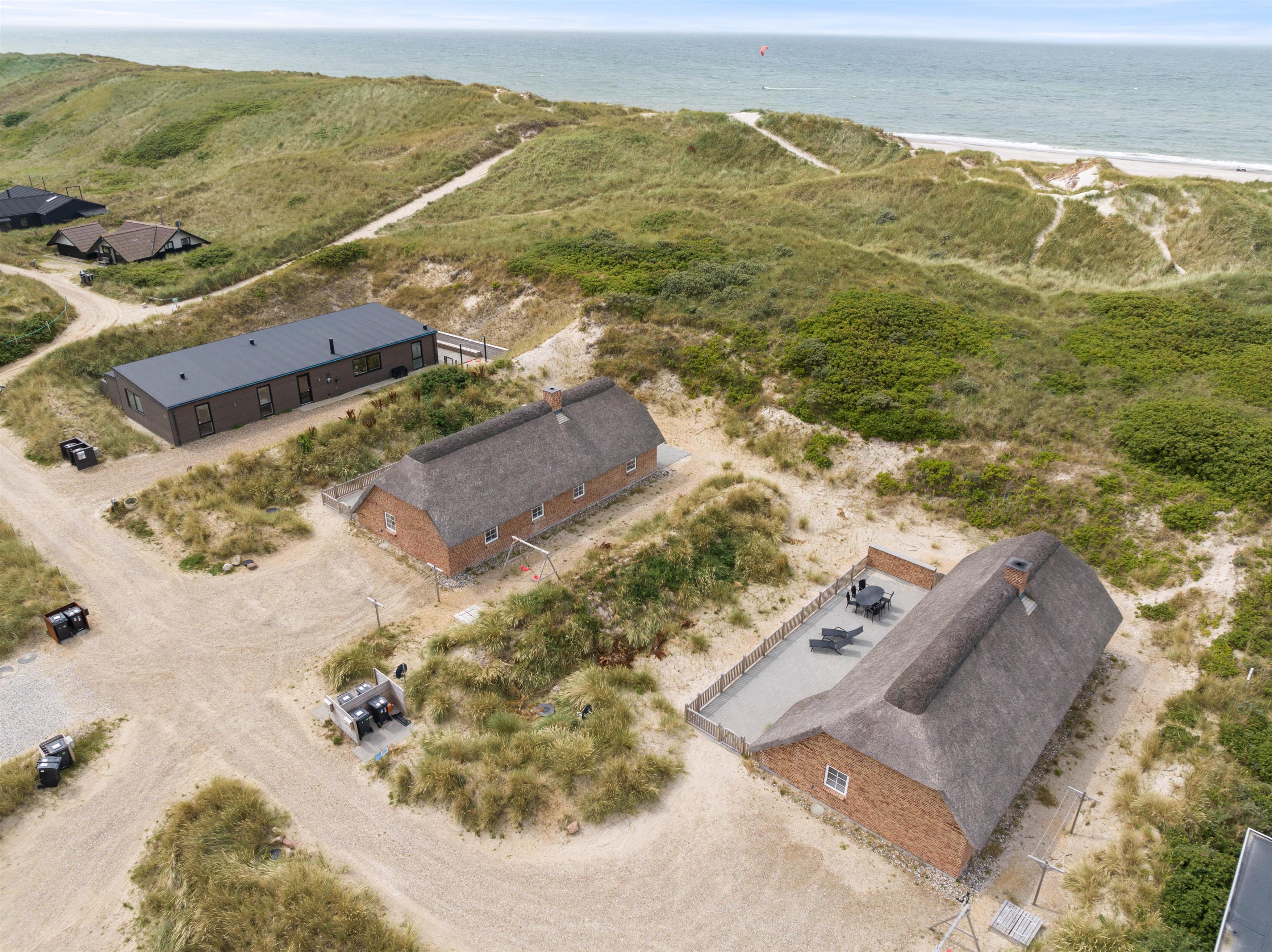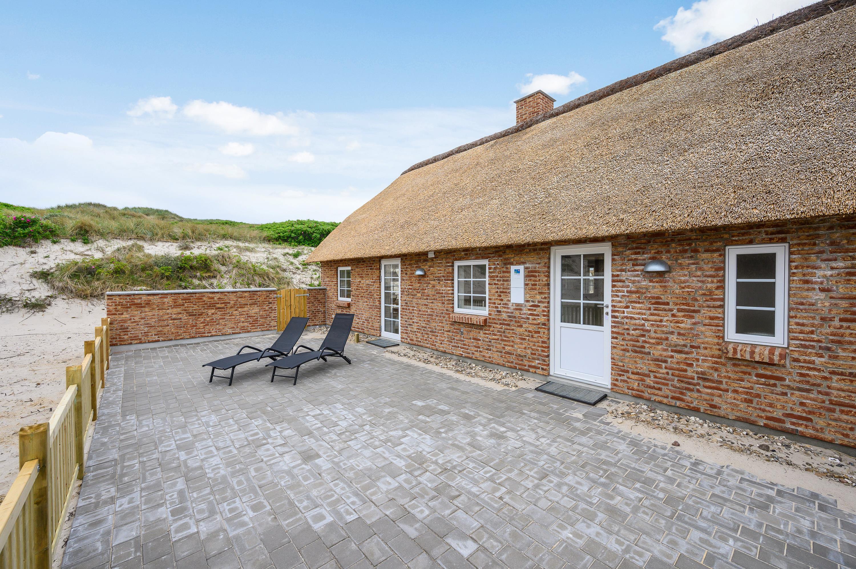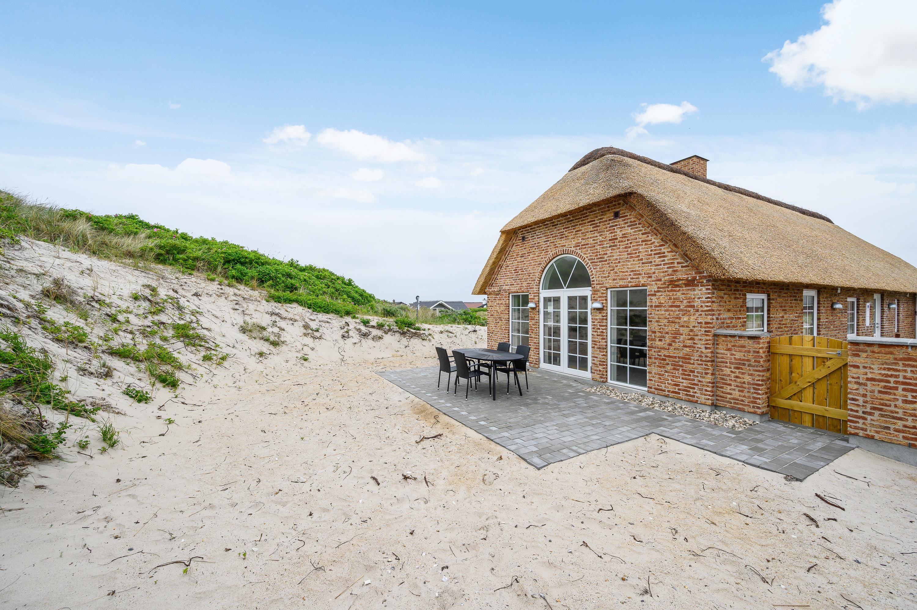 Liggestole, havemøbler og en grill står til jeres rådighed på den store terrasse, så I kan lægge jer godt til rette og nyde de varme feriedage udendørs og afslutte dem på bedste vis med god mad på grillen. Alt sammen med lyden af brændingen i baggrunden fra den nærliggende strand.