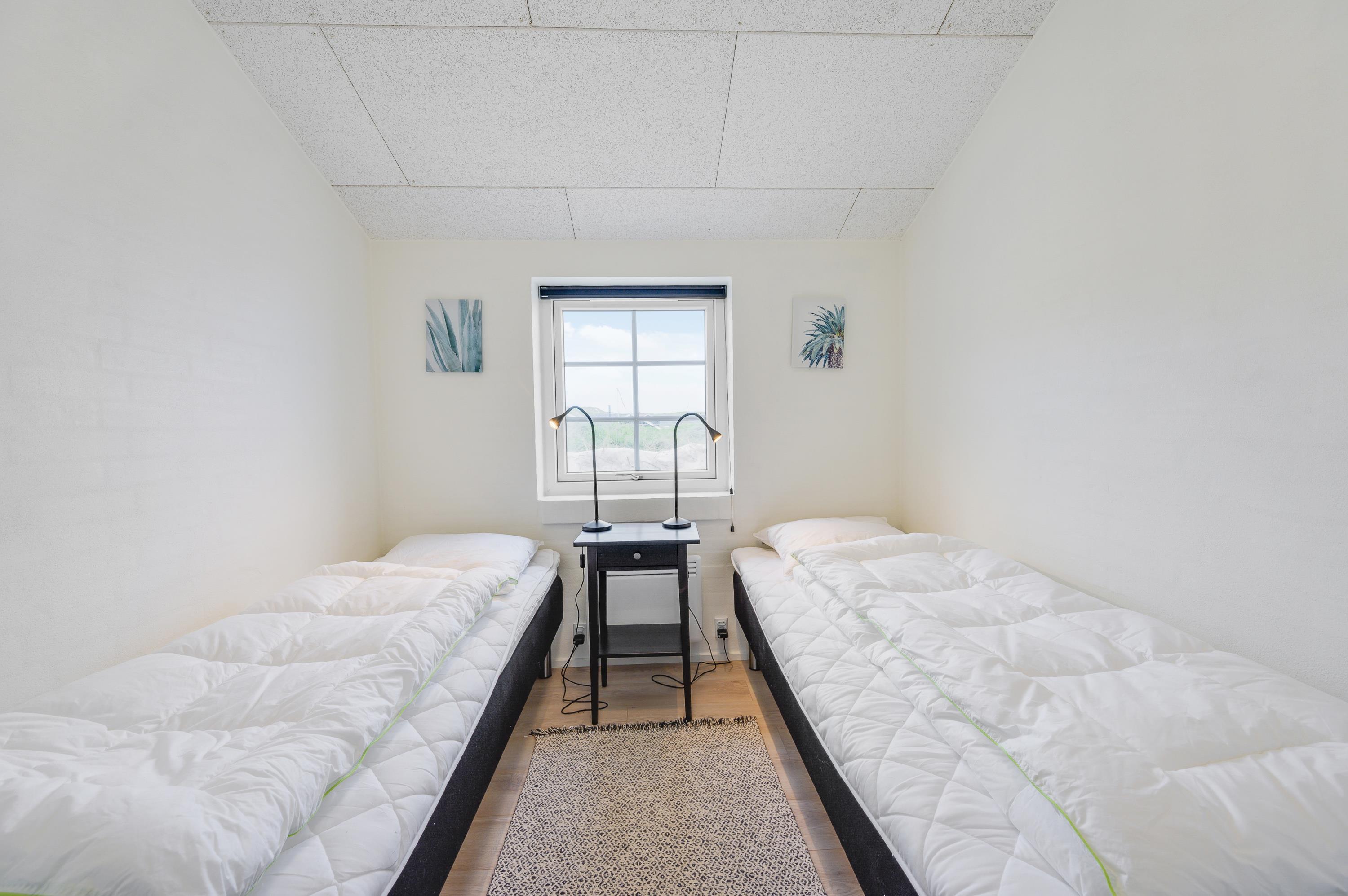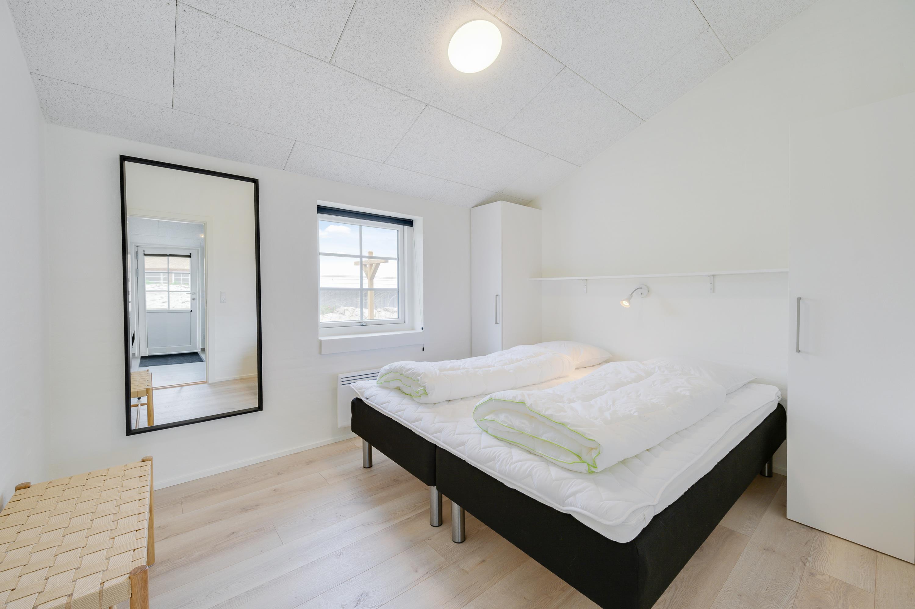 I det lyse sommerhus på Bjerregårdsvej 474 er der lagt op til en dejlig ferie for hele familien. Op til 6 personer kan fordele sig på de 3 soveværelser, hvoraf 2 er indrettet med dobbeltsenge og det tredje har 2 enkeltsenge. Med 2 badeværelser med gulvvarme er der ingen risiko for hverken kø til toilettet eller kolde fødder.