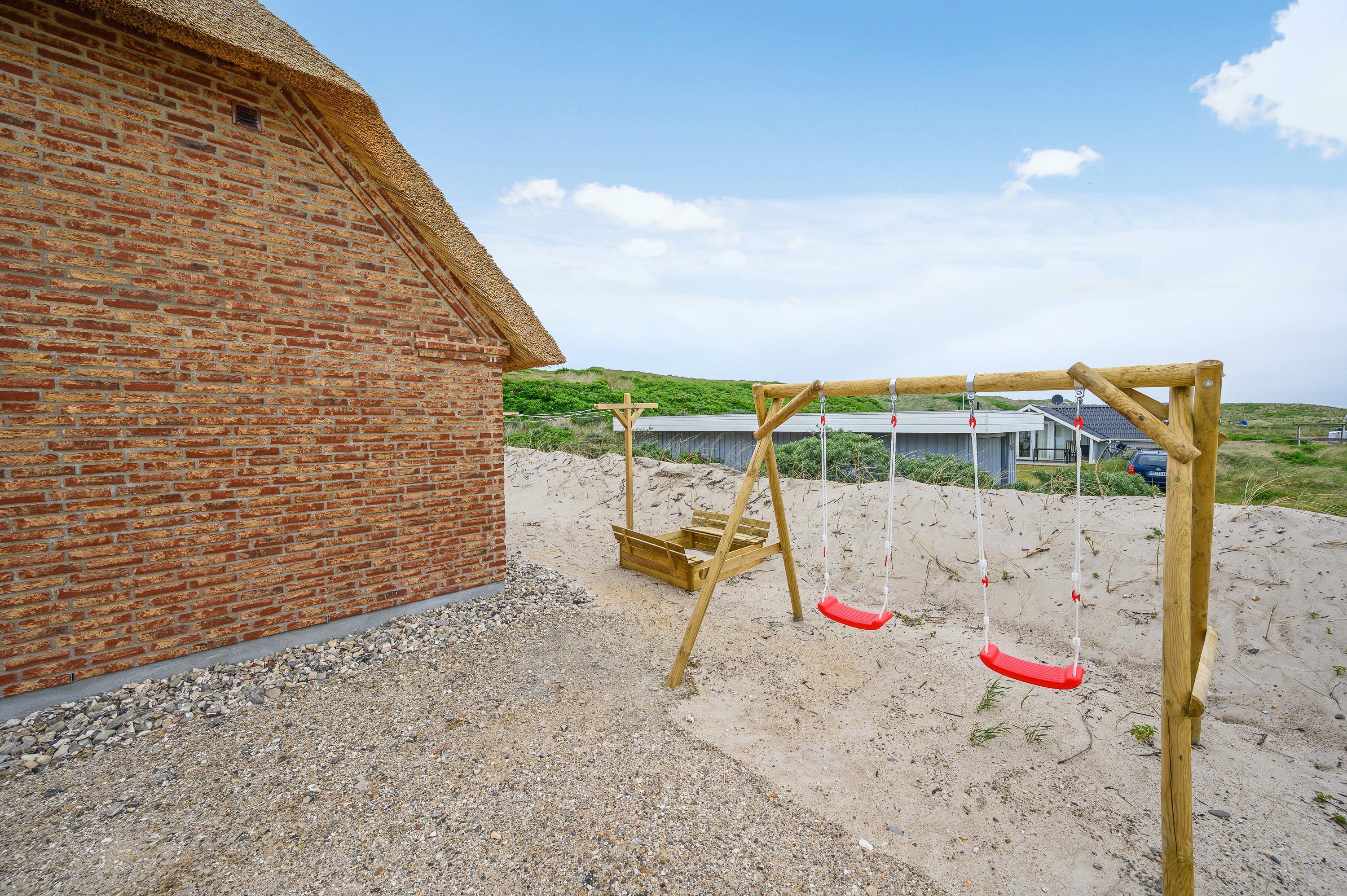 Til børnene er der et gyngestativ og en sandkasse, som de sikkert vil få stor glæde af under ferien. På terrassen kan børnene lege løs og hunden kan snuse nysgerrigt rundt dagen lang.