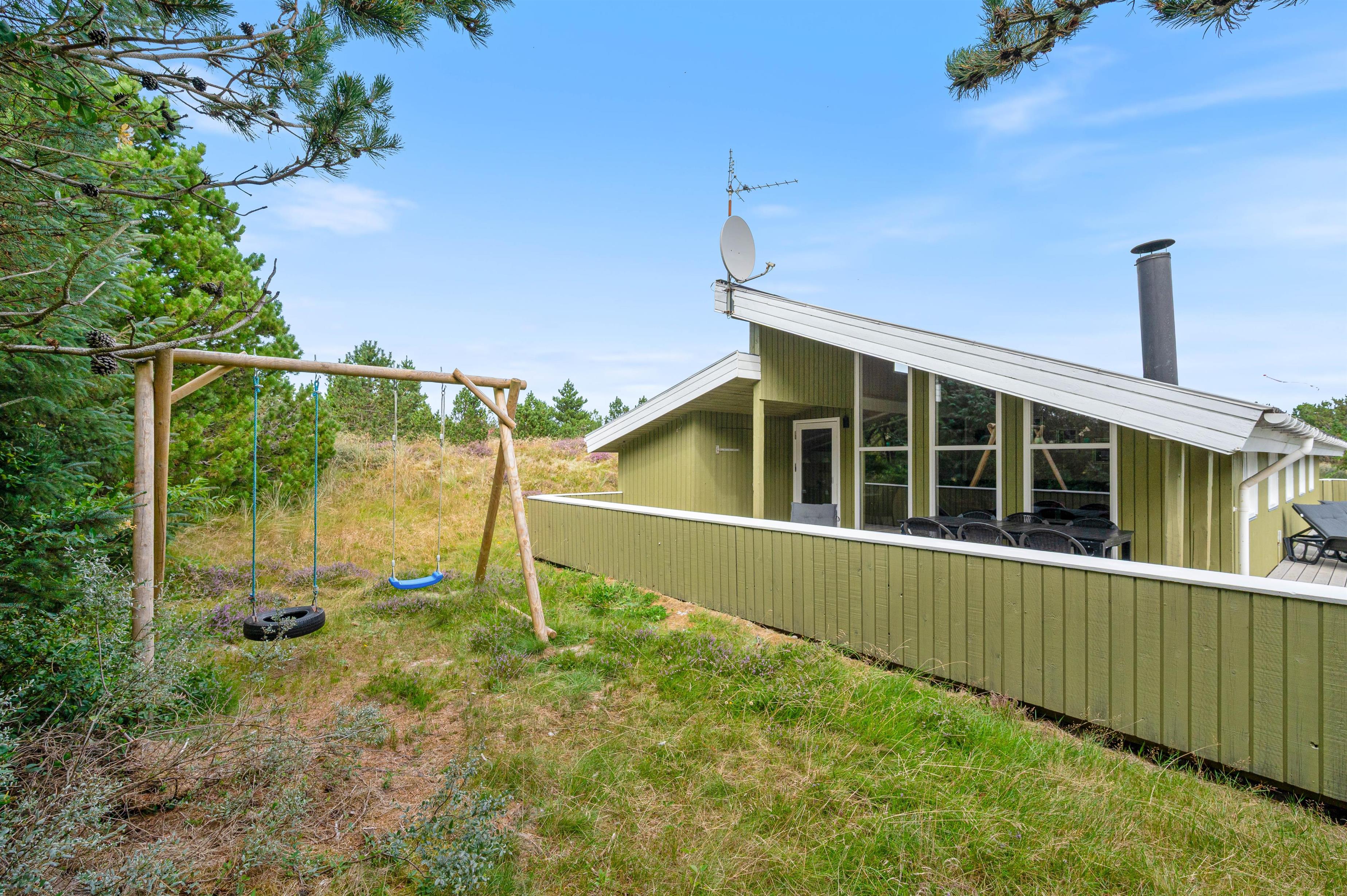 Feriehuset ligger på en dejlig naturgrund i Bjerregård. Grunden er delvist afskærmet af buske og træer, så her har I et dejligt grønt område, som I uforstyrret kan nyde. Også børnene vil hygge sig her, da de finder både gynge og sandkasse