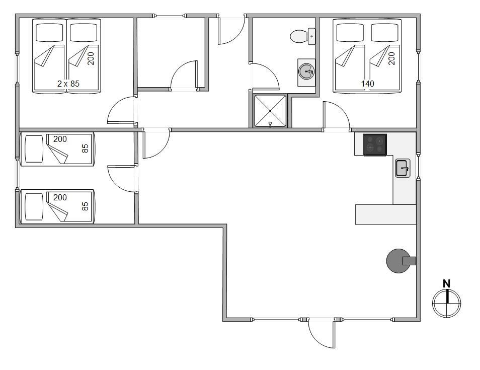 Feriehusets hjerte er det åbne køkken- og stueområde, som er ideelt til både fælles madlavning og samvær med de nærmeste. Her finder I en energibesparende varmepumpe, så I kan holde en behagelig temperatur.