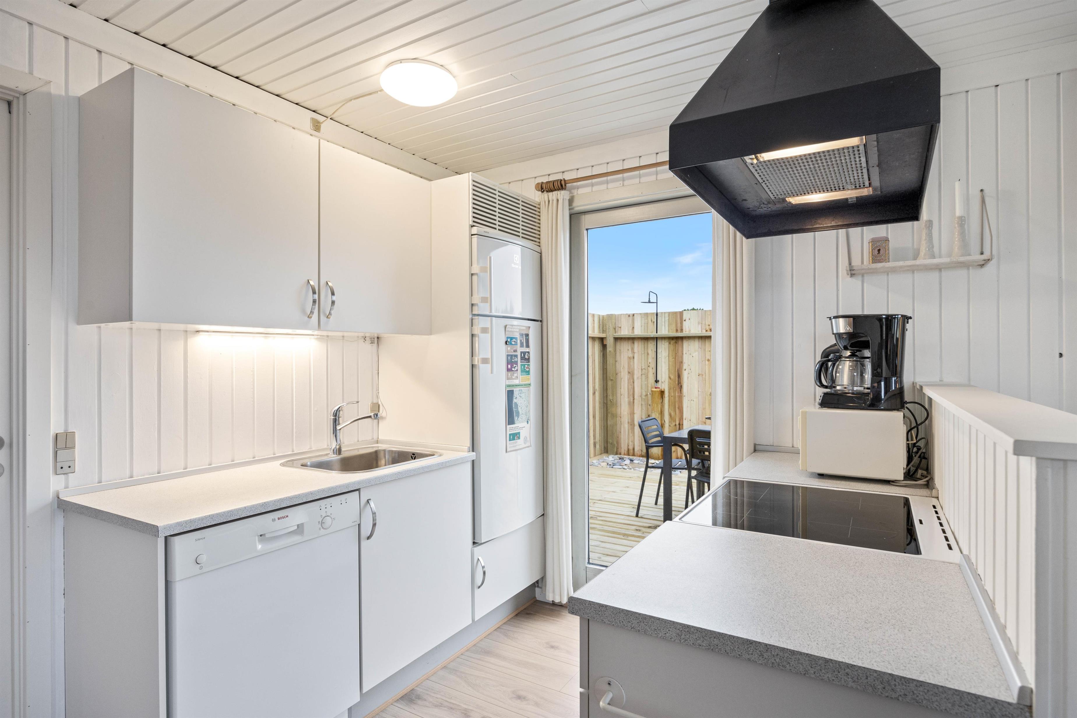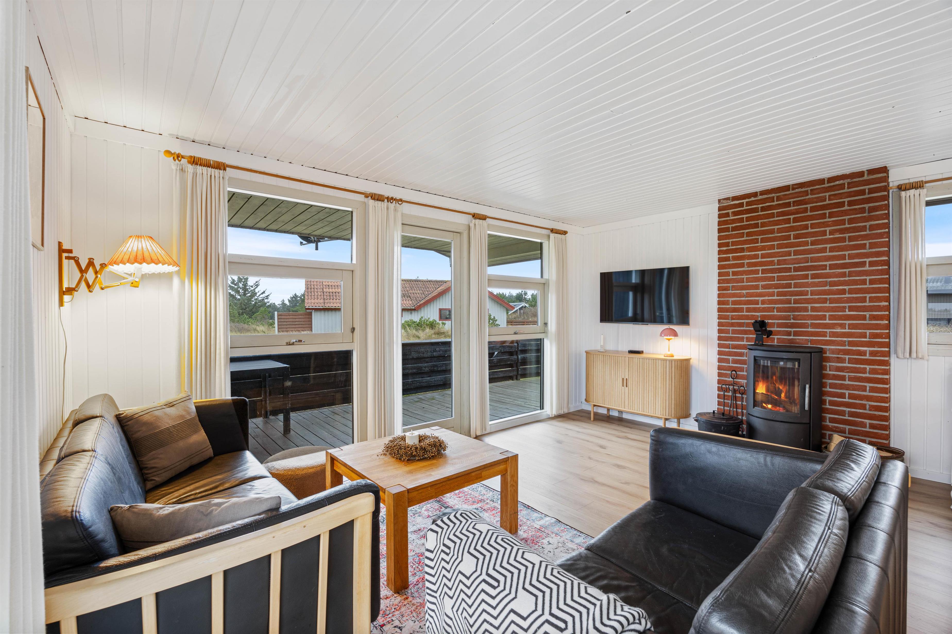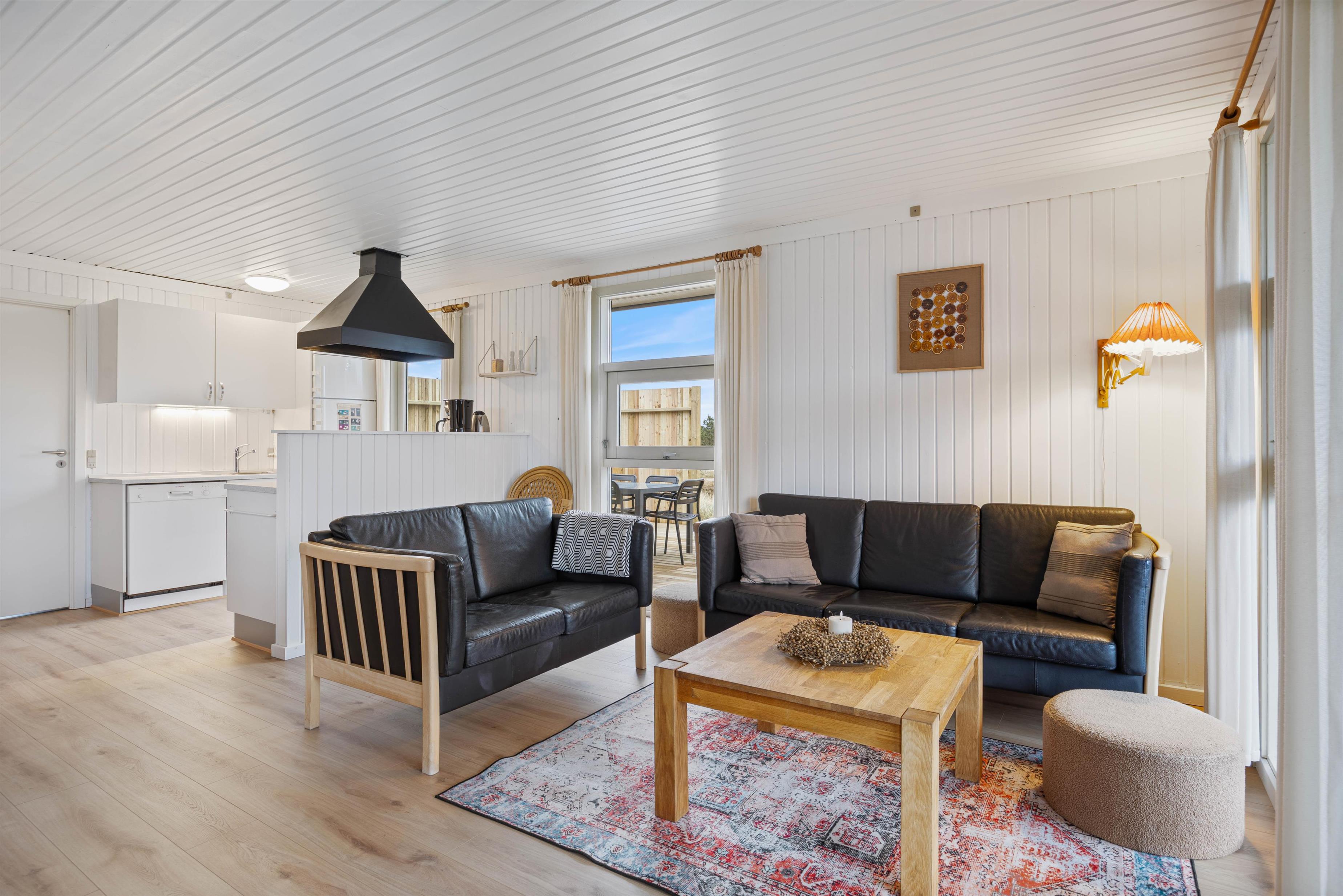 Velkommen indenfor på Bjerregårdsvej 72 – når I træder indenfor, bliver I mødt af den hyggelige stue – sommerhusets centrale mødested. Her forenes stue, køkken og spiseområde i ét, og her er plads til jer alle. Her kan I dyste i brætspil omkring spisebordet, holde hyggelige filmaftner eller tilberede jeres yndlingsretter i det åbne køkken. På de køligere dage kan I tænde op i brændeovnen, der spreder hygge. Her er desuden en energibesparende varmepumpe.