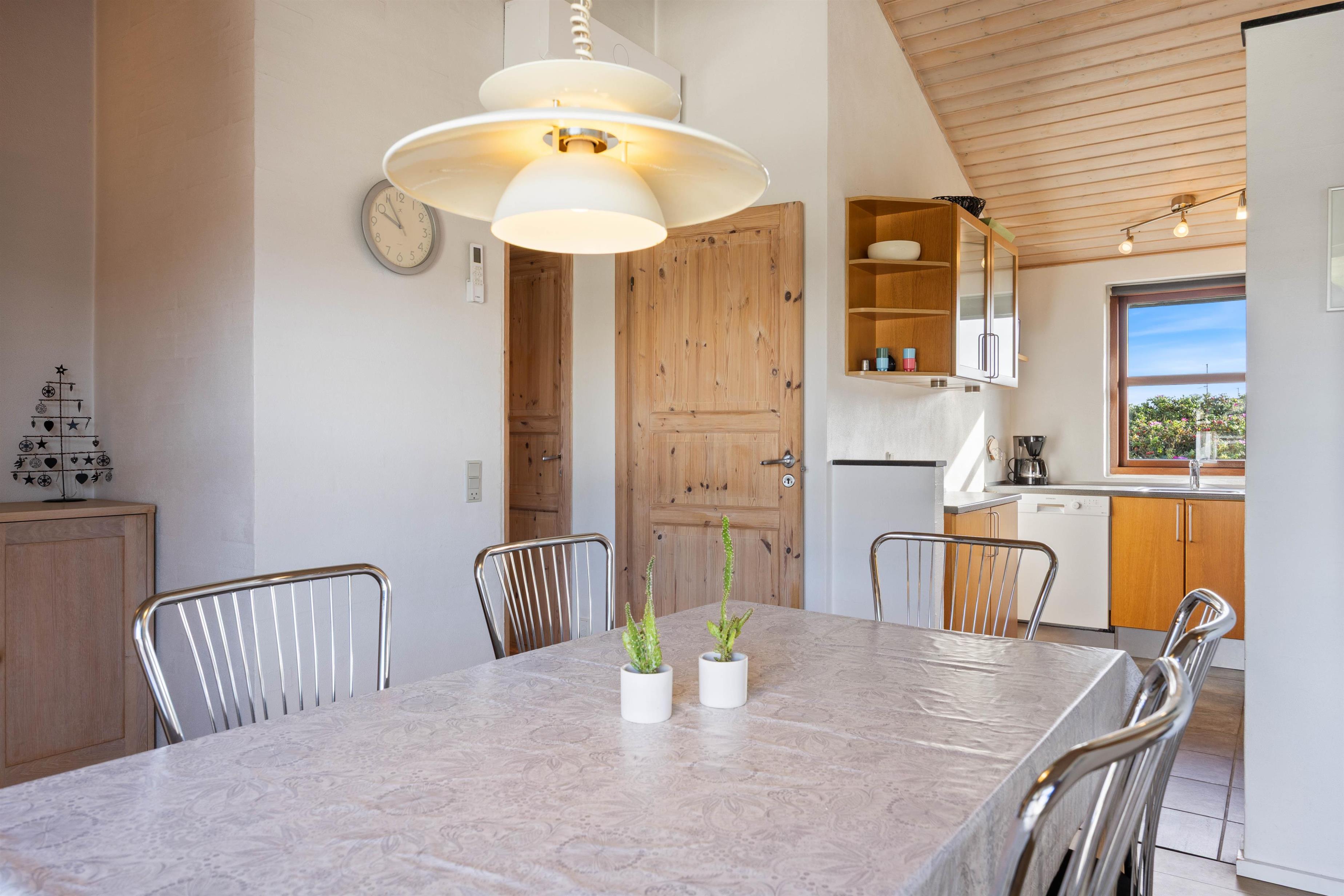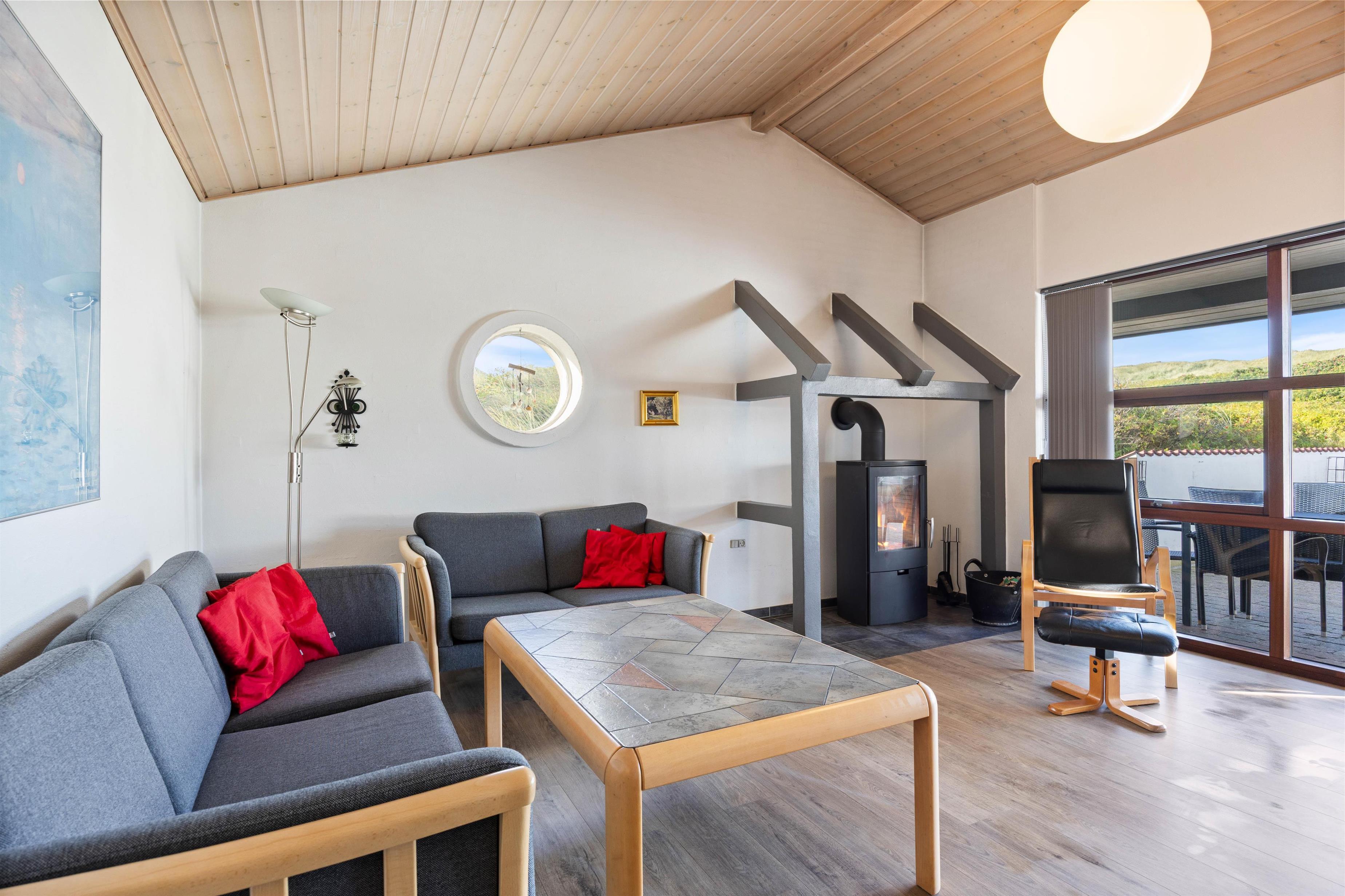 I den hyggeligt møblerede stue finder I masser af plads til at slappe af ved den varme brændeovn. Stuen er i åben forbindelse med både køkken og spiseplads, så hele familien kan være samlet, så meget som muligt – også når der skal laves mad. Der er opvaskemaskine i køkkenet.