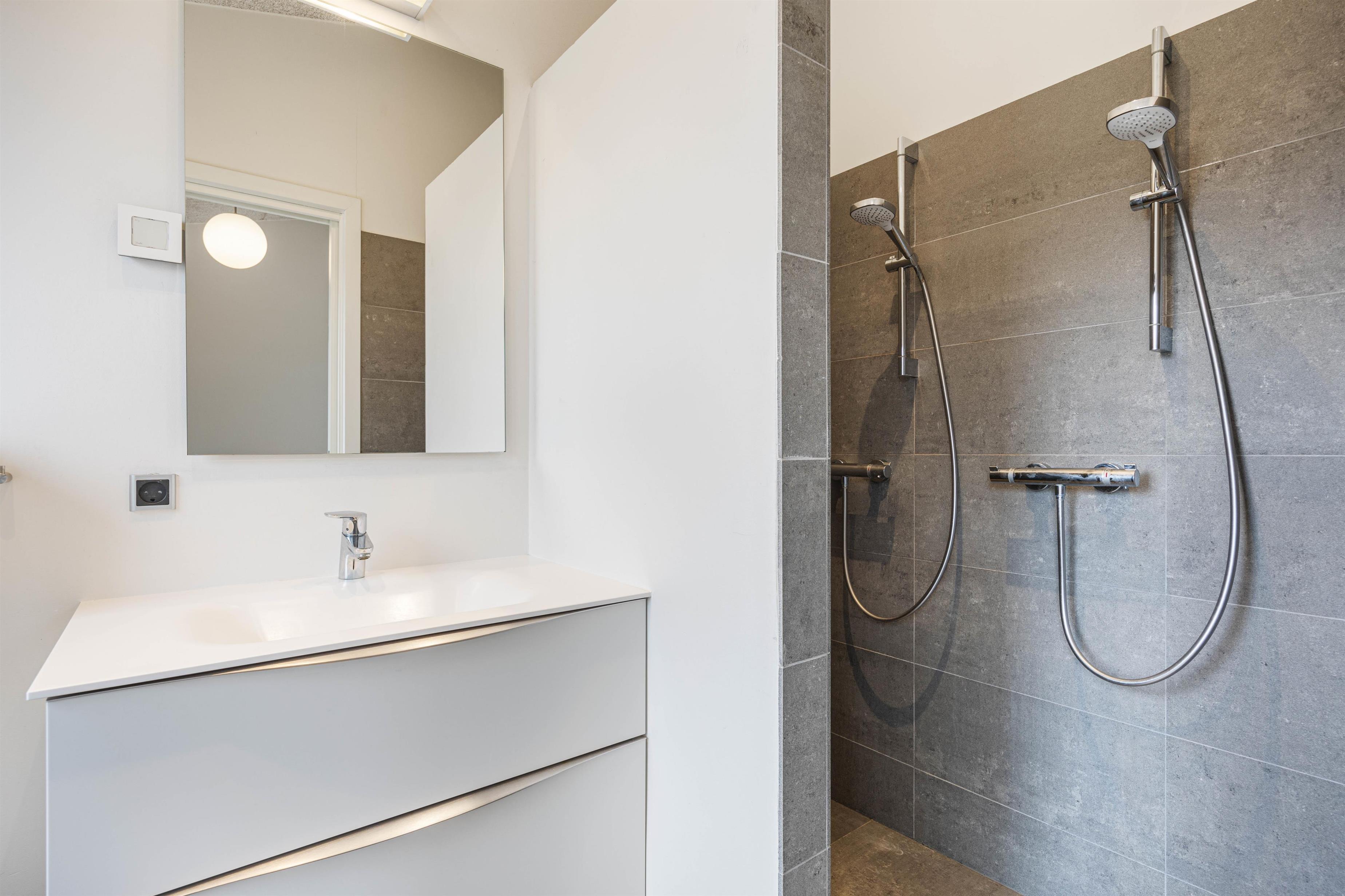 Fra alrummet er der udgang til en stor lukket træterrasse. Terrassen er perfekt til afslapning og nydelse med både udespa og udebruser, som giver en luksuriøs følelse af velvære. I udespaens dejlige varme kan I nyde den flotte stjernehimmel – og i løbet af dagen kan man træne i det andet bassin med integreret modstrømsanlæg – næsten som i en rigtig swimmingpool. Svømmebassinet er også opvarmet. Udebruseren kan bruges fra april til november.