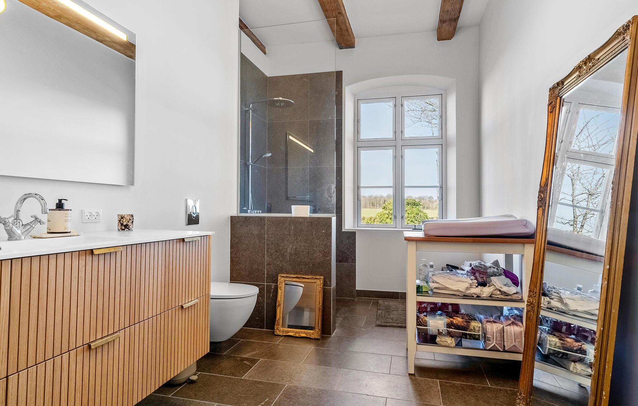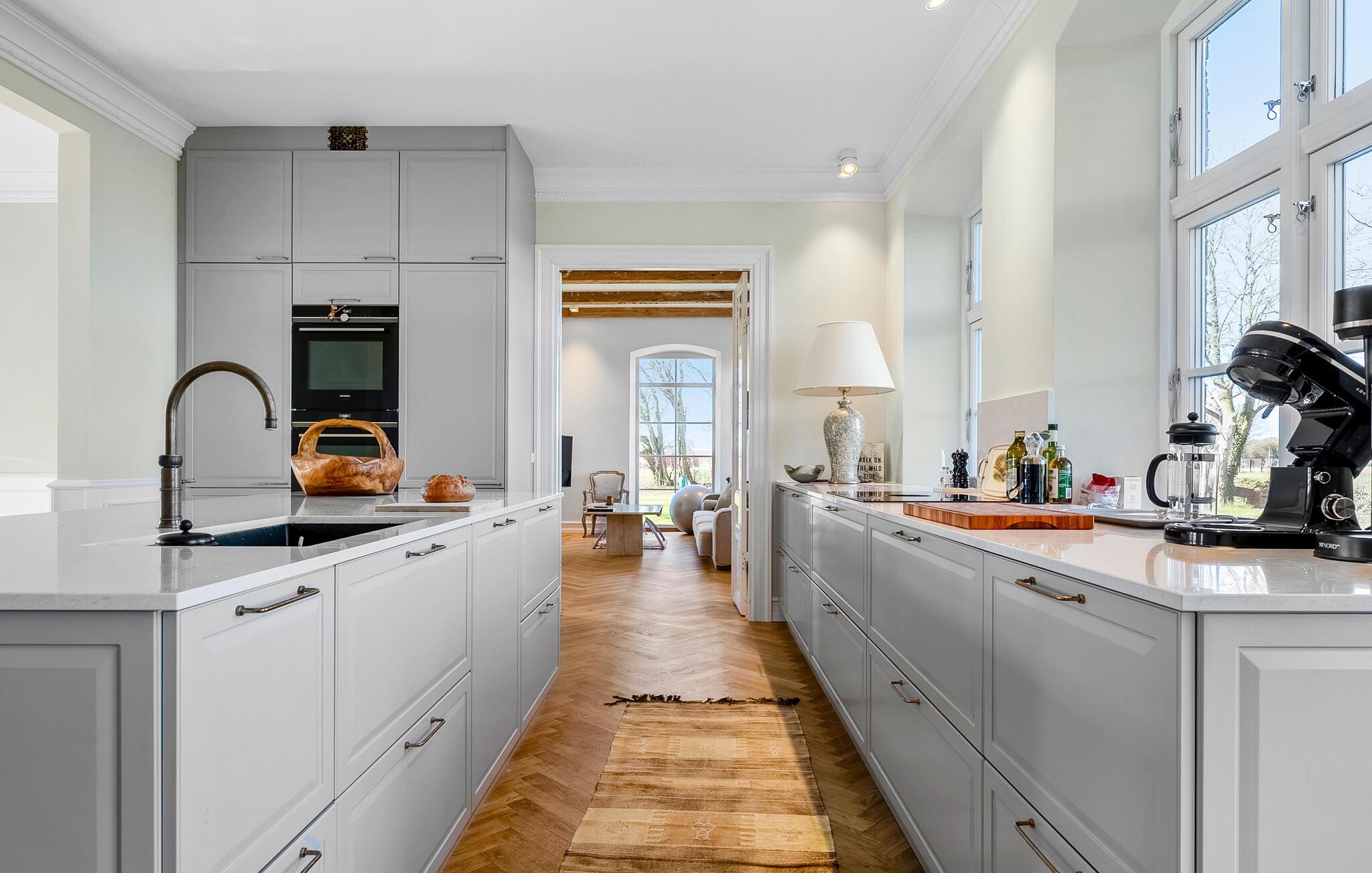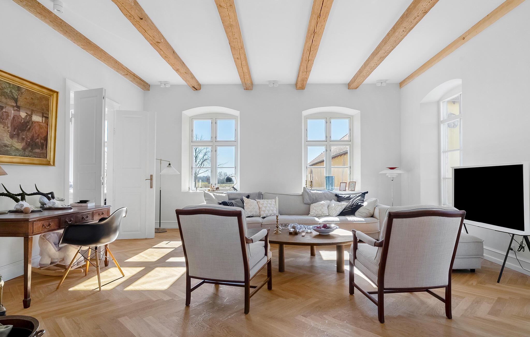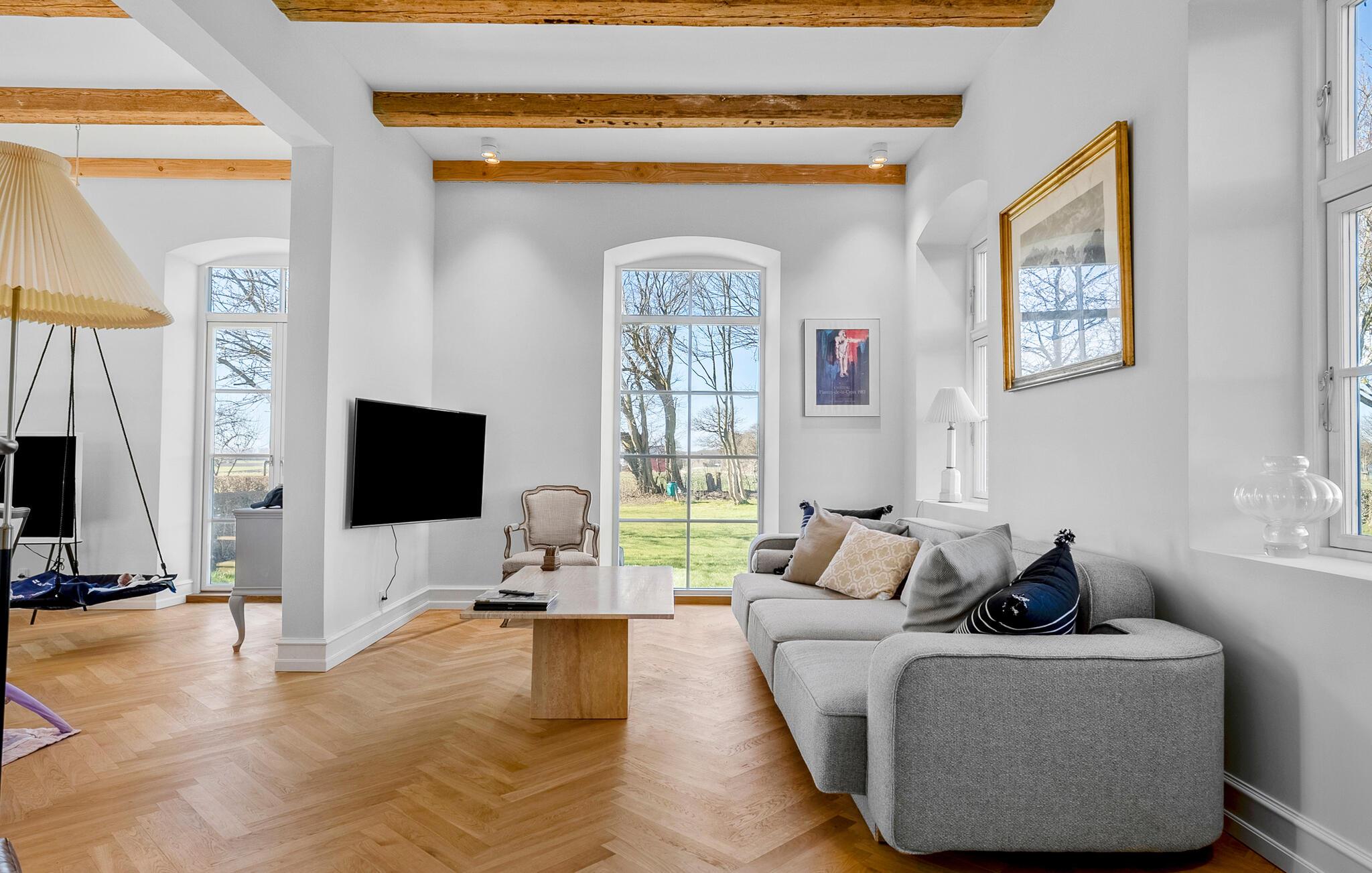 Der er lagt op til et hyggeligt afbræk fra hverdagen, hvor I kan få jeres base i denne charmerende og nænsomt restaurerede feriebolig. Her venter der fred, ro og idyl. Udsigten over markerne fortsætter helt ned til Lillebælt og skaber en vidunderlig kulisse for nogle afslappende dage. Huset byder på en unik blanding af historisk charme og moderne komfort. De høje lofter med synlige bjælker, elegante sildebensgulve og store vinduespartier bliver rammen om hyggestunder. Find jer godt til rette i de stilfulde sofaer og nyd udsigten til de skønne omgivelser. I det åbne køkken gøres ferieretterne hurtigt klar til en middag omkring spisebordet, hvor I kan snakke om dagens oplevelser.