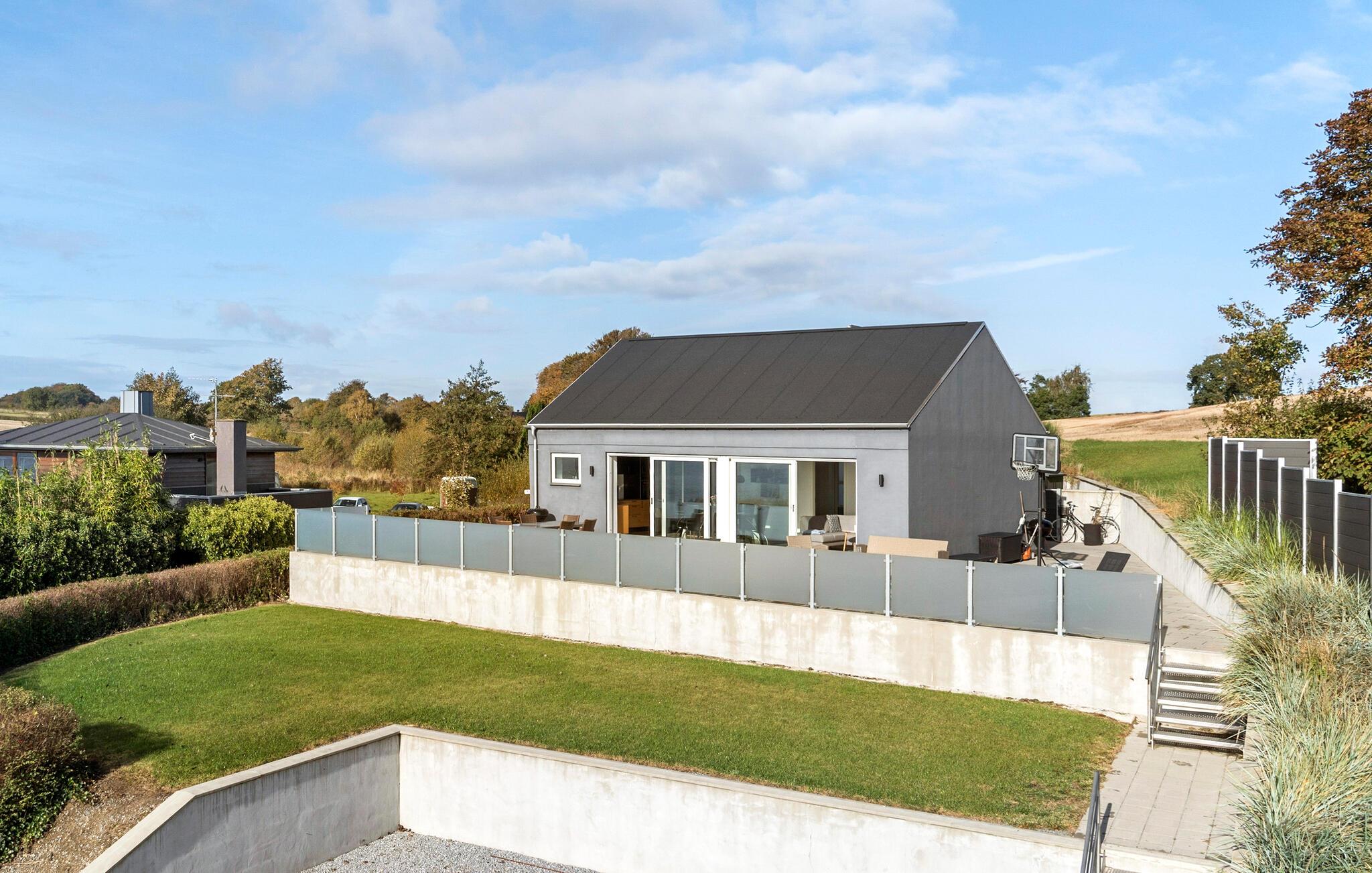 Elegant feriehus nær Bjert Strand med panoramaudsigt og moderne faciliteter.