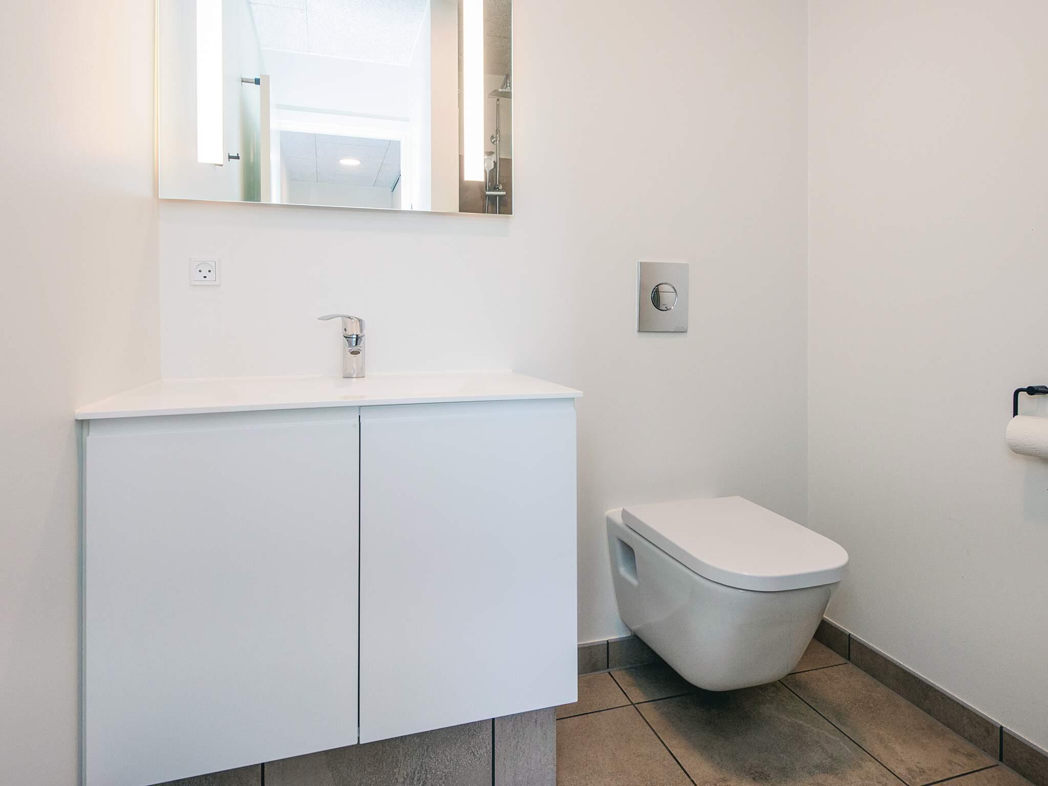Der er tre badeværelser med toilet og brusebad. Det er i et af disse baderum I finder den infrarøde sauna, hvor I kan få varmen tilbage i kroppen efter en gåtur langs stranden. Husets indretning gør det ikke egnet for gangbesværede eller kørestolsbrugere. Udlejes ikke til ungdomsgrupper.