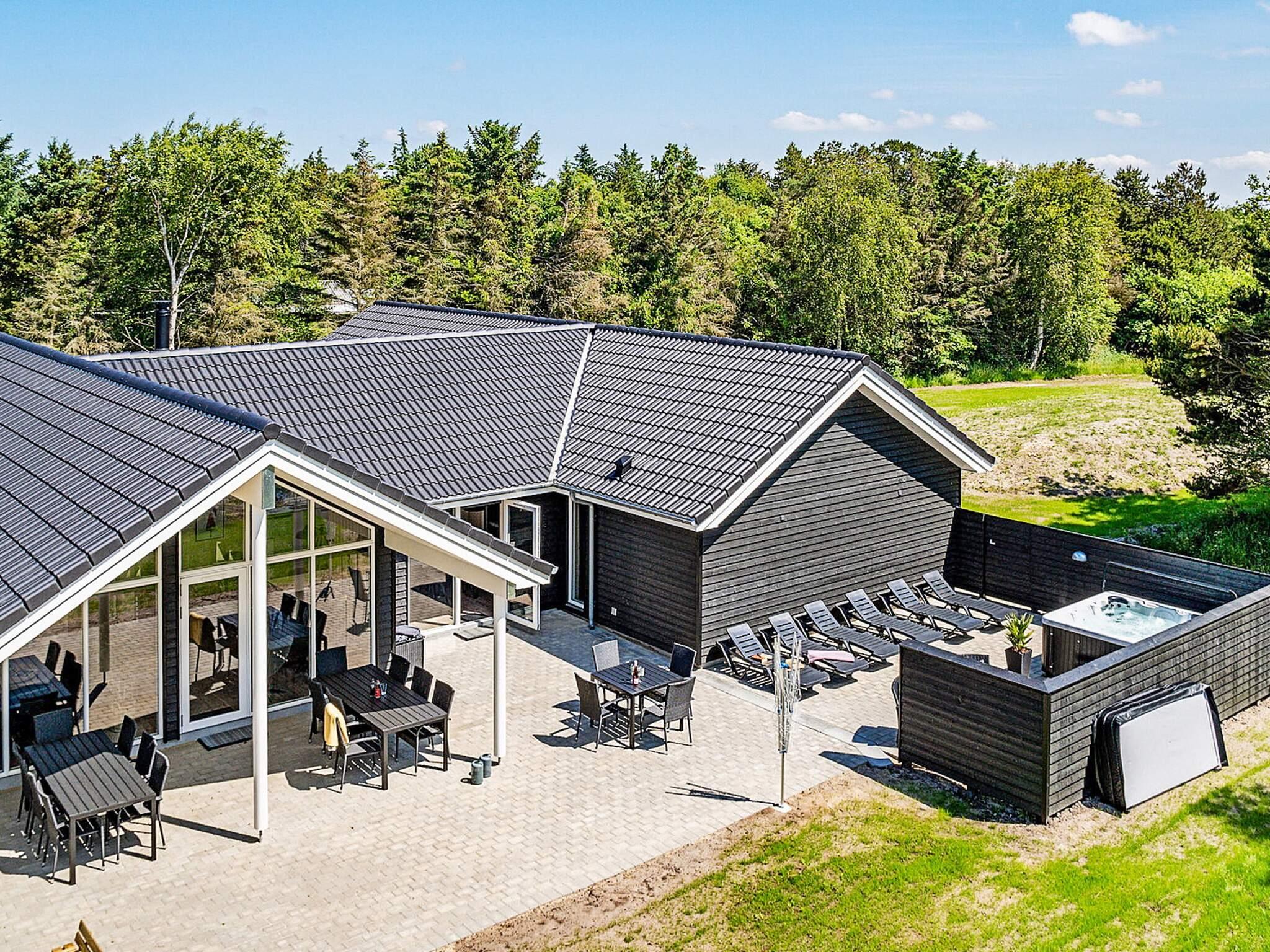 Der er en stor terrasse (delvist overdækket), hvor du kan nyde den danske sommer nydt i komfortable havemøbler. Her finder du det udendørs spabad, som kan nydes hele året rundt.