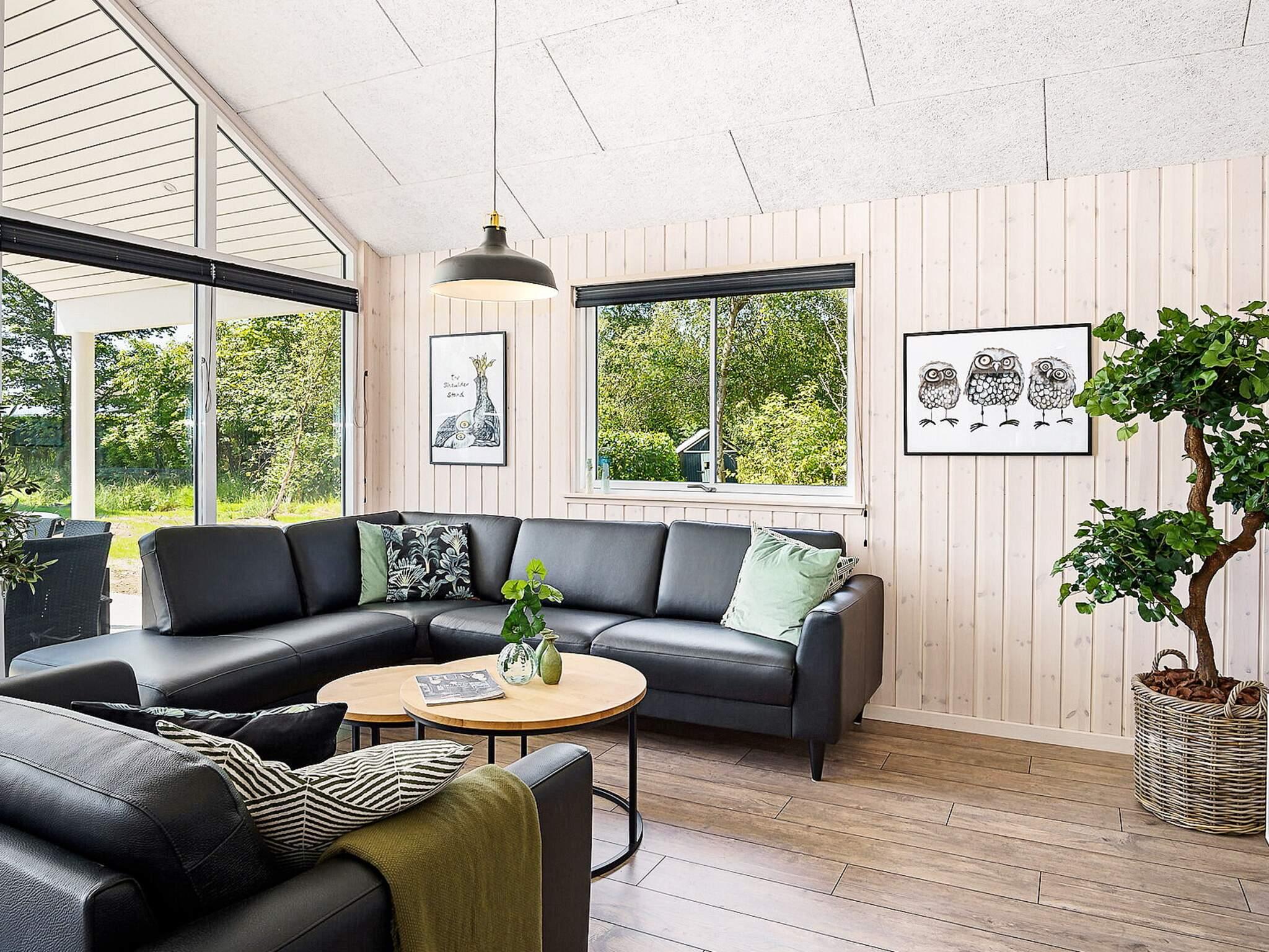 Stuen er smagfuldt indrettet med komfortable møbler og brændeovn samt stort fladskærms-tv. Til underholdning og venskabelig konkurrence er der en PlayStation 4 med forskellige spil.