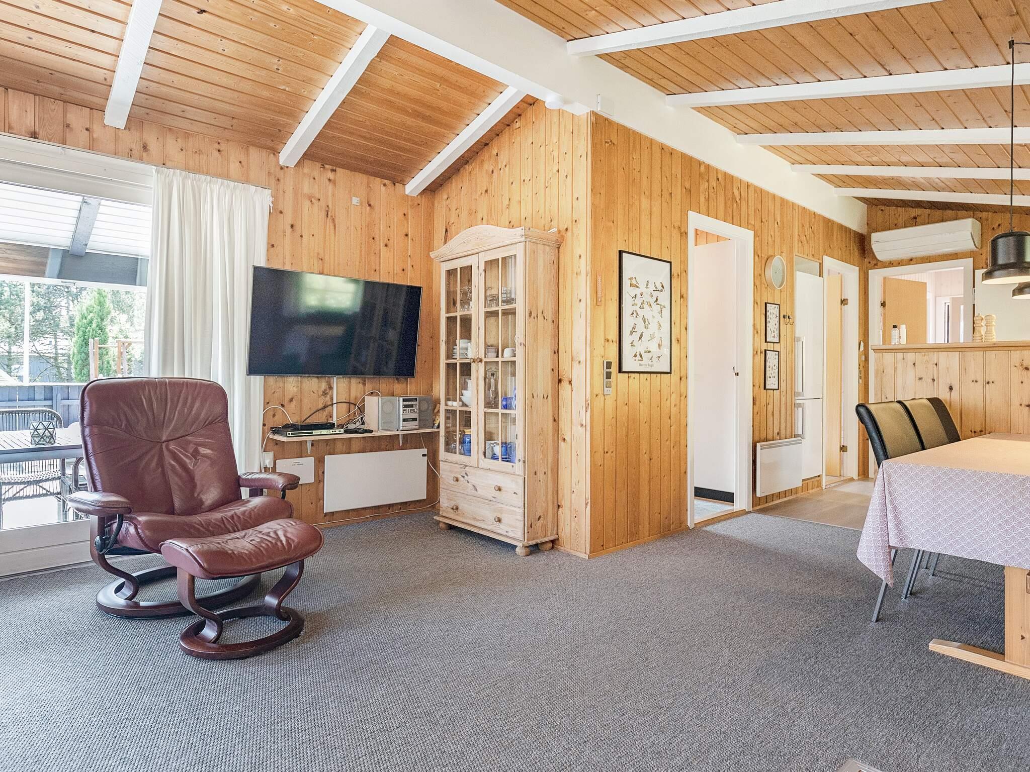 1 Opholdsstue: 33 m2, brændeovn, stereoanlæg, tv, parabol, barneseng og høj stol
