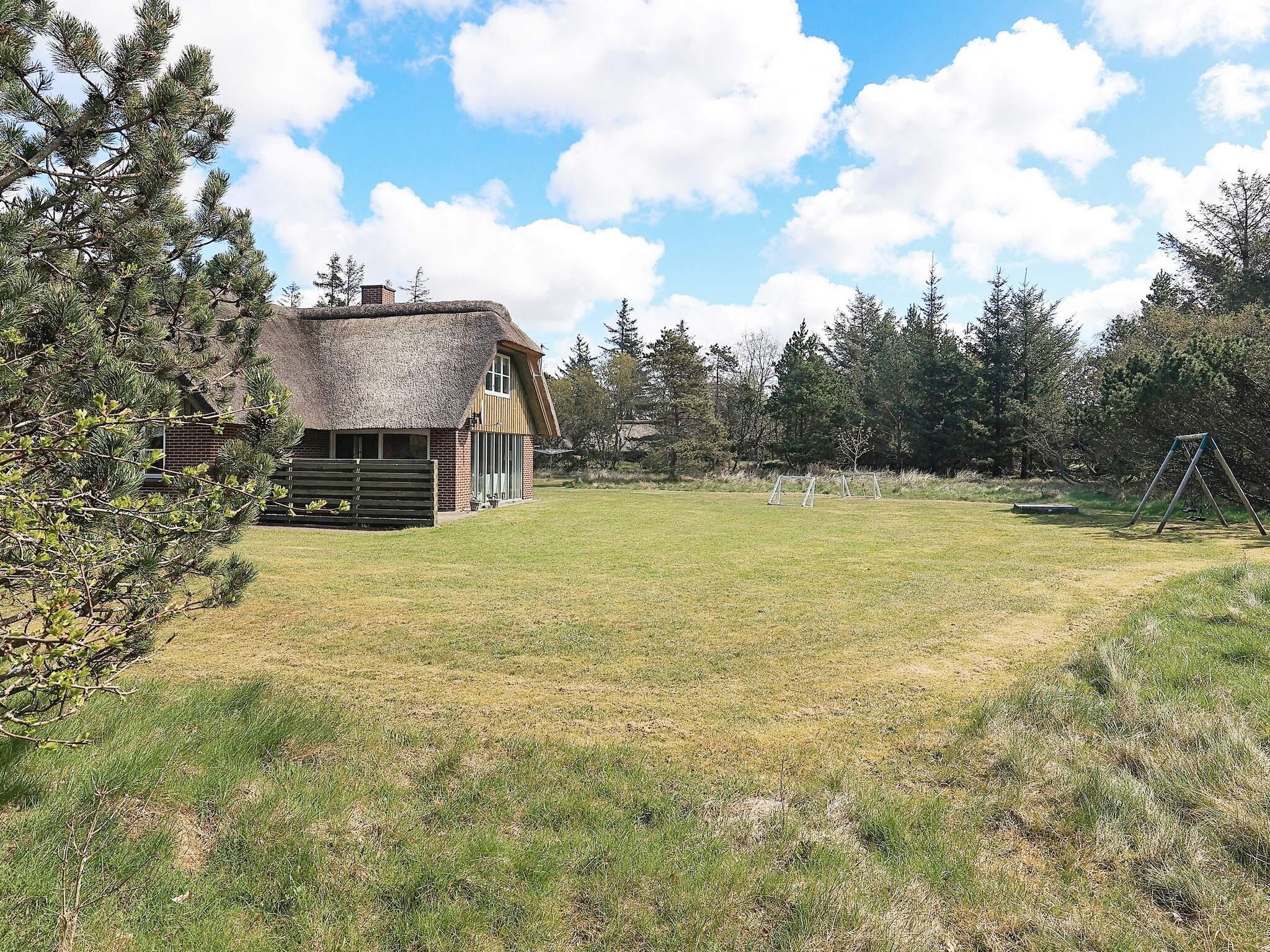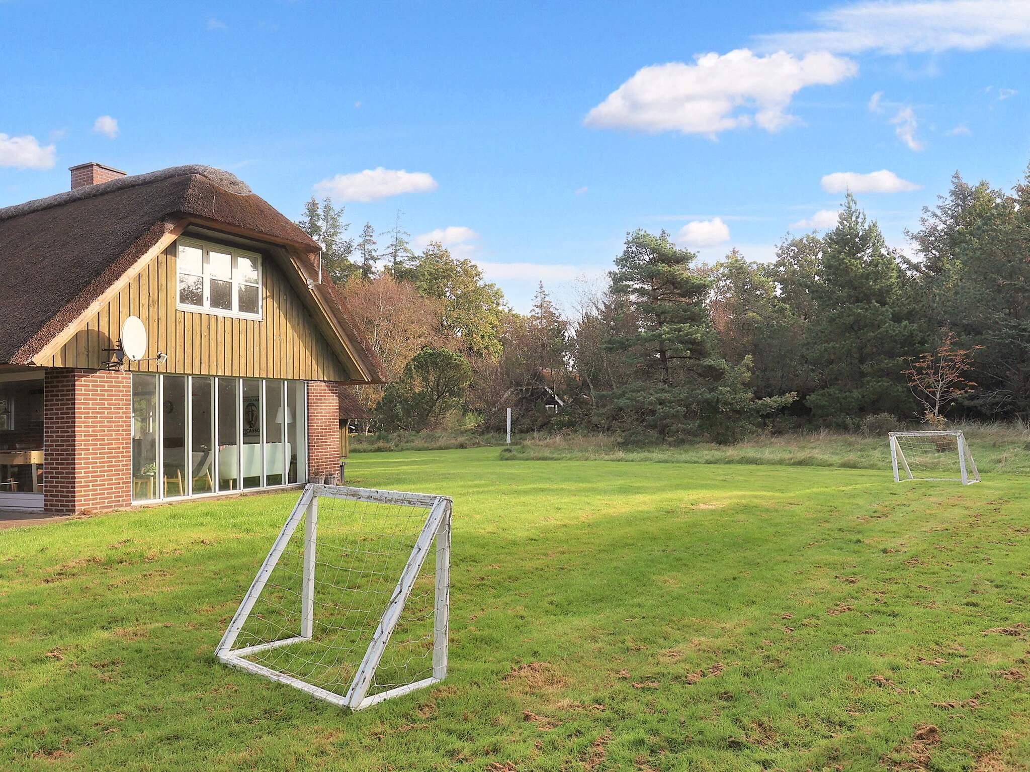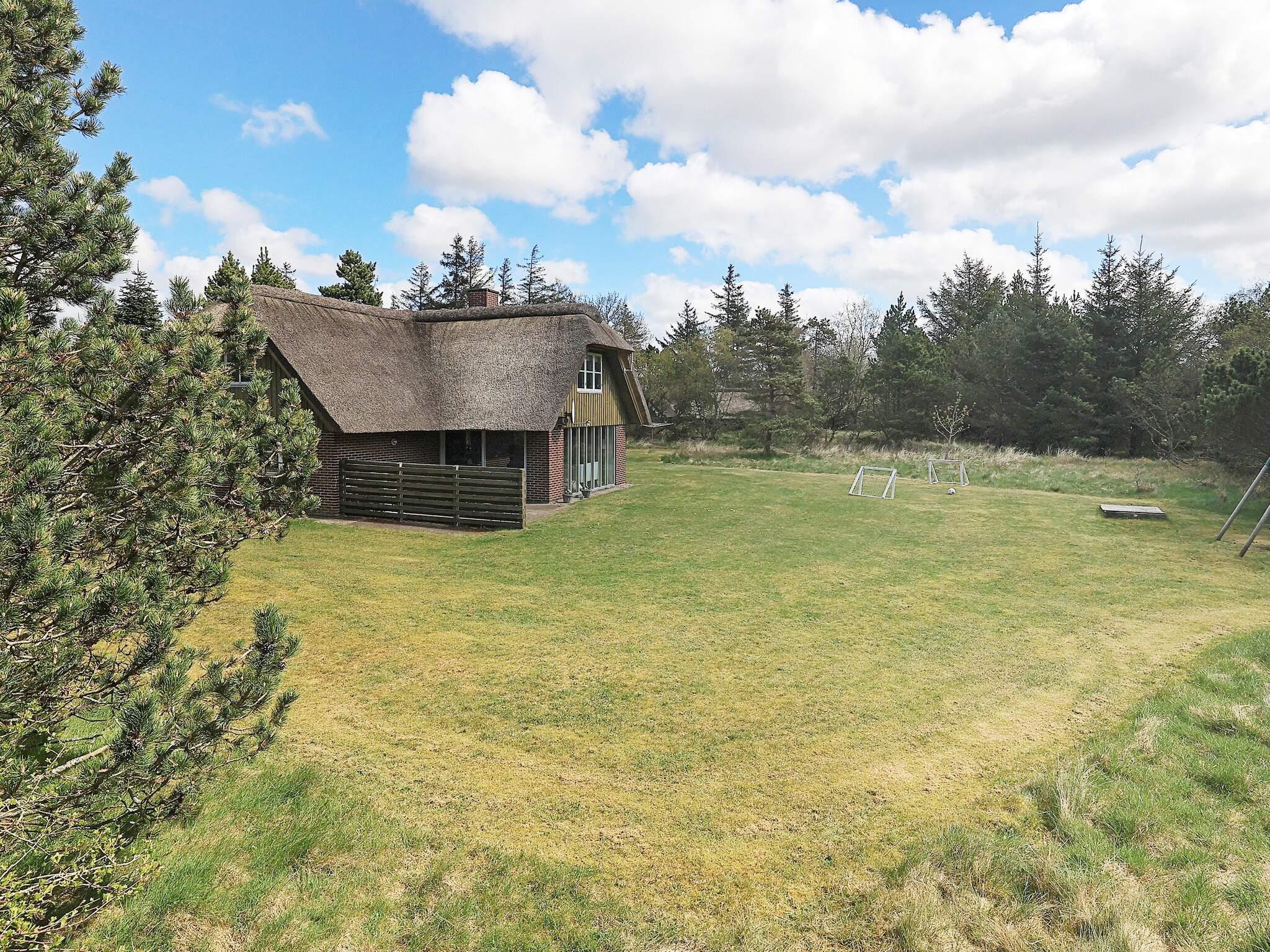 To-etagers murstenshus med stråtag fredeligt beliggende på stor grund. Køkkenet ligger i åben forbindelse med stue og spisestue, og her er strygejern. Stue med moderne og komfortabel møblering. Stort, lyst badeværelse med bruseniche. Adgang til separat rum med spabad. På husets 1. sal er der endnu tre soveværelser samt toilet med håndvask. Her findes også stue indrettet som ekstra tv-rum. Her er sovesofa, der giver to ekstra sovepladser. Grunden giver gode muligheder for leg og diverse boldspil. Udlejes ikke til ungdomsgrupper.