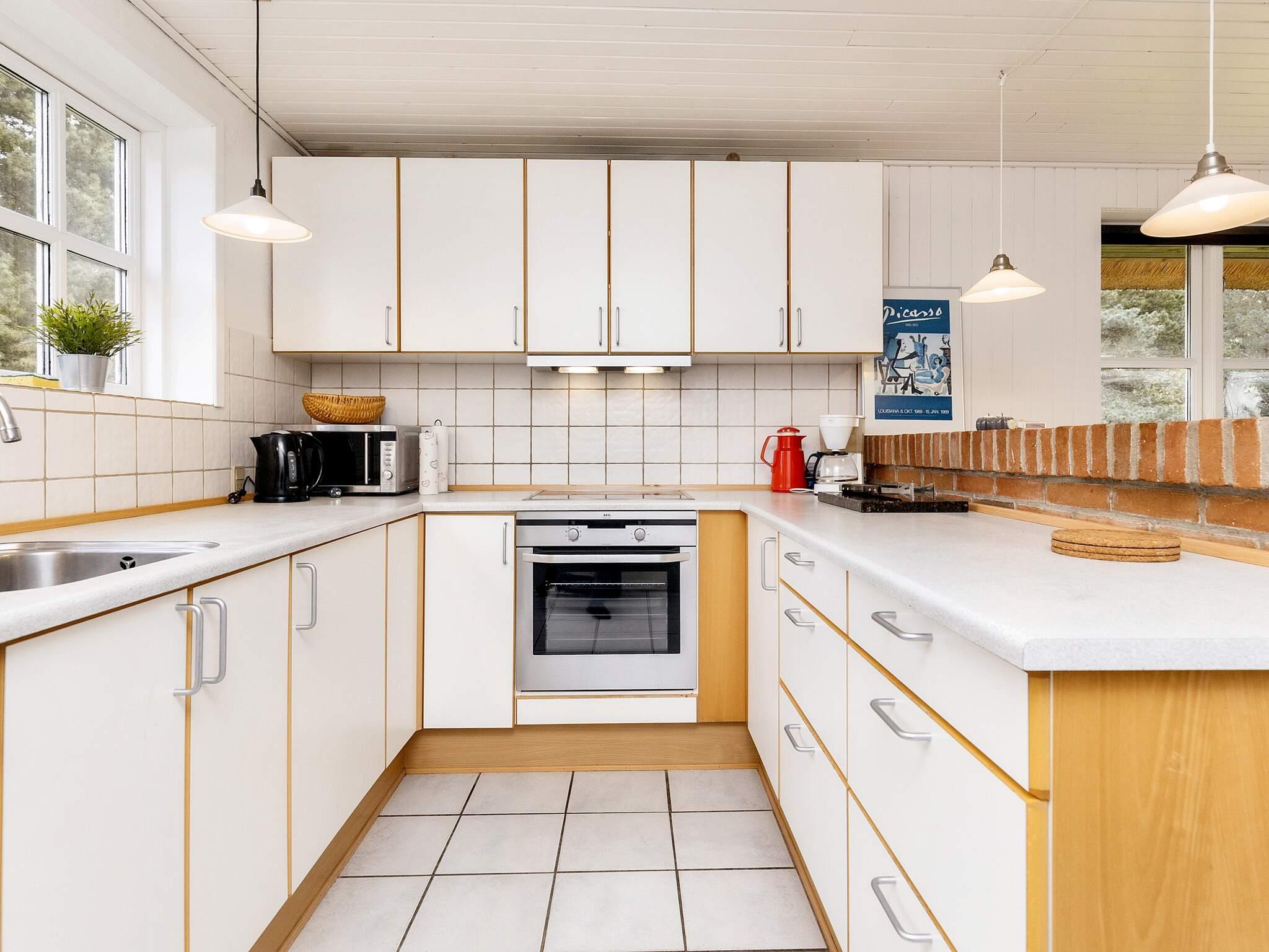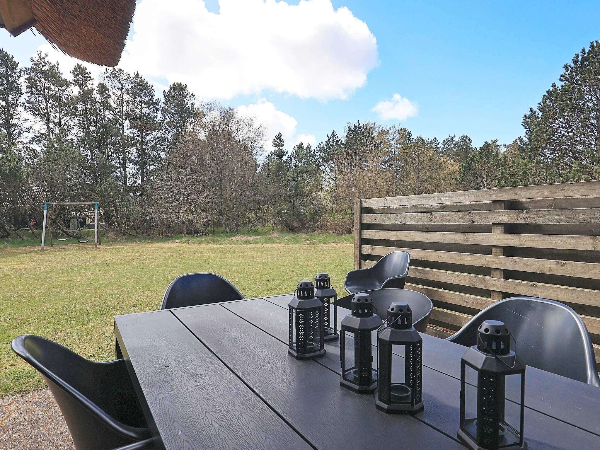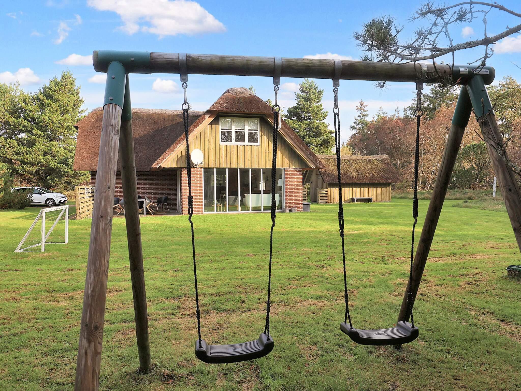 To-etagers murstenshus med stråtag fredeligt beliggende på stor grund. Køkkenet ligger i åben forbindelse med stue og spisestue, og her er strygejern. Stue med moderne og komfortabel møblering. Stort, lyst badeværelse med bruseniche. Adgang til separat rum med spabad. På husets 1. sal er der endnu tre soveværelser samt toilet med håndvask. Her findes også stue indrettet som ekstra tv-rum. Her er sovesofa, der giver to ekstra sovepladser. Grunden giver gode muligheder for leg og diverse boldspil. Udlejes ikke til ungdomsgrupper.