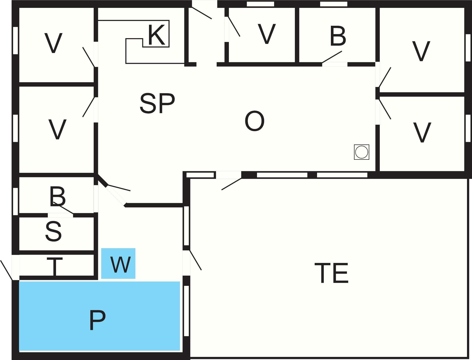 5 Soveværelser: (1DS)+(1DS)+(1DS)+(1DS)+(2K)