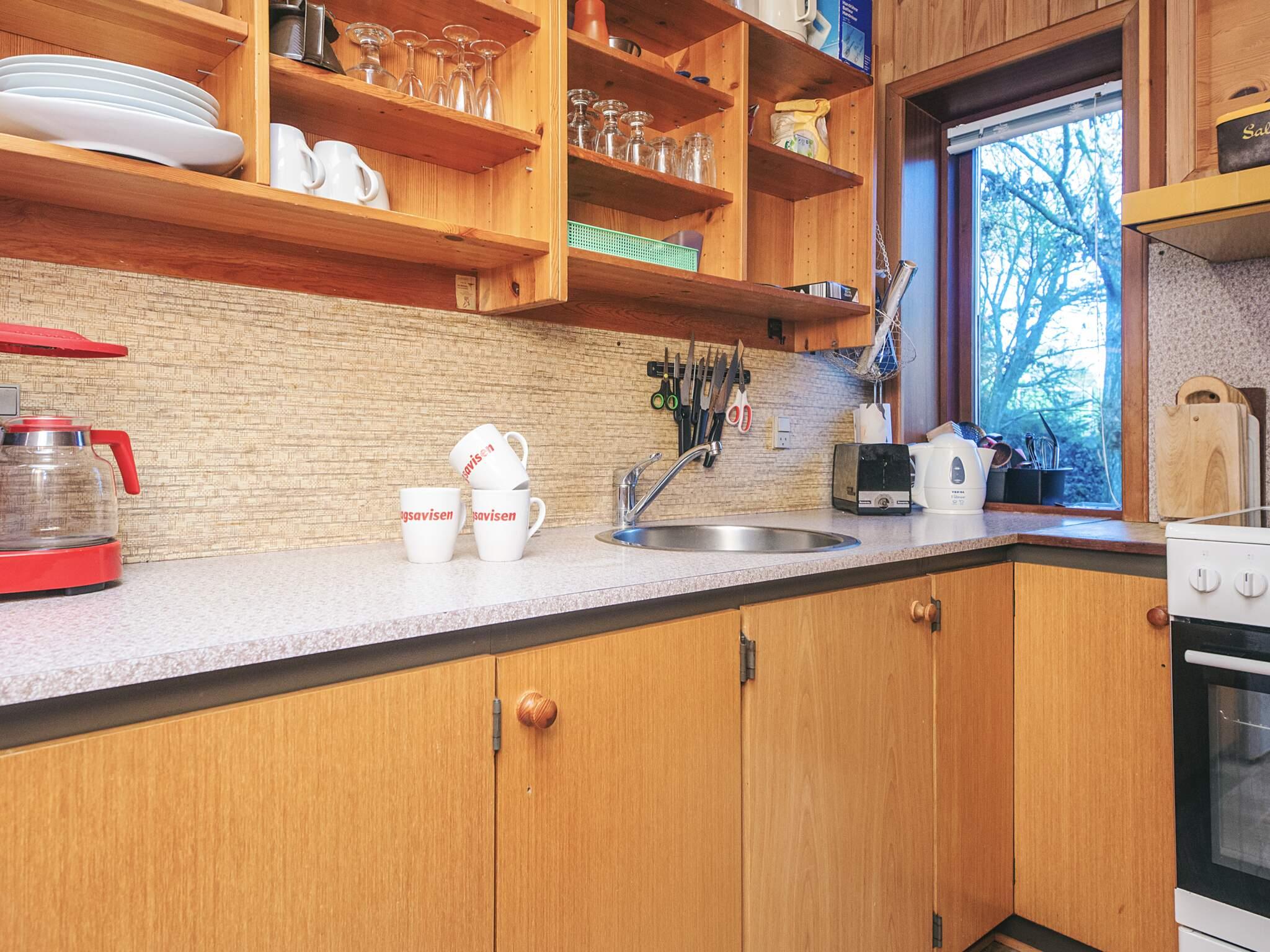 Køkken: El-komfur, køleskab m/frostboks, mikroovn, emhætte, kaffemaskine