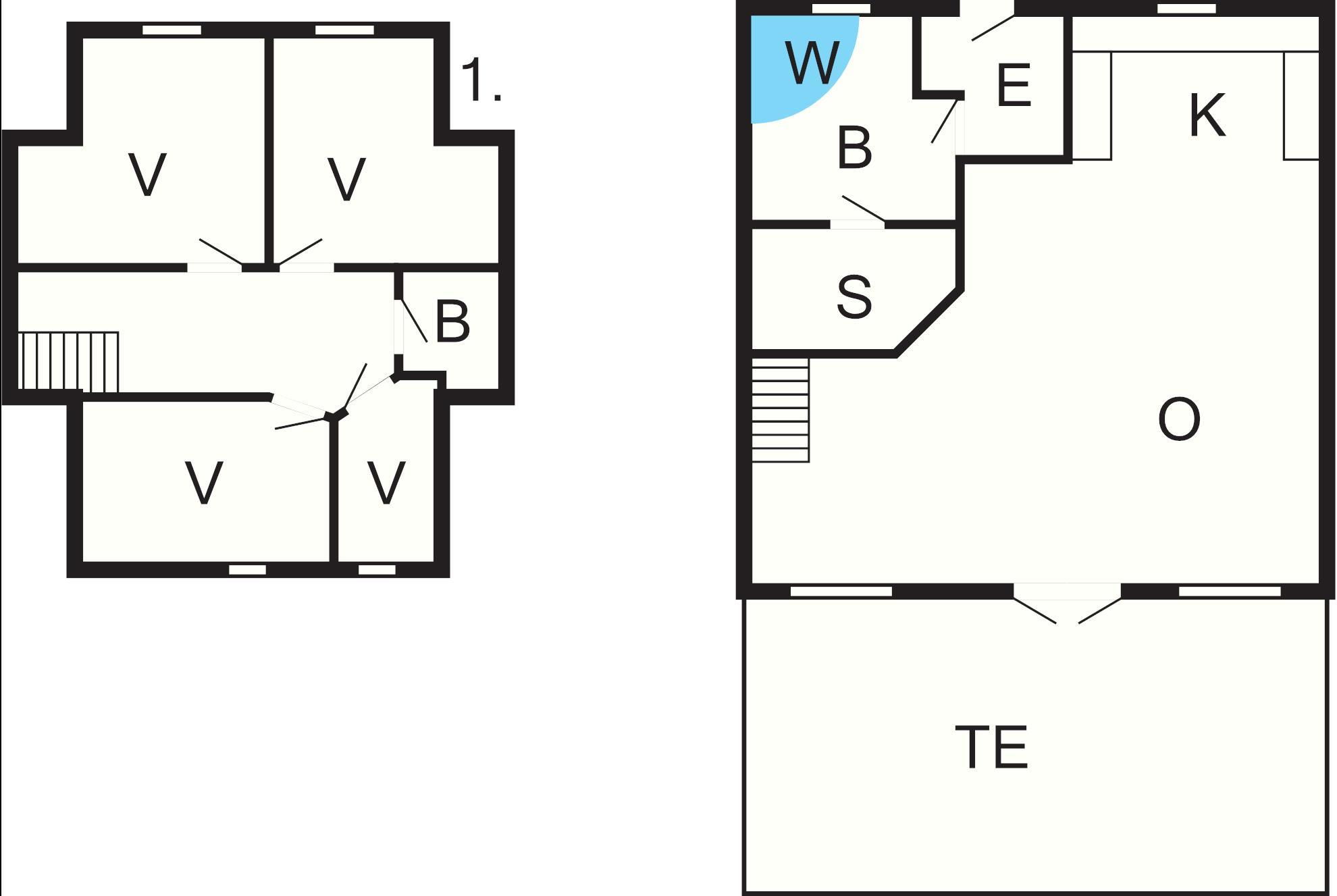 1 Opholdsstue: Brændeovn, stereoanlæg med cd, tv, kabel-tv