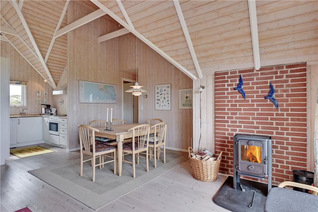 Dette klassiske danske sommerhus i Blåvand byder på charmerende og hyggelige rammer for en afslappende ferie. Med et kombineret opholdsrum med brændeovn og åbent køkken får du et indbydende sted at samles. Badeværelset er rummeligt, og soveværelserne er ideelle til både familier og par.