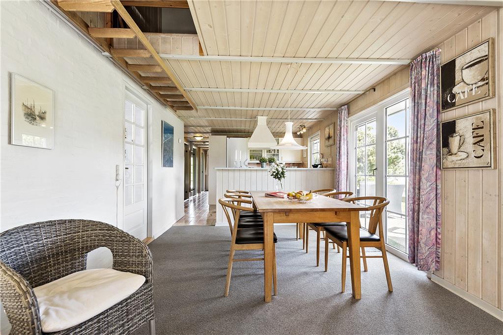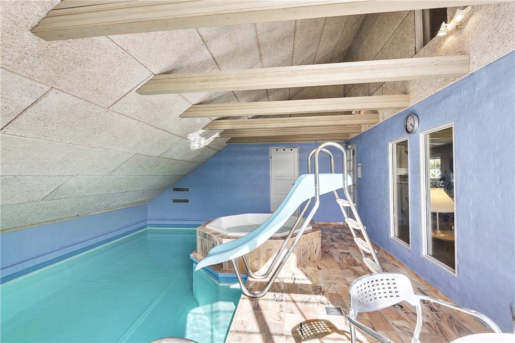 Her får I fire rigtig gode dobbeltværelser og to badeværelser, i det ene badeværelse er der vaskemaskine og tørretumbler og i det andet er der sauna. Der er et dejligt køkkenalrum med hyggelig spiseplads, køkkenet er veludstyret med microovn, varmluftsovn og opvaskemaskine. Stuen er lys og med dejlig udsigt til haven, der er brændeovn hvor I kan tænde op på de kølige aftener. I kan sagtens få tiden til at gå i den 21m2 store swimmingpool med rutsjebane og den 5 mands store standvandsspa. Skulle I mangle yderligere underholdning, er der TV og gratis trådløs internetforbindelse i sommerhuset. Huset er et lavenergi-hus og er senest moderniseret i 2007.