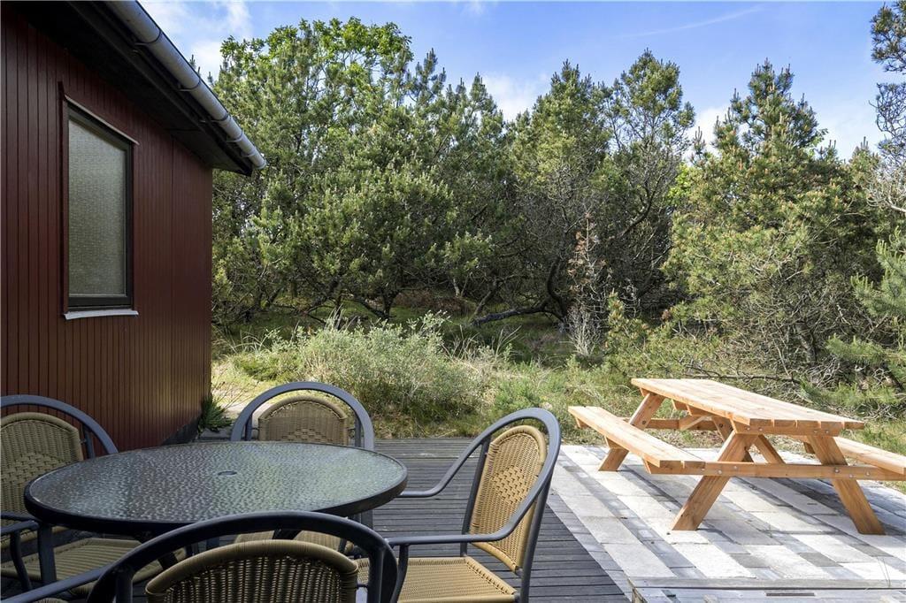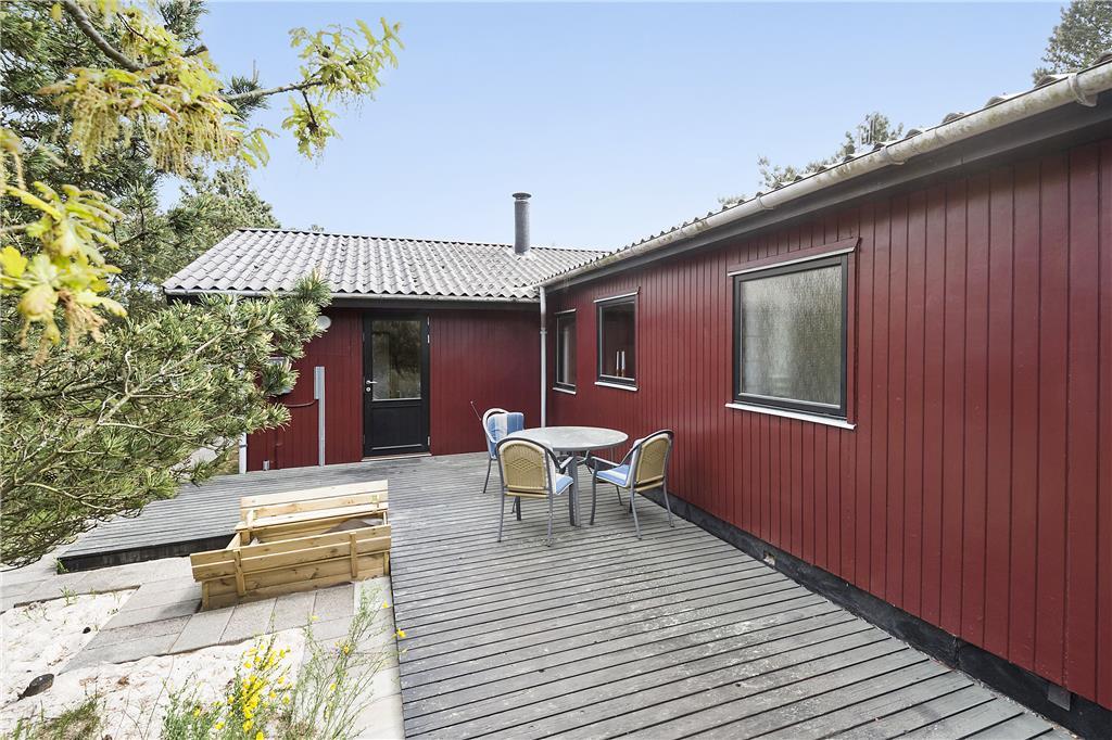 I får to dejlige terrasser, den ene er overdækket og den anden er en fin morgenterrasse mod øst, her er der en sandkasse til børnene. Grunden er 2 tønder land stor, og det meste er fredet, her er der klitter, lyng og fyrtræer. Grunden fortsætter over i en stor fredning hvor der er stier, så man på gåben eller cykel hurtigt kommer fra et område til et andet.