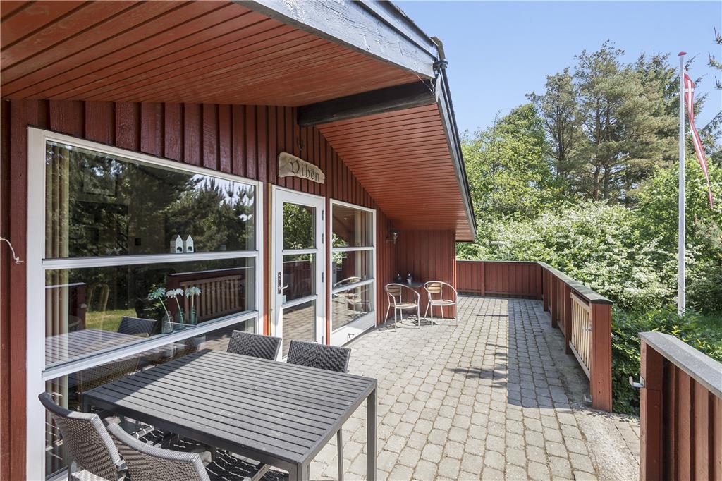 Sommerhus i Blåvand Strand og By, Vestjylland, med plads til 6 voksne og 2 husdyr. Der er en hyggelig indretning med bl.a. brændeovn, og du finder desuden opvaskemaskine i boligen.