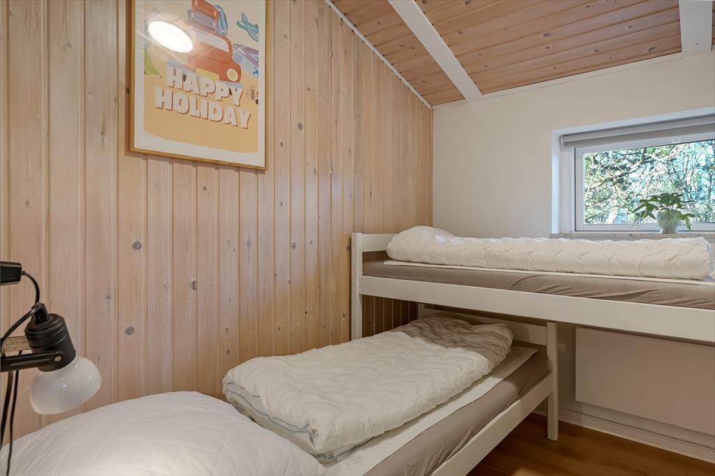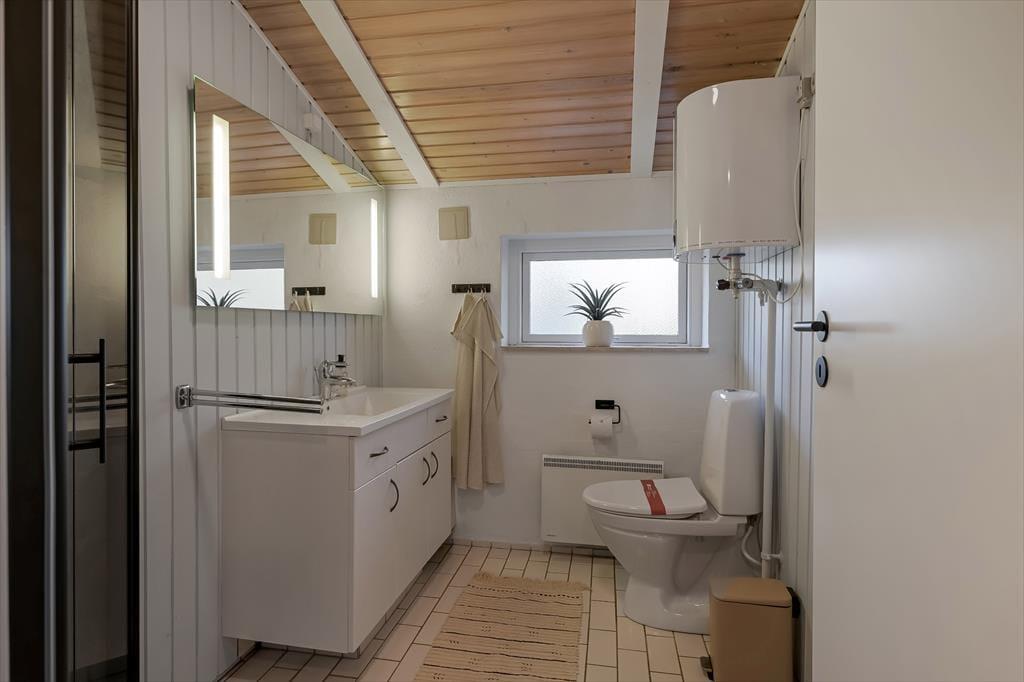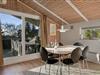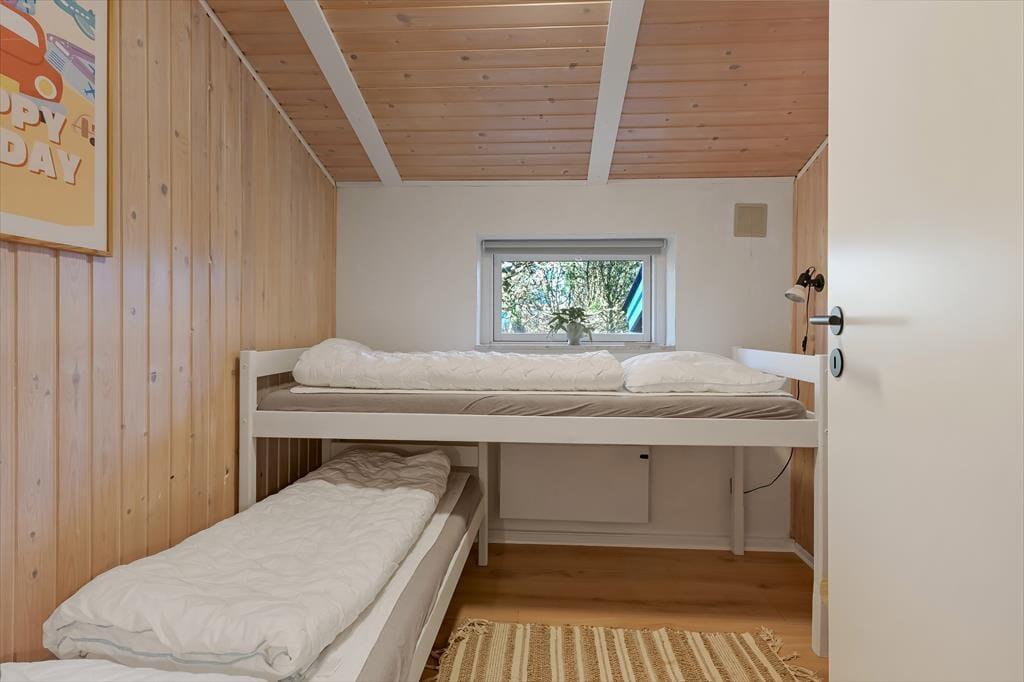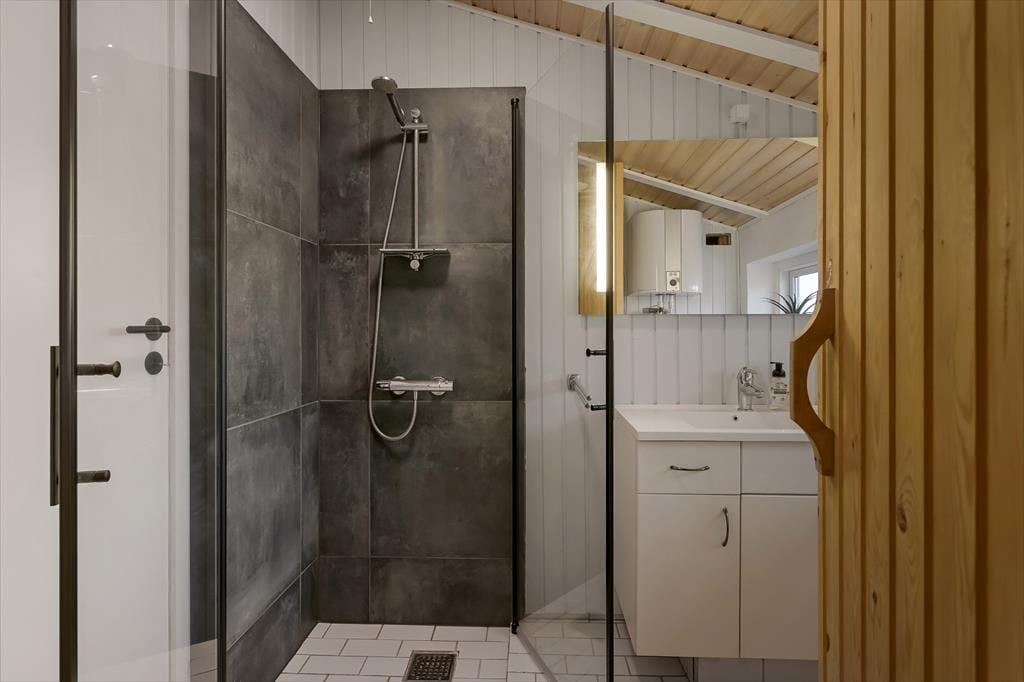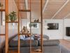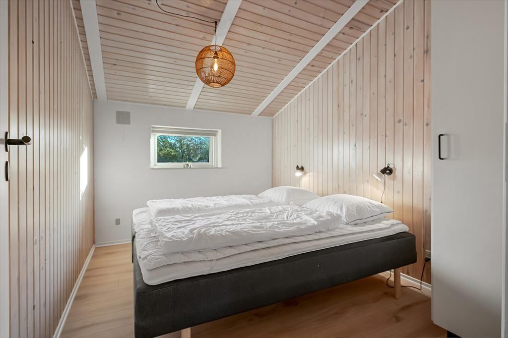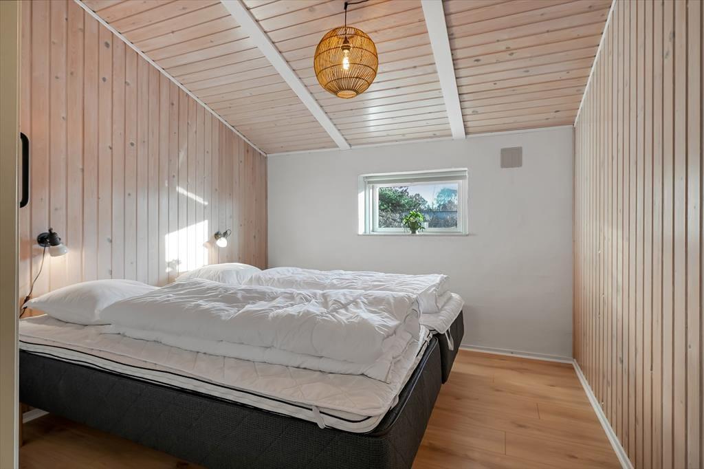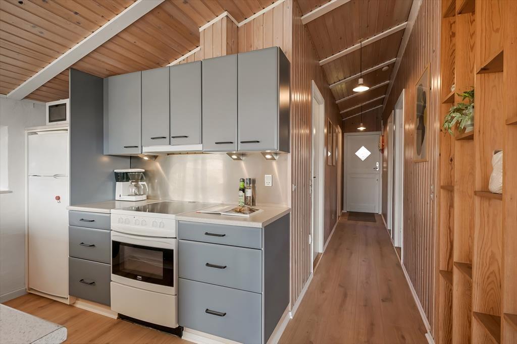 I det hyggelige alrum er der god plads til alle - det er velindrettet med spisebord, sofahjørne og brændeovn. Fra Køkken- og alrummet er der direkte udgang til den sydvendte terrasse. Fra køkkenet kan man være med i aktiviteterne, da det ligger i åben forbindelse stuen. Dejligt, lyst badeværelse med bruser og sauna. Der er 2 soveværelser med dobbeltsenge og et køjerum med plads til to. Det er muligt at tilslutte egen billader til huset.