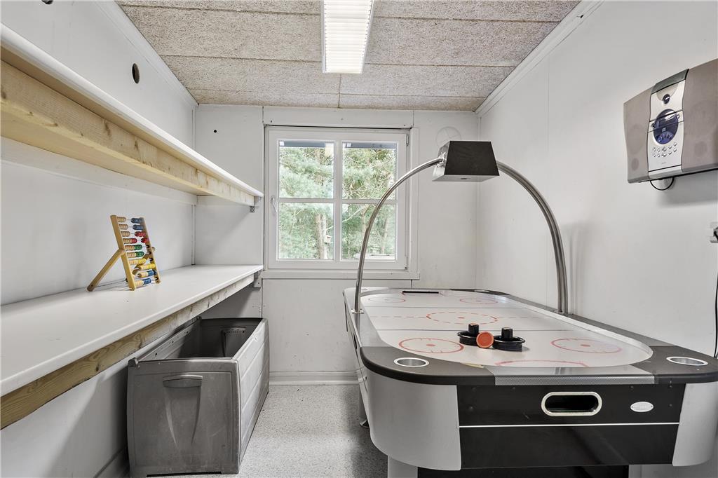 Boligen er på 217 m² og ligger på en 2.285 m² stor grund, hvor der bl.a. er gynge, sandkasse og trampolin.