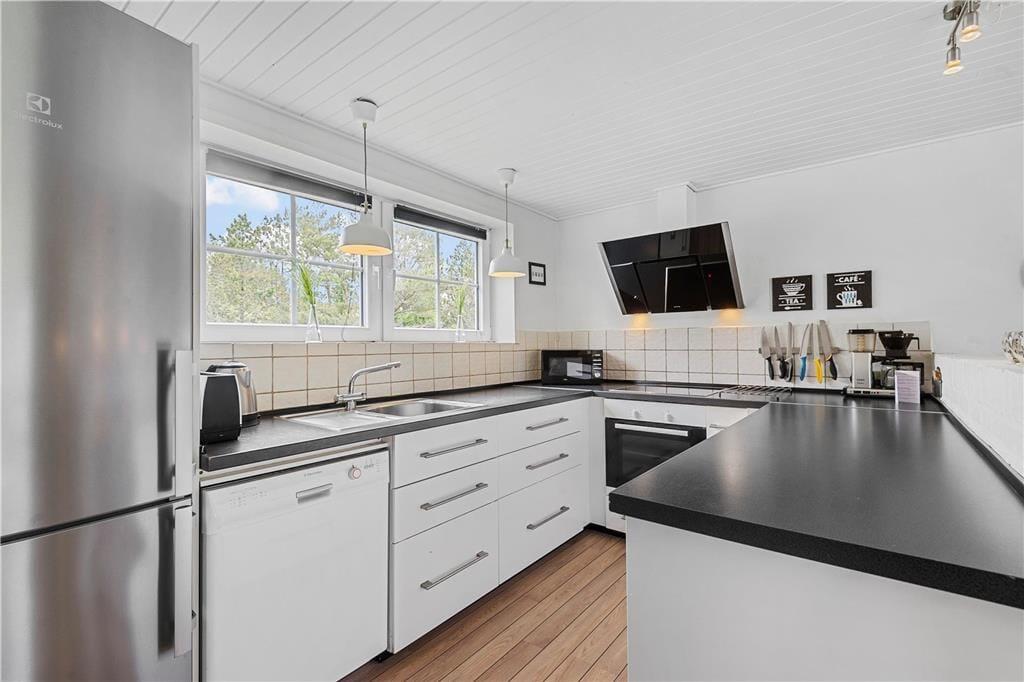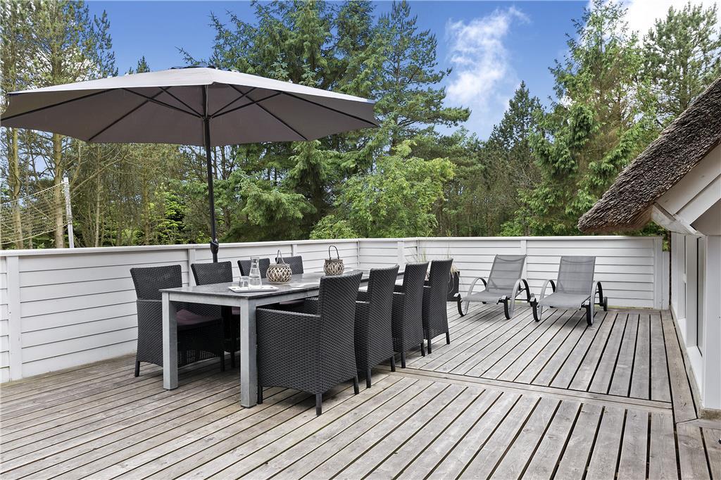 Sommerhus i Blåvand Strand og By, Vestjylland, med plads til 10 voksne og 2 husdyr. Der er en hyggelig indretning med bl.a. brændeovn, og du finder desuden vaskemaskine, opvaskemaskine og tørretumbler i boligen.