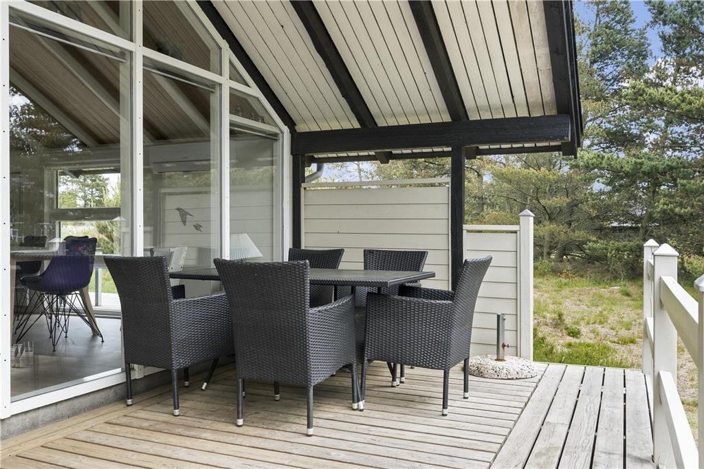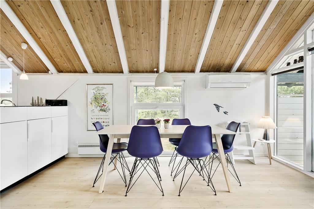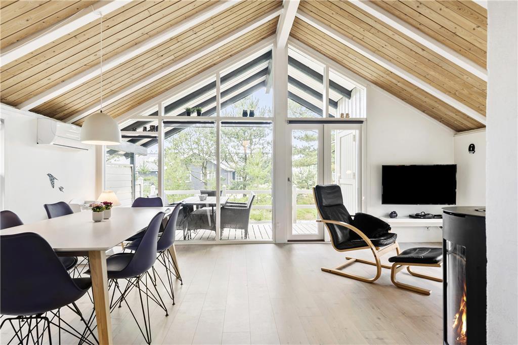 Sommerhus i Blåvand Strand og By, Vestjylland, med plads til 6 voksne og 2 husdyr. Der er en hyggelig indretning med bl.a. brændeovn, og du finder desuden vaskemaskine og opvaskemaskine i boligen.