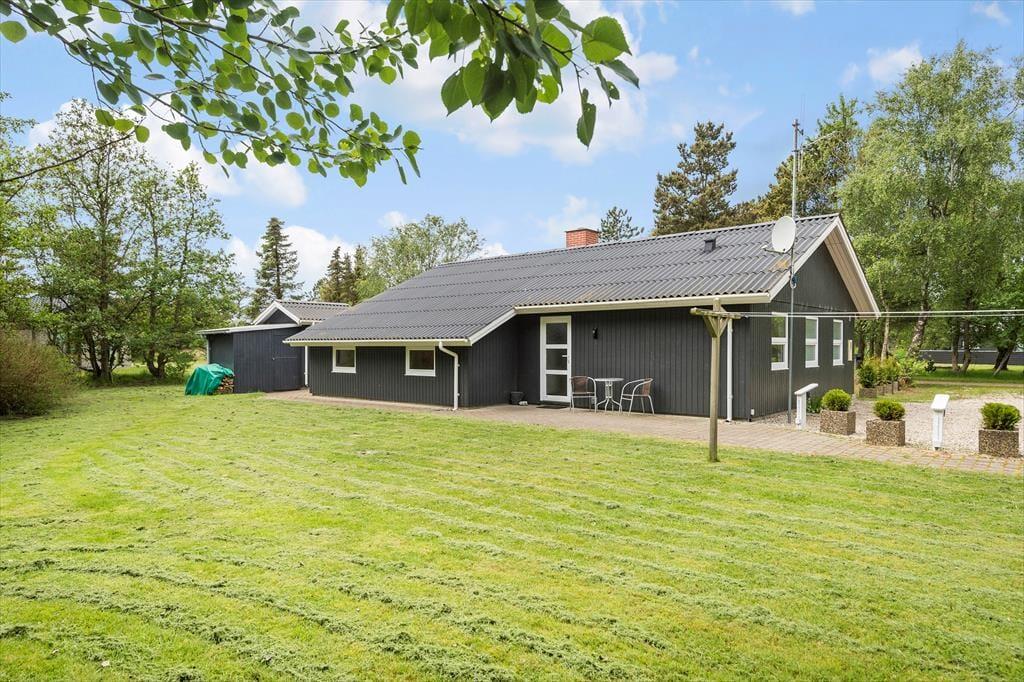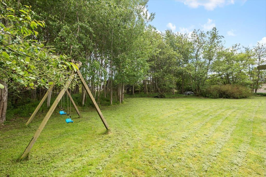Her er god plads til solbadning og leg i haven. Mod sydvest er en dejlig lukket terrasse som fortsætter rundt om huset mod sydøst. Sommerhuset er omkranset af græsplæne og store træer. En rigtig dejlig grund, hvor børnene kan lege frit, uden det store opsyn.
