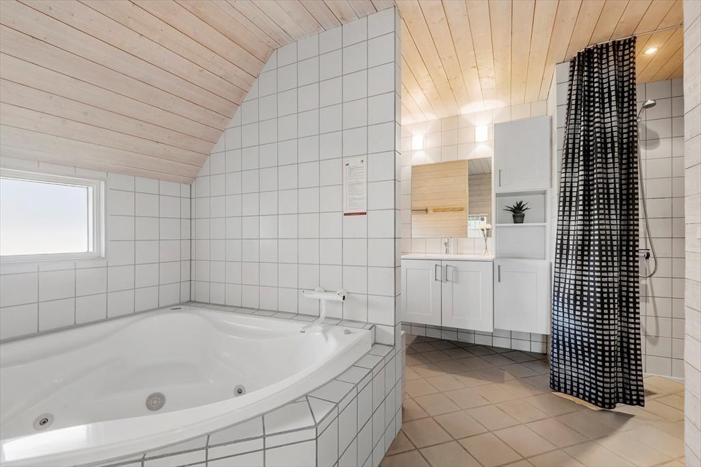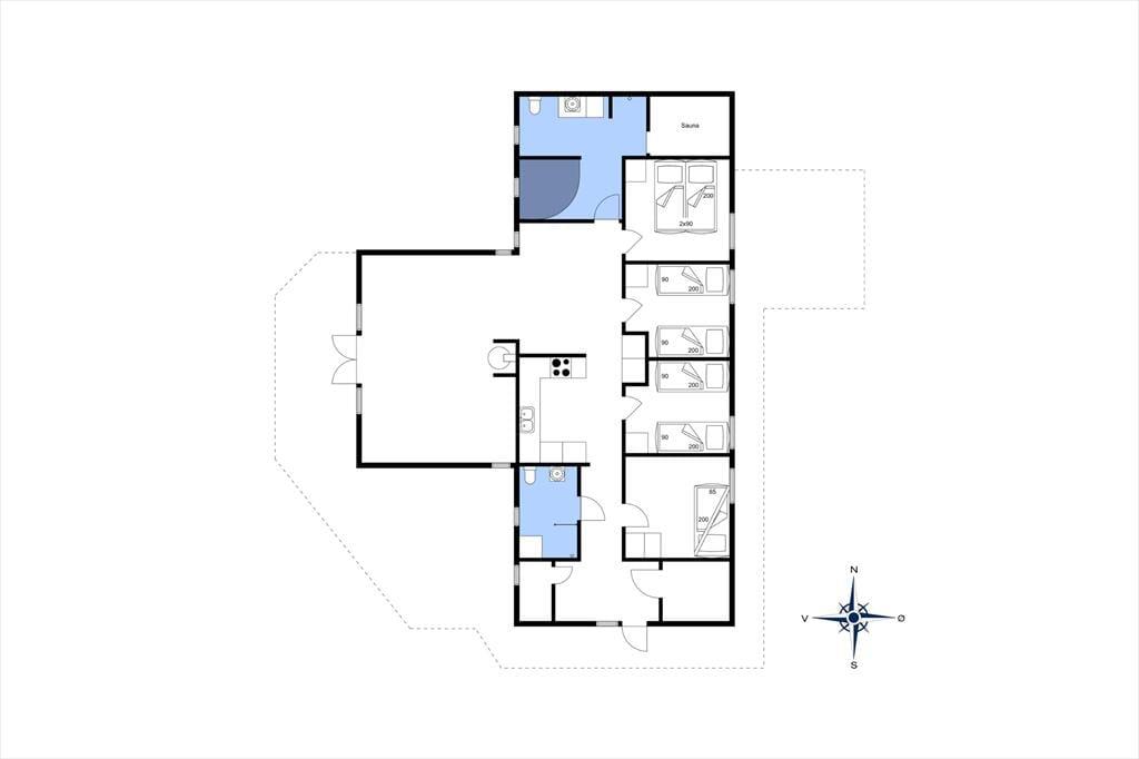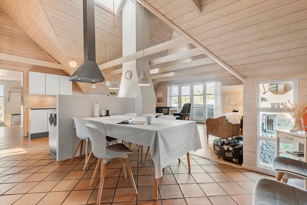 Der er hele 110 m2 at gøre godt med i huset, som byder på fire gode soveværelser og to badeværelser, hvoraf det største er indrettet på luksuriøs vis med spabad og sauna. Et køkken er der selvfølgelig også, og det er et veludstyret et af slagsen, som er integreret med en stor stue med dejligt lysindfald. Den åbne forbindelse er virkelig velfungerende, for når I står og kokkererer, kan I samtidig følge med i hyggesnakken og familiens øvrige ferieaktiviteter. Efter aftensmaden kan I sætte jer til rette i stuens komfortable hjørnesofa, for eksempel for at spille kort eller se en god film – og hvis det er køligt udenfor, kan I tænde op i brændeovnen og lave varm kakao for at gøre atmosfæren endnu hyggeligere.