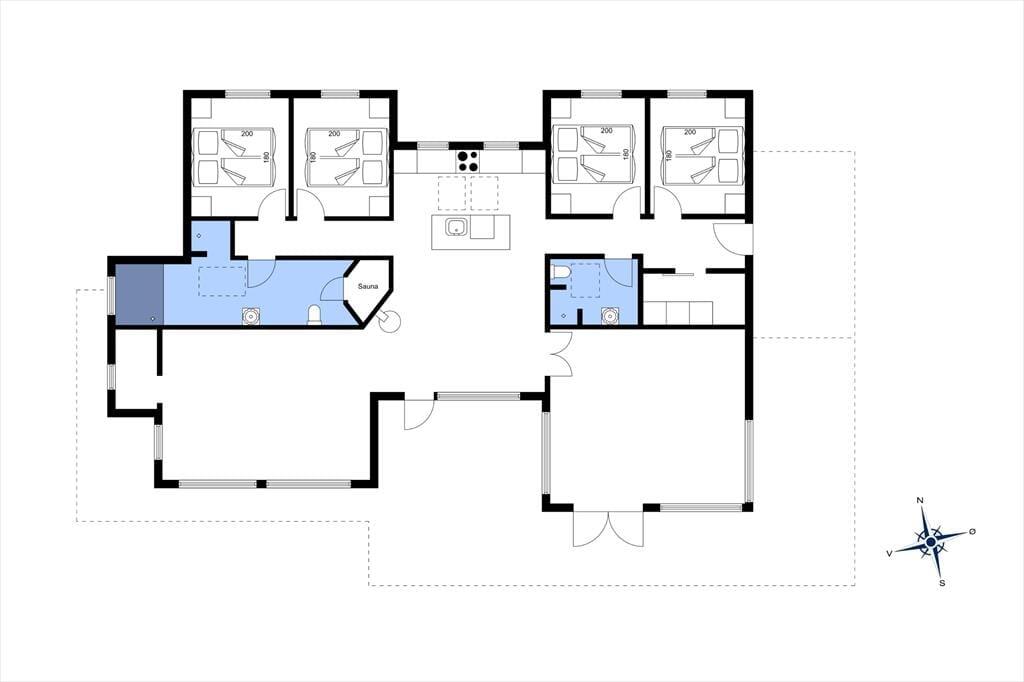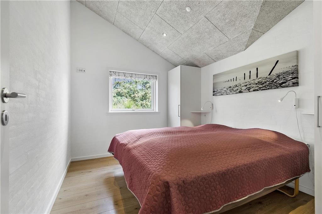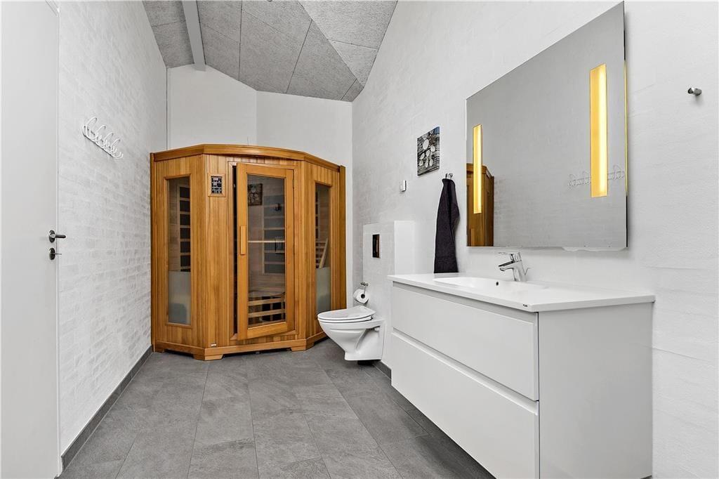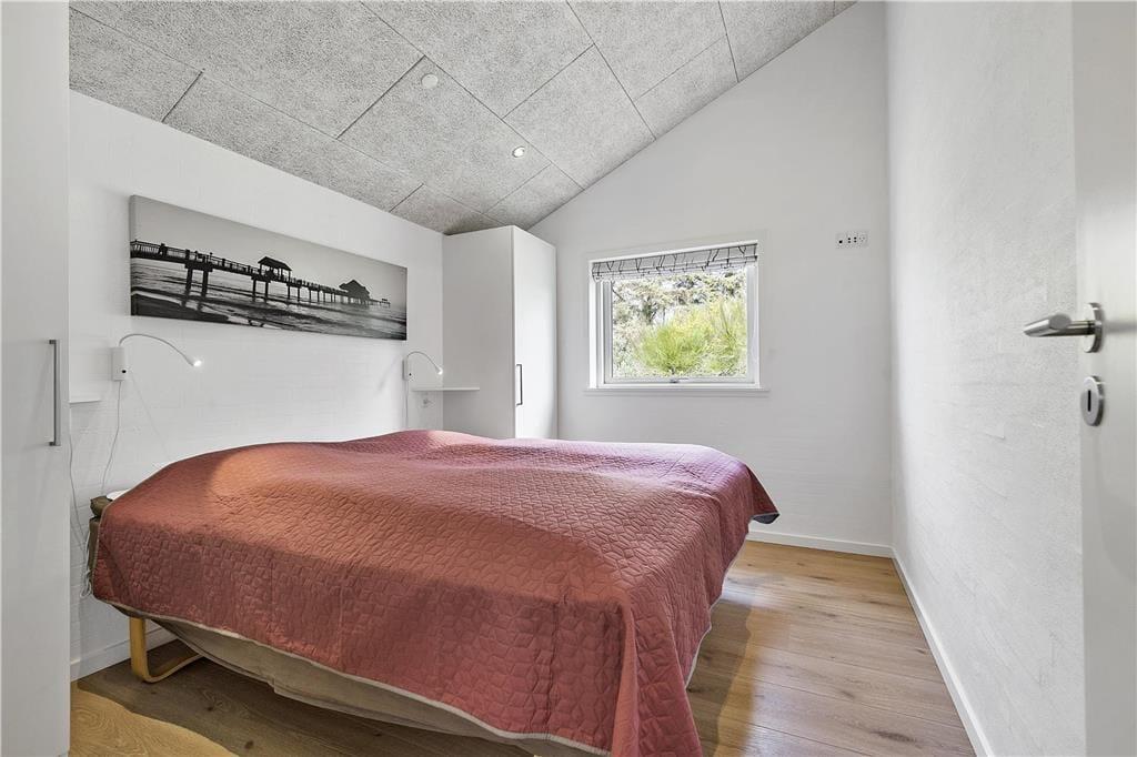 I sommerhuset, som er et kvalitetsbyggeri fra 2013, får I hele 167 m2 at brede jer på. Med fire rummelige soveværelser kan I sagtens invitere den udvidede familie eller vennerne med på ferien – og der er endda en alkove i stuen, hvis I får brug for ekstra sengepladser. Stuen har en lys og luftig atmosfære takket være de store vinduespartier og den åbne forbindelse til det velindrettede køkken-alrum. Midt i den store opholdsafdeling står en brændeovn, og på kølige dage er det for øvrigt rart, at der er gulvvarme overalt. I hver sin ende af huset ligger to badeværelser, hvoraf det største er udstyret med et lækkert spabad og en infrarød sauna. Sidst, men bestemt ikke mindst, fuldendes planløsningen af et aktivitetsrum med blandt andet poolbord og dart.