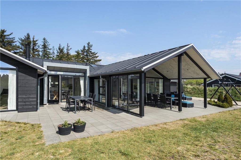 Dejlige, familievenlige faciliteter er der flere af ude under åben himmel: Til de yngste feriegæster er der gynger, trampolin og en stor sandkasse, og der er god plads til leg og boldspil på græsplænen. De voksne kan naturligvis også tage del i vikingespillet og kroketdysten, hvis ikke de foretrækker at læne sig tilbage i en blød havestol på den herlige, sydvendte terrasse. En del af terrassen er overdækket, og der er udekøkken, hvilket er et perfekt supplement, når I vil grille.