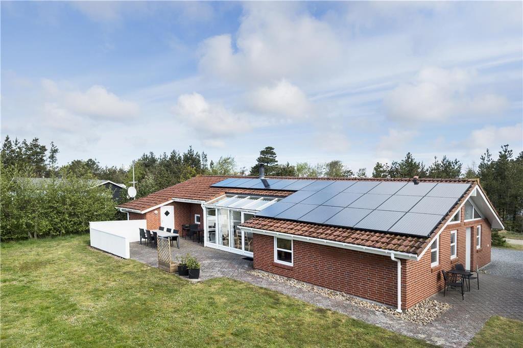 Dette dejlige sommerhus i Blåvand er indrettet med aktivitetsrum, spa og sauna, en stor stue og fire soveværelser – kort sagt alt, hvad I skal bruge for at slappe af og nyde livet. Og ferien kan endda holdes med grøn samvittighed, for solcellerne på taget gør sommerhuset til et godt og mere bæredygtigt valg.