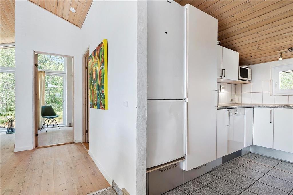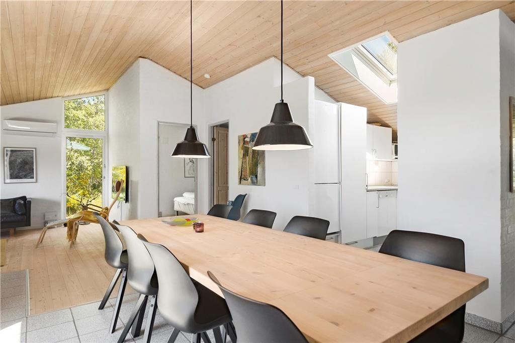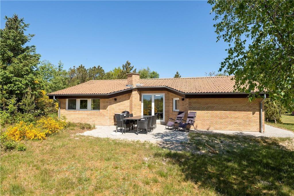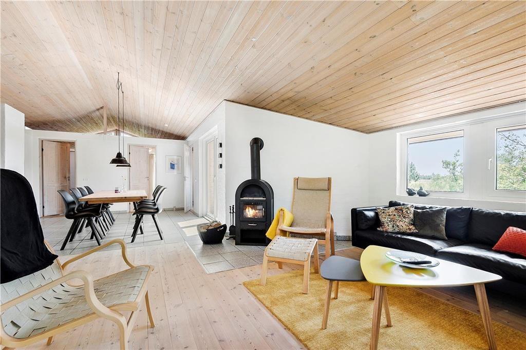 Sommerhuset er en gedigen murstensejendom, der er opdateret med nyt møblement og andre forbedringer i 2019. Det betyder, at I kommer til at bo komfortabelt og godt, og I får endda hele 111 m2 at brede jer på. Planløsningen består af fire gode soveværelser og et praktisk indrettet køkken, som ligger i åben forbindelse med en stor stue. Badeværelser er der to af, hvoraf det ene er indrettet med både spa og sauna – så når I kommer hjem efter dagens oplevelser, kan I tage et velfortjent bad og en afslappende saunatur. Afslapningsstunderne kan også foregå i stuen, for eksempel i sofahjørnet nær brændeovnen og fladskærmen eller samlet til et godt måltid mad ved spisebordet. Uanset hvor I sidder, kan I nyde den frie udsigt til det grønne landskab gennem vinduerne.