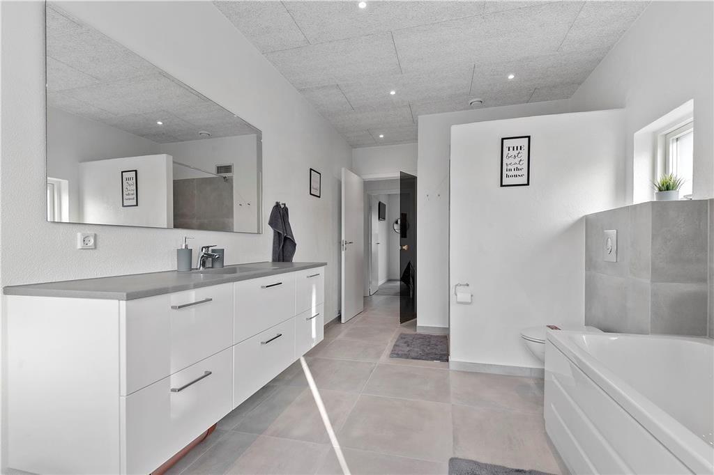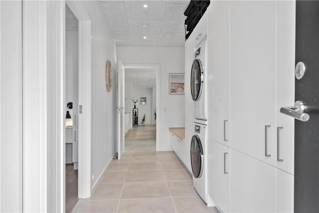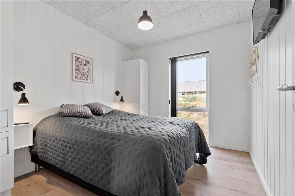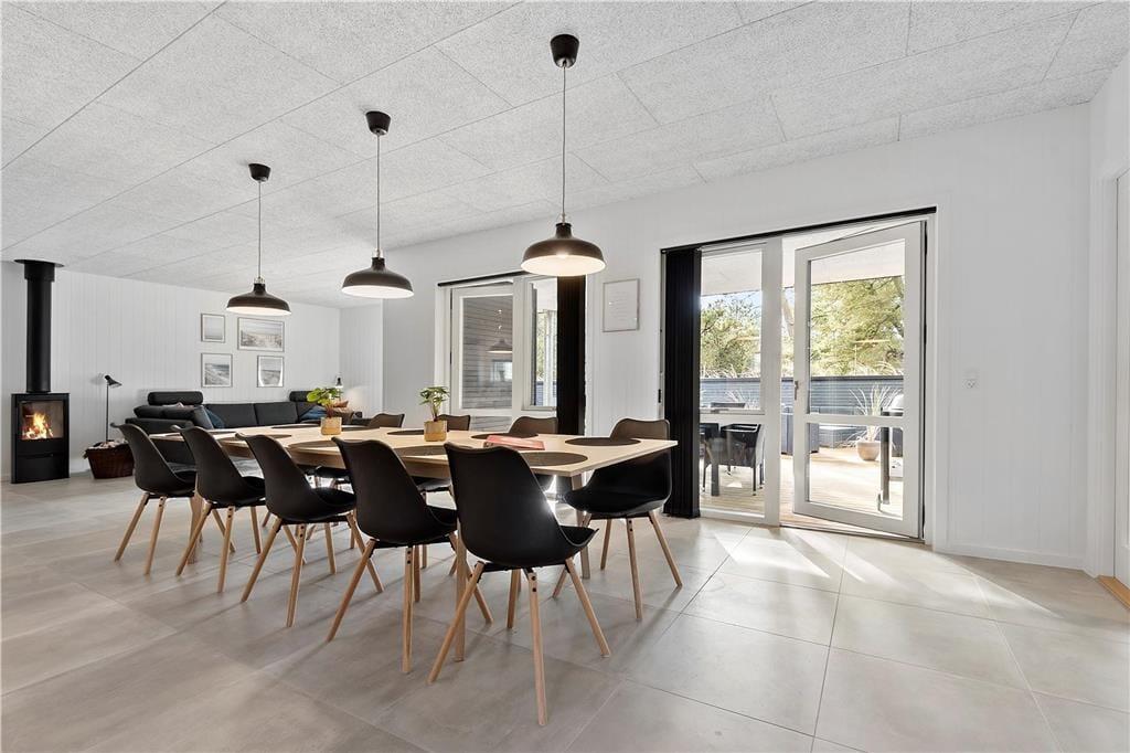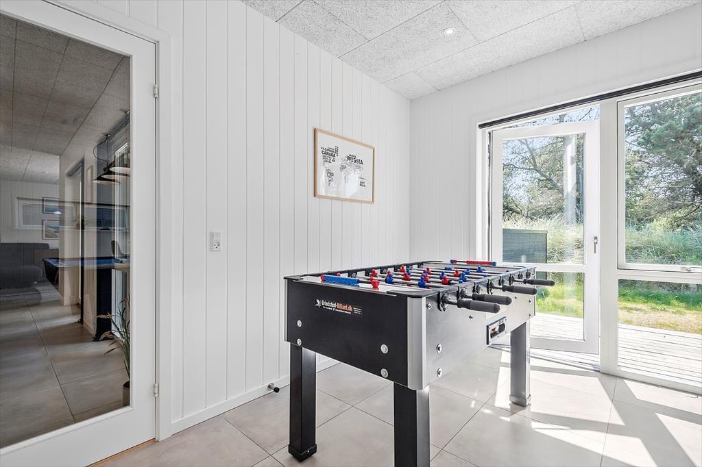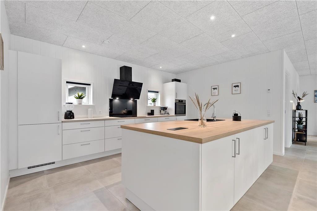Komfort og kvalitet er kodeord for sommerhuset, der er opført så sent som i 2019 og måler hele 171 m2. Indretningen er stilfuld og lækker, og rundt omkring i huset finder I mange herlige opholdspladser, hvor I kan hygge jer i stor stil. For eksempel er det herligt at flade ud i sofaafdelingen nær brændeovnen i husets store stue, hvor I også kan samles ved langbordet, når det er spisetid. Stuen er integreret med et lækkert køkken, så selv når I forbereder aftensmaden, kan I tage del i den fælles feriehygge. Når I virkelig vil koble af, er der sauna og karbad på det ene af husets to badeværelser – og skal der være lidt mere gang i den, kan I dyste i pool, bordfodbold, bordtennis og dart i aktivitetsrummet. Flot belysning, akustiklofter og varmepumpen hører til de diskrete detaljer, der skaber en behagelig rumfornemmelse inden døre. Overalt i sommerhuset er der desuden gulvvarme, også på de fire soveværelser, der alle er udstyret med tv og gode dobbeltsenge.