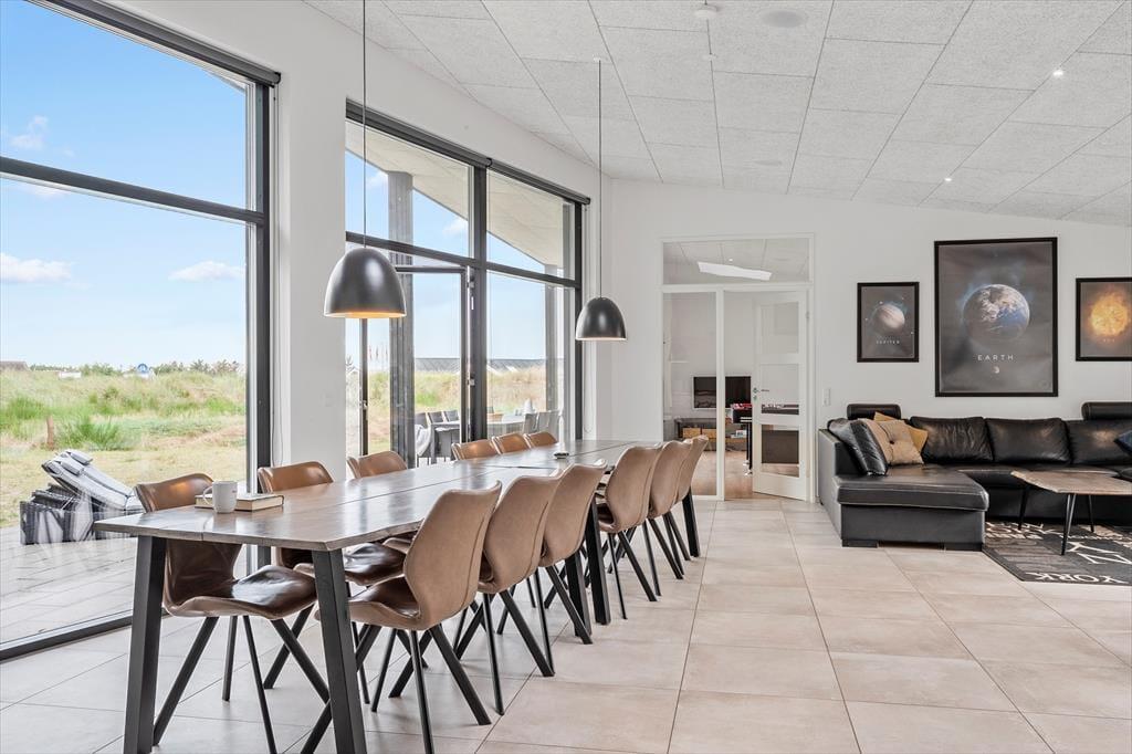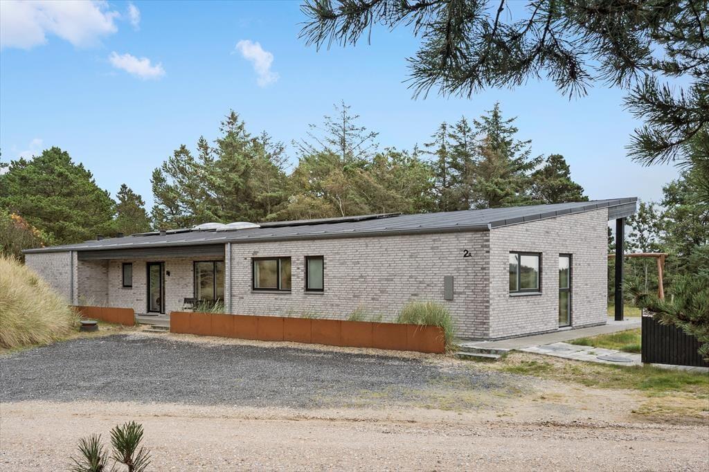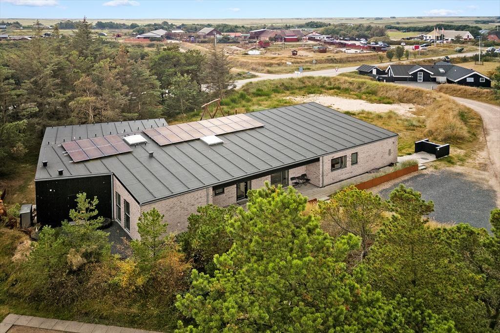 Livsnydere og legebørn i alle aldre får en herlig ramme om ferien i dette gennemført lækre sommerhus i Blåvand. Den moderne og energivenlige ejendom er blandt andet indrettet med et stort aktivitetsrum og en luksuriøs wellnessafdeling, og den store naturgrund, som huset ligger på, forskønner bestemt også ferielivet.