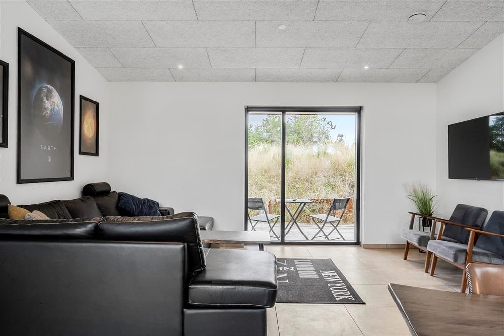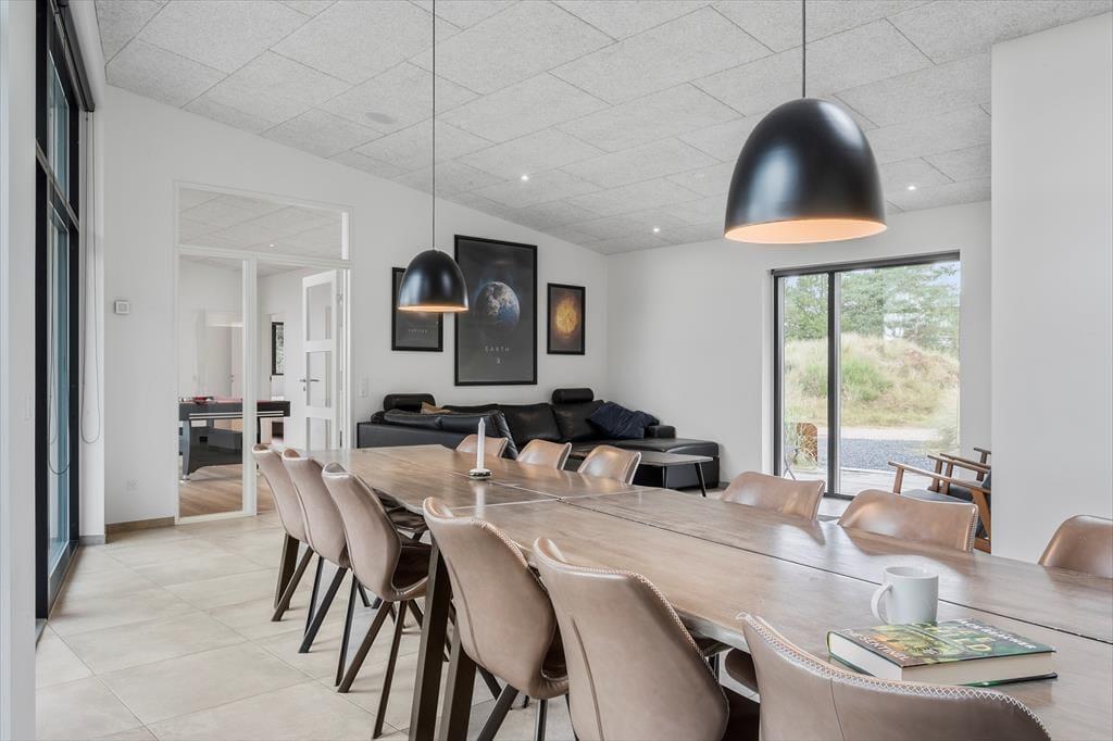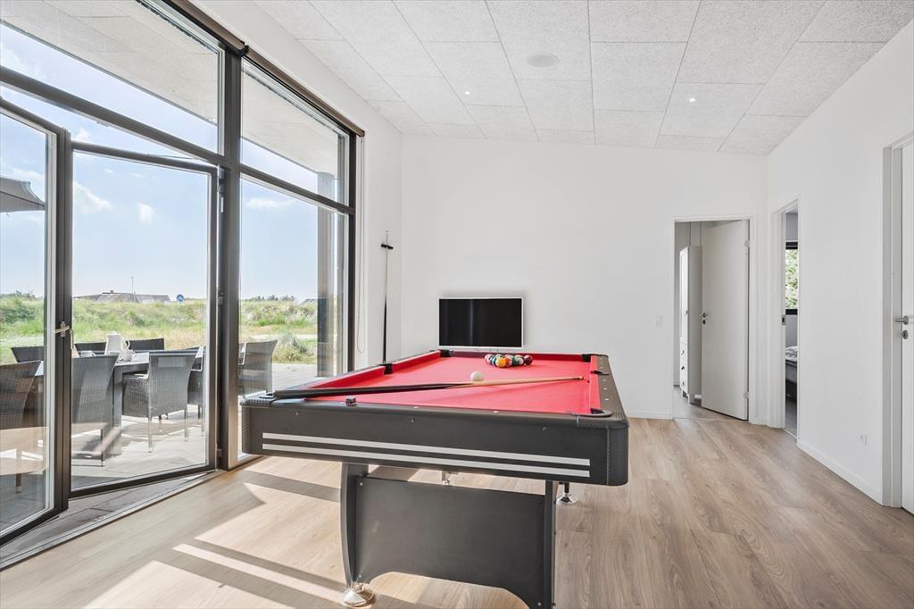 Drømmene bliver indfriet til fulde i huset, for det er virkelig en feriebolig i særklasse. Lige fra I træder ind i entréen er det tydeligt, at huset er opført og indrettet efter alle kunstens regler, og det tjekkede indtryk fortsætter, når I bevæger jer fra rum til rum. Et lækkert køkken-alrum ligger i åben forbindelse med en smagfuldt indrettet stue, hvor I kan slænge jer i de komfortable møbler, se tv og surfe via husets internet. I Blåvand findes et rigt dyreliv, og hvis man er heldig, kommer rådyr og harer på visit i haven ved skumringstid. Fra opholdsrummet er der direkte adgang til sommerhusets store aktivitetsrum, hvor I kan spille billard, og hvis I selv medbringer en spillekonsol, kan den tilsluttes aktivitetsrummets tv.