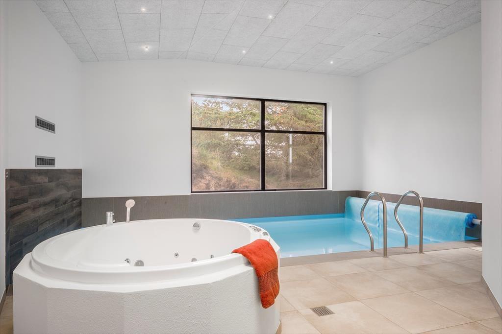 I wellnessafdelingen kan familien hygge sig i den 22 m2 store pool – og hvis I er mere til en afslapningsstund i varmere vand, kan standvandsspabadet anbefales. Kommer I hjem fra en frisk Vesterhavs-dukkert ved den nærliggende Hvidbjerg Strand, er det skønt at få varme i kroppen i husets sauna.