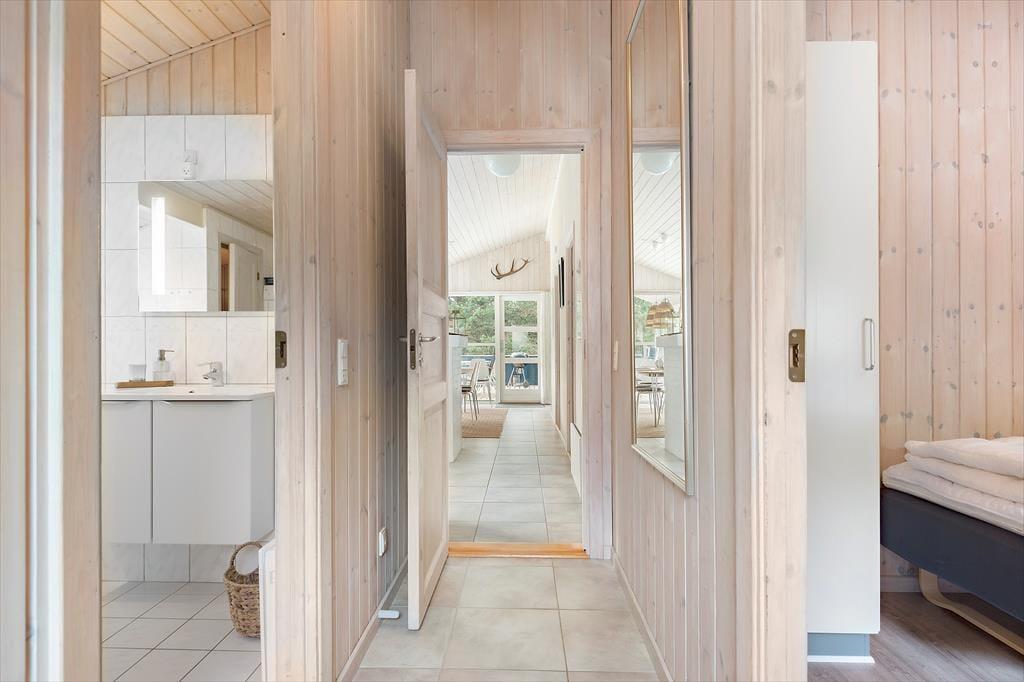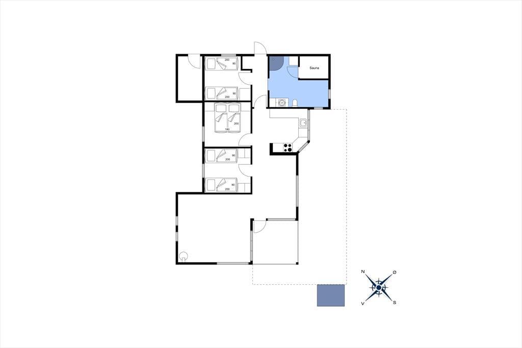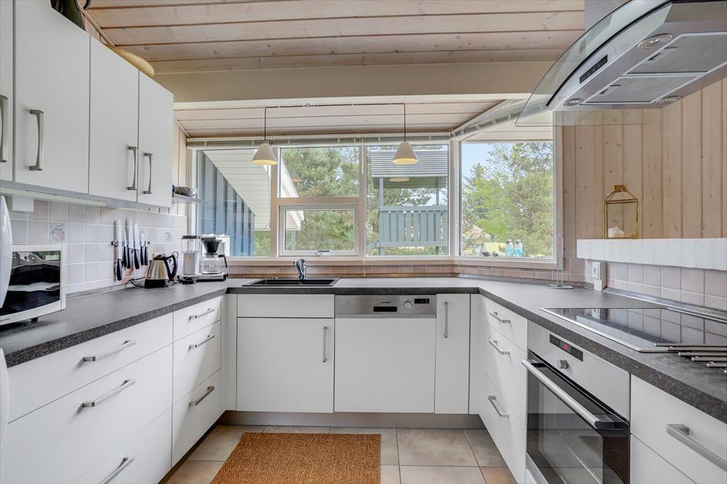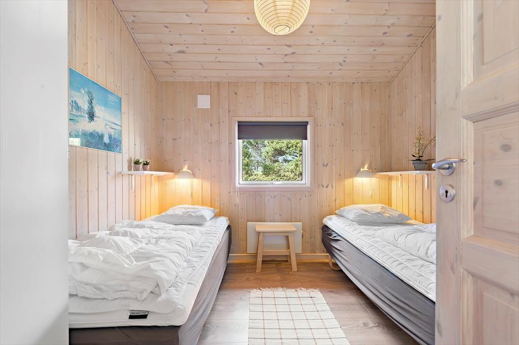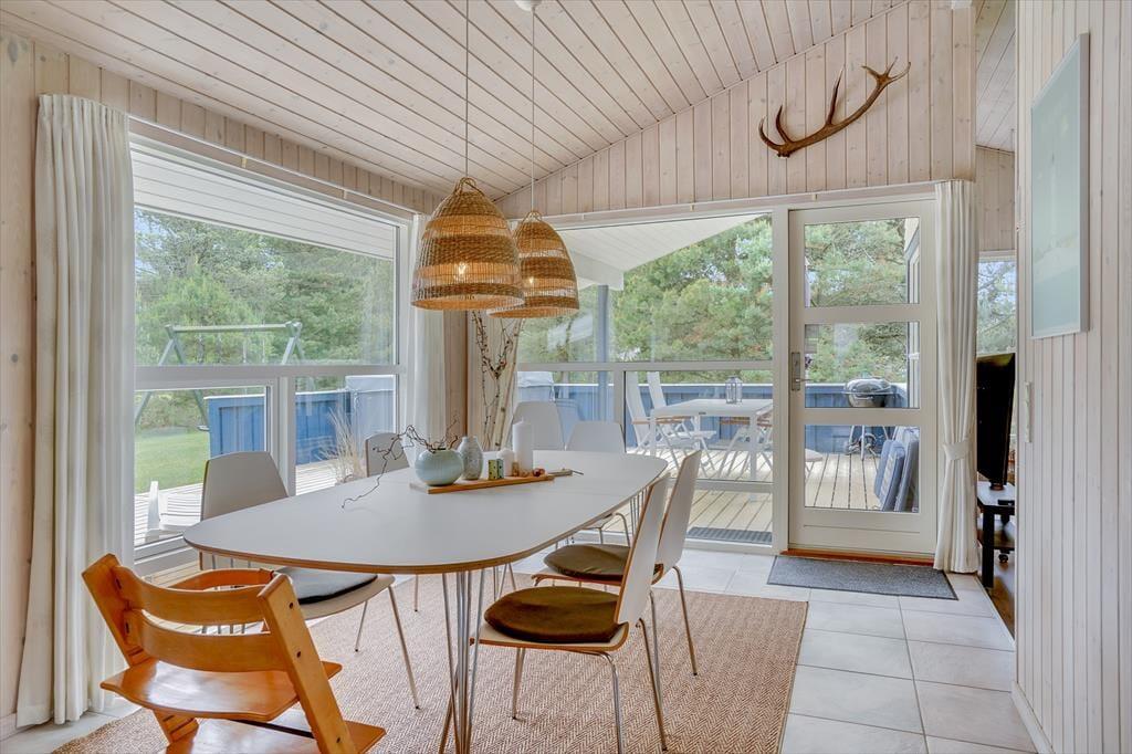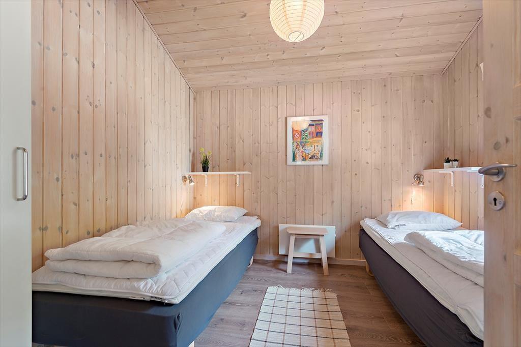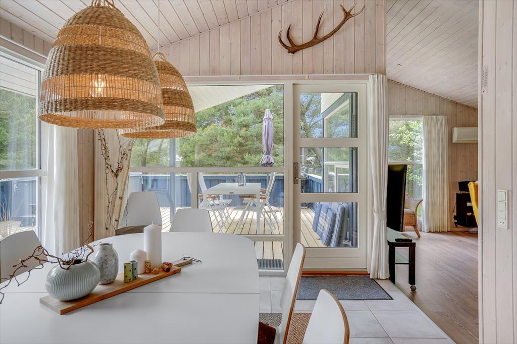 Det 100 m2 store sommerhus er renoveret på vellykket vis, så indretningen er lys og atmosfæren indbydende. Husets skønne opholdsrum indbyder til mange hyggestunder omkring spisebordet og i sofaafdelingen nær brændeovnen, og i det åbne og veludstyrede køkken har I god plads til at kokkerere. På de tre soveværelser kan I se frem til en god nats søvn i de komfortable senge, og når I er klar til at stå op, er der mulighed for at blive frisket op med et brusebad på det store badeværelse. Er I mere i humør til wellness og afslapning, kan det lade sig gøre i saunaen på badeværelset.