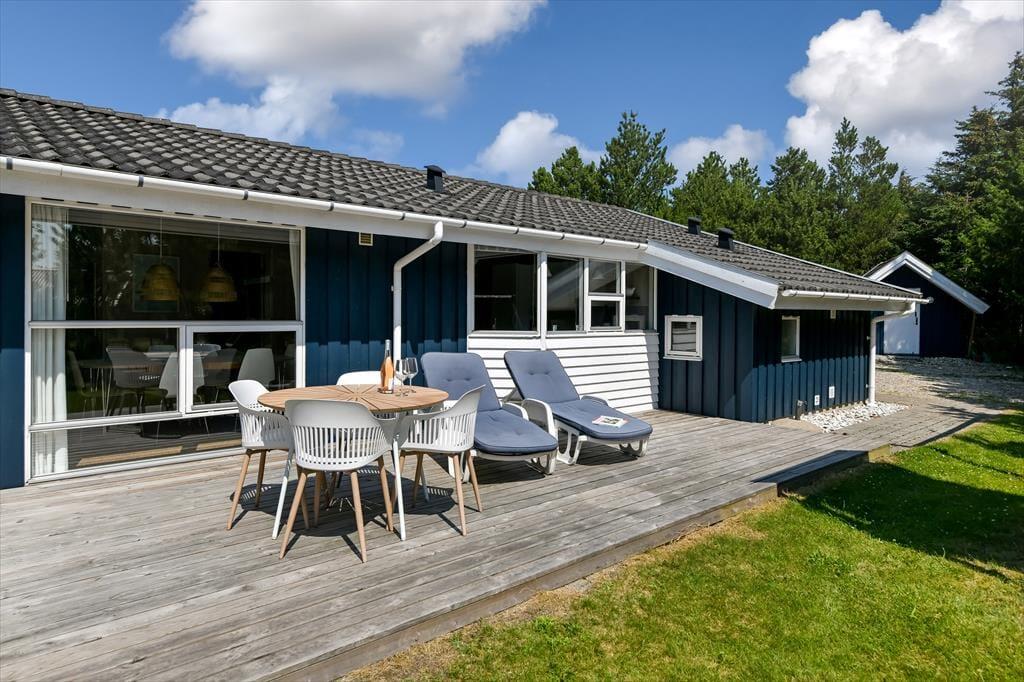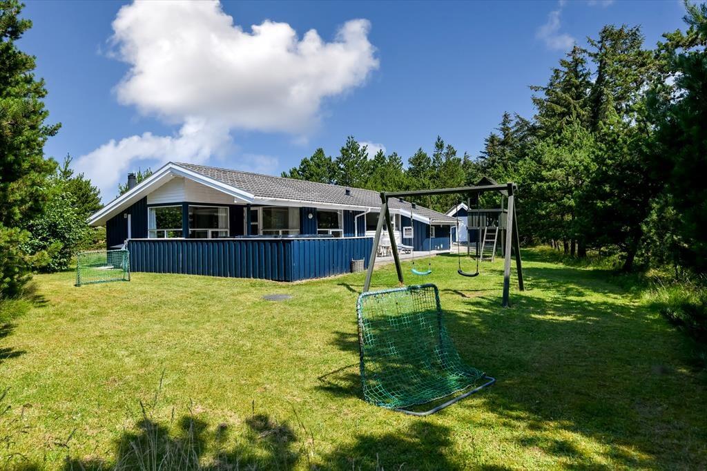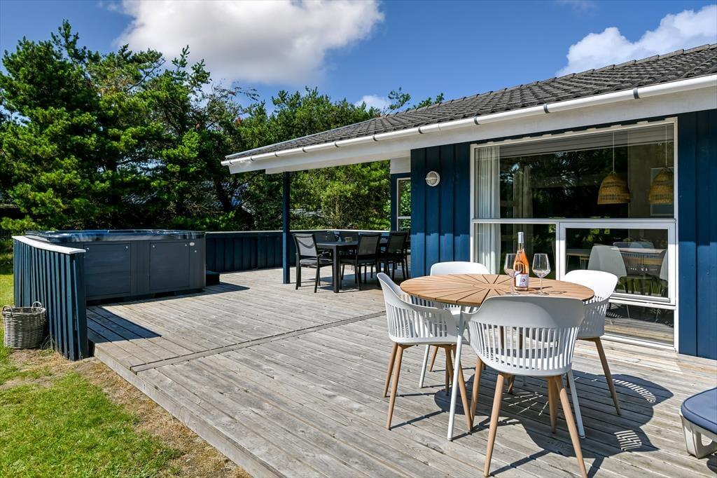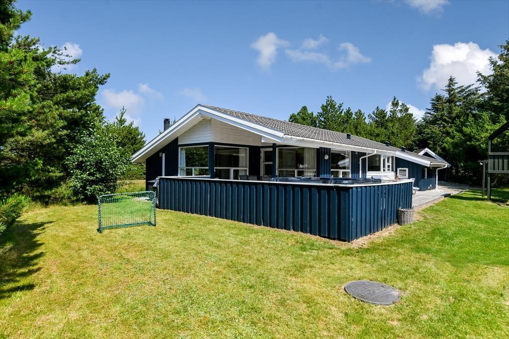 Både store og små familiemedlemmer kan se frem til en skøn ferie her på Nordkrogen i Blåvand. Dette sommerhus er nemlig stort, stilfuldt indrettet og udstyret med mange lækre detaljer – inklusiv spabad, sauna og brændeovn. Ude er der også glimrende forhold, for på den ugenerede naturgrund har I gode legefaciliteter til børnene og en stor træterrasse med udespa.