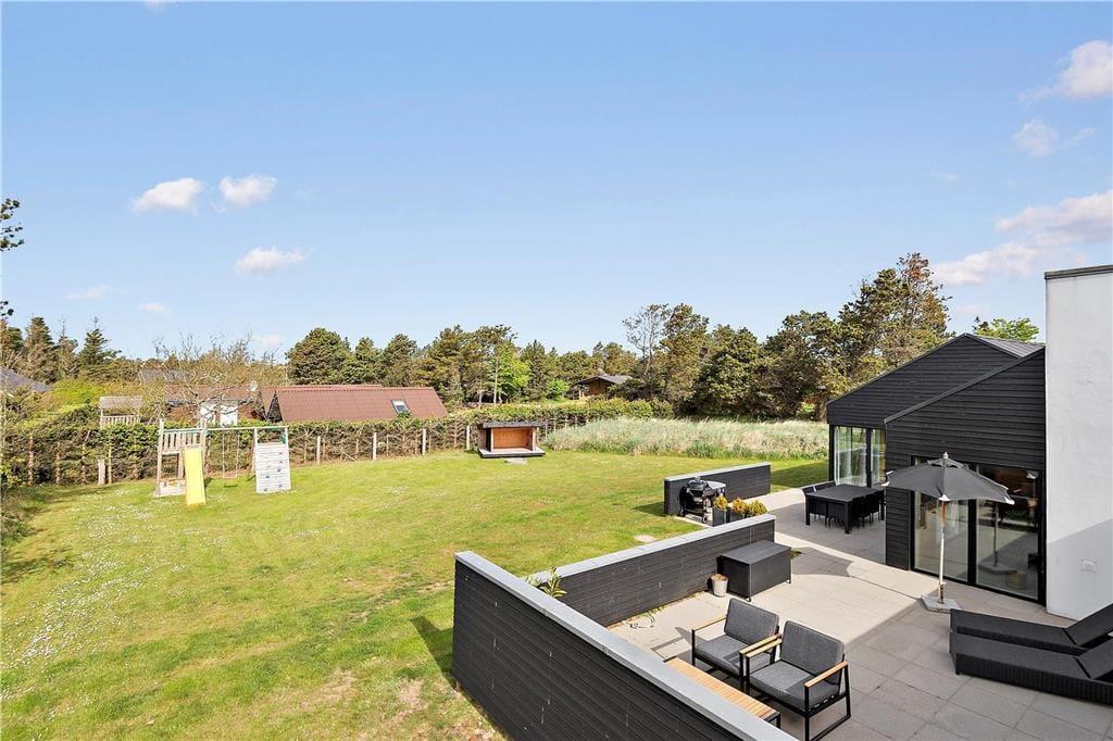 På begge sider af sommerhuset er der gode og store fliseterrasser, så I kan sætte jer lige der, hvor solforholdene er bedst. Med flotte havemøbler, komfortable liggestole og en grill er der lagt op til lækre sommerfrokoster, fredelige læsestunder og siestaer i solskinnet, mens græsplænen indbyder til leg og boldspil. De alleryngste familiemedlemmer kan få glæde af legestativet og sandkassen, mens hele familien kan hygge sig sammen ved havens bålsted og shelter.