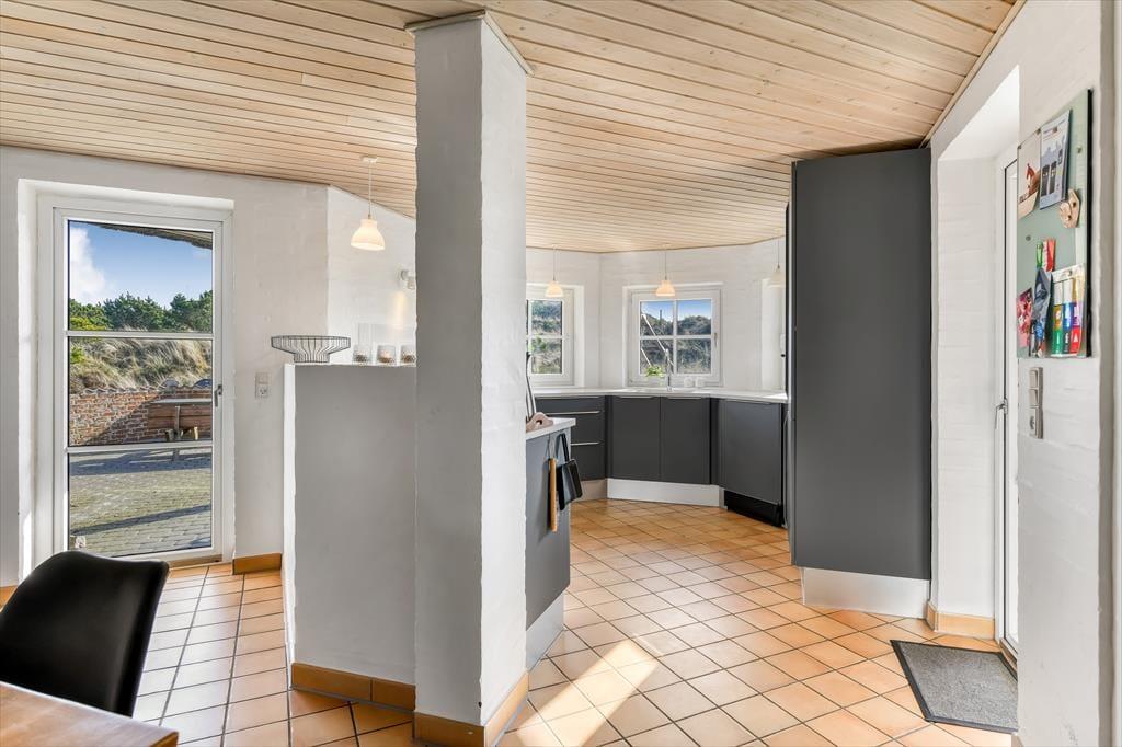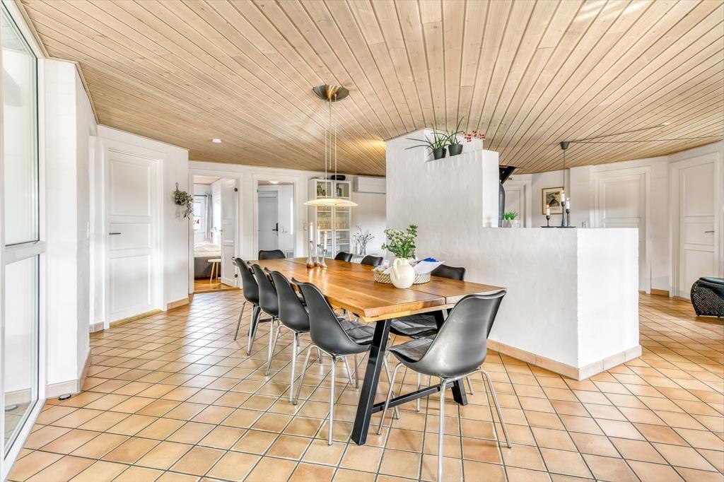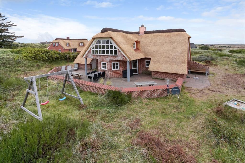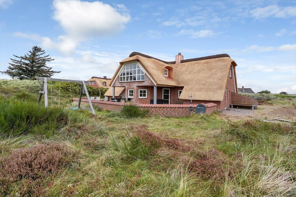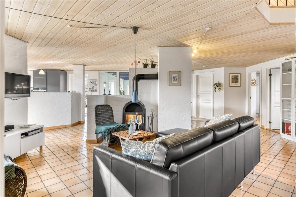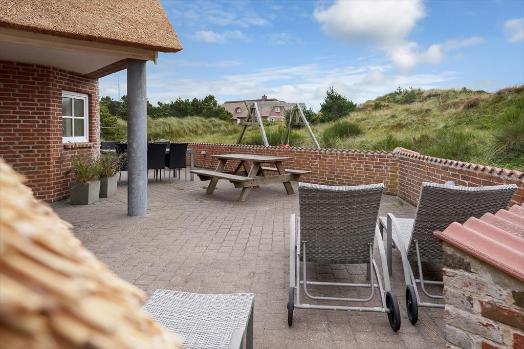 Sommerhusets store terrasse indbyder til udendørs hygge fra morgen til aften. Med en kop kaffe i hånden kan du starte dagen med at nyde solopgangen og den friske havluft, mens du lytter til bølgernes brusen i baggrunden. Terrassen har både overdækkede og åbne områder, så du kan finde en plads i solen eller i skyggen alt efter behov. Her er rig mulighed for at nyde måltider i det fri, grille sommerens favoritter eller blot slappe af med en god bog, mens vinden rusker blidt i marehalmen.