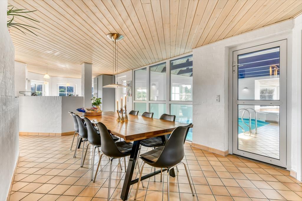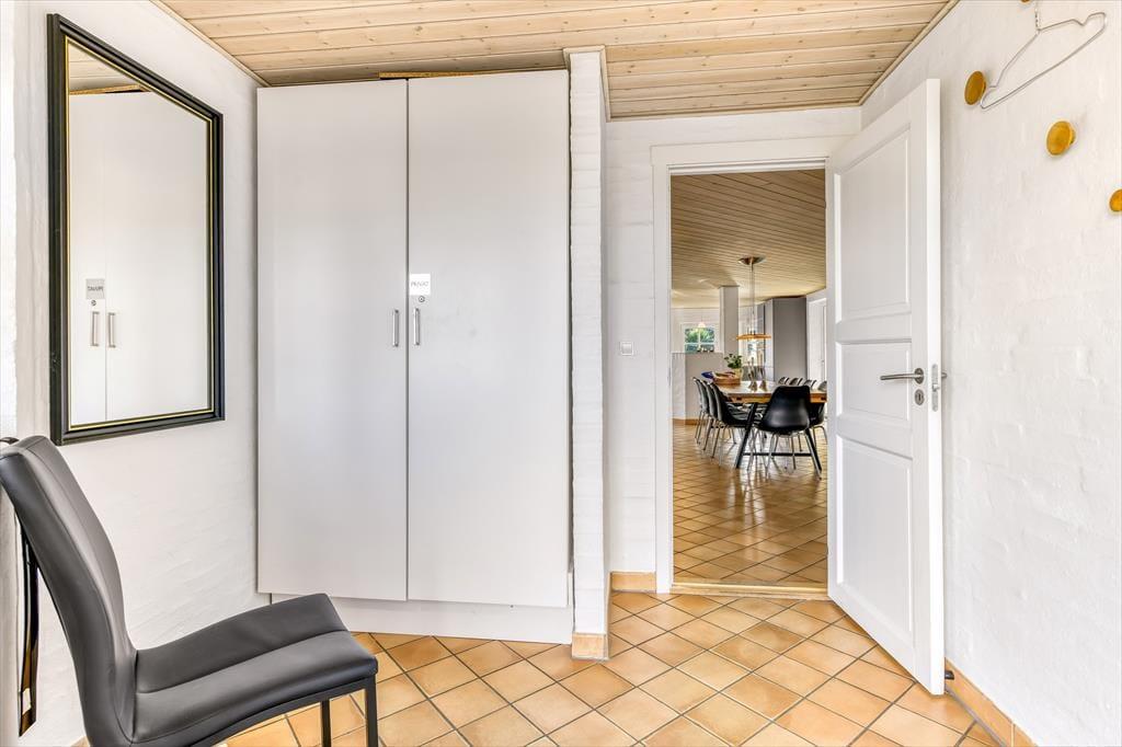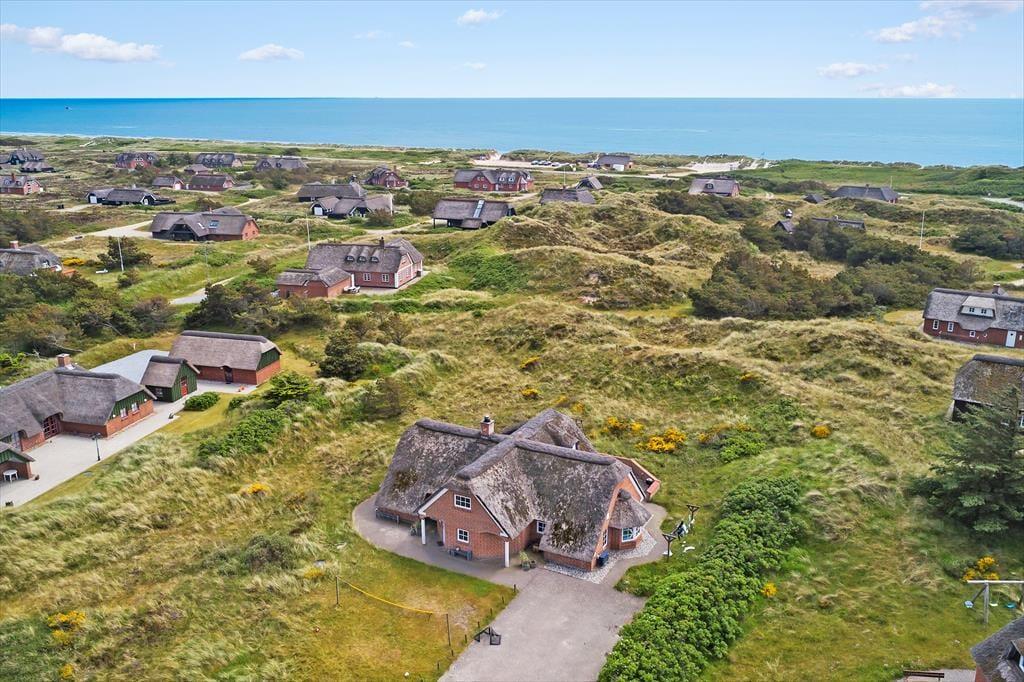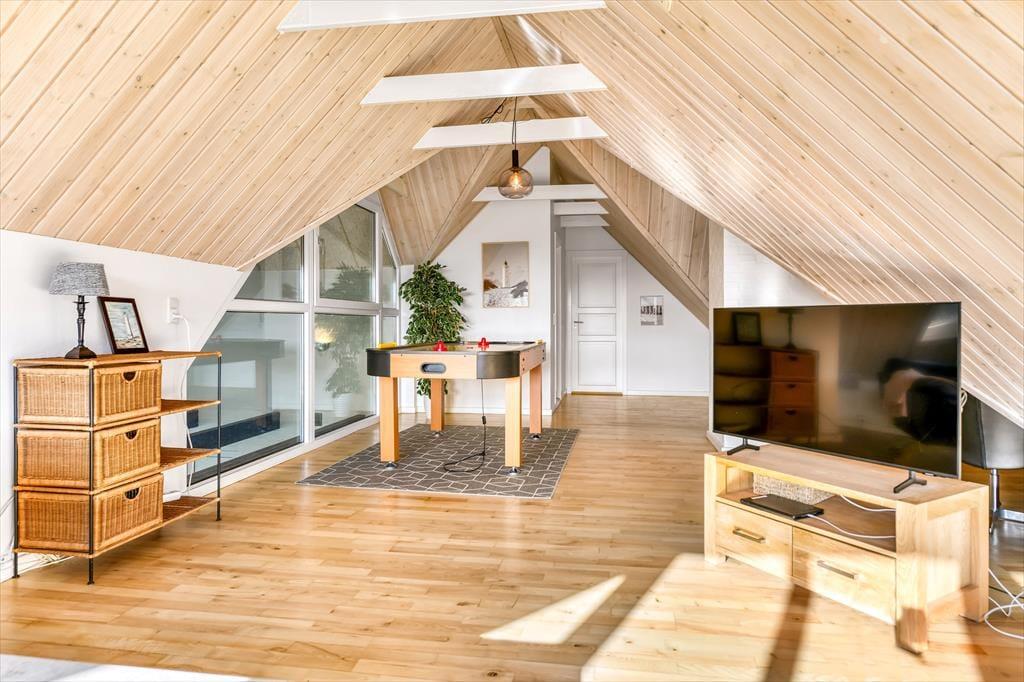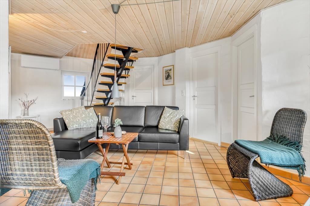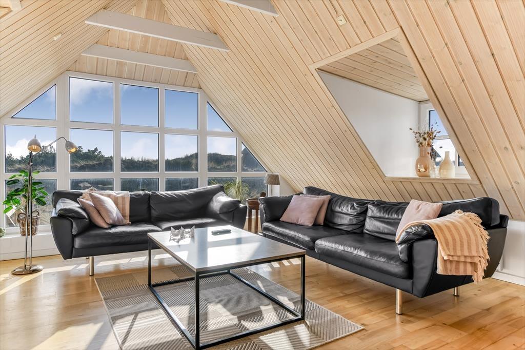 Sommerhusets store terrasse indbyder til udendørs hygge fra morgen til aften. Med en kop kaffe i hånden kan du starte dagen med at nyde solopgangen og den friske havluft, mens du lytter til bølgernes brusen i baggrunden. Terrassen har både overdækkede og åbne områder, så du kan finde en plads i solen eller i skyggen alt efter behov. Her er rig mulighed for at nyde måltider i det fri, grille sommerens favoritter eller blot slappe af med en god bog, mens vinden rusker blidt i marehalmen.