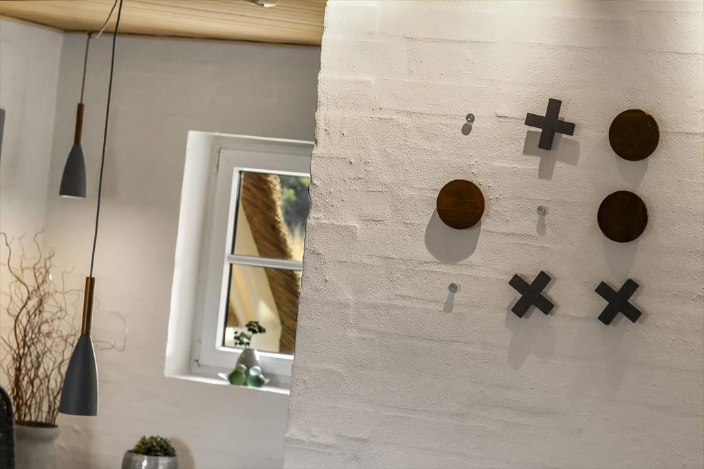 Når I træder indenfor i det stråtækte sommerhus, kan I straks se og mærke husets flotte stand og hyggelige atmosfære, for der er kræset om detaljerne både i stueplan og på førstesalen. Hvis I er mange, der holder ferie sammen, er det rart, at husets fem soveværelser og to badeværelser samt et gæstetoilet er fordelt på begge etager, så I har lidt ekstra privatliv og mulighed for at putte de mindste børn før resten af selskabet.