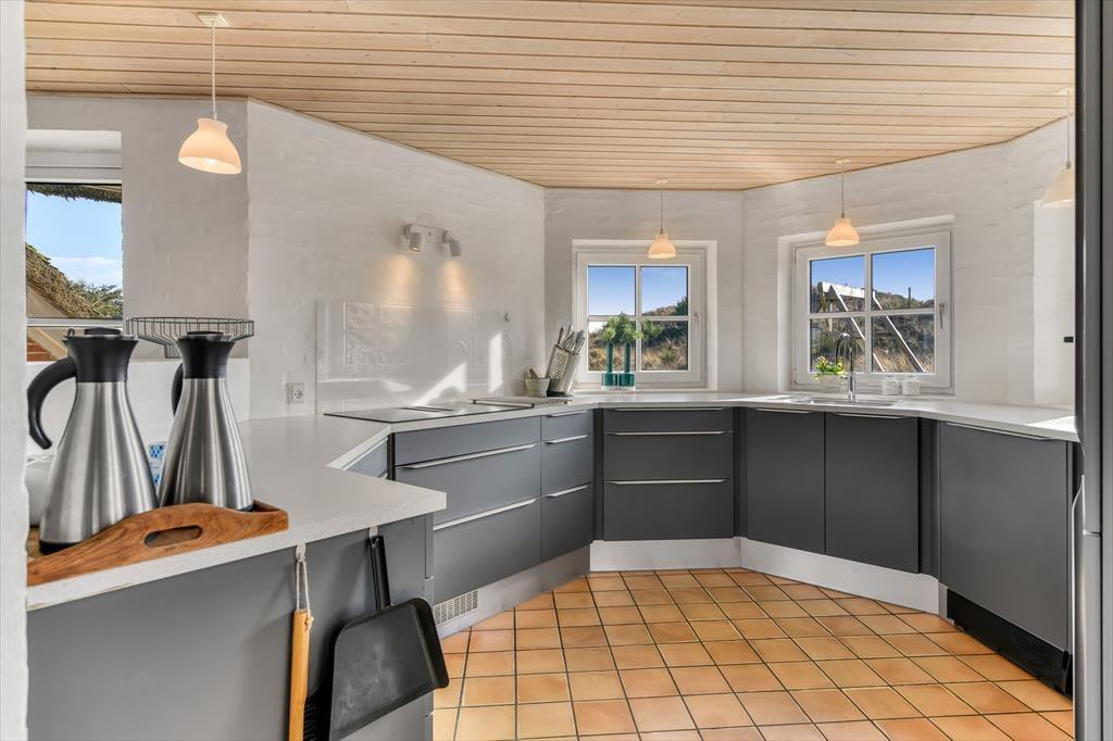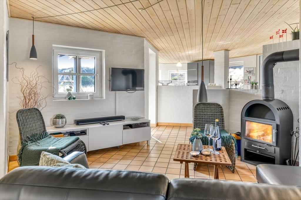Stue og køkken smelter sammen i ét stort opholdsrum, hvilket gør det nemt at være sammen om feriens hyggelige stunder – uanset om det er kortspil ved spisebordet eller en filmaften i sofaen foran brændeovnens varme skær. Når dagen går på hæld, kan du trække dig tilbage i et af de rummelige soveværelser, hvor komfortable senge sikrer en god nattesøvn. Badeværelserne er stilfuldt indrettet og indbyder til afslappende øjeblikke efter en lang dag ved stranden. Huset vedligeholdes løbende både indendørs og udendørs, og fremstår derfor altid pænt.