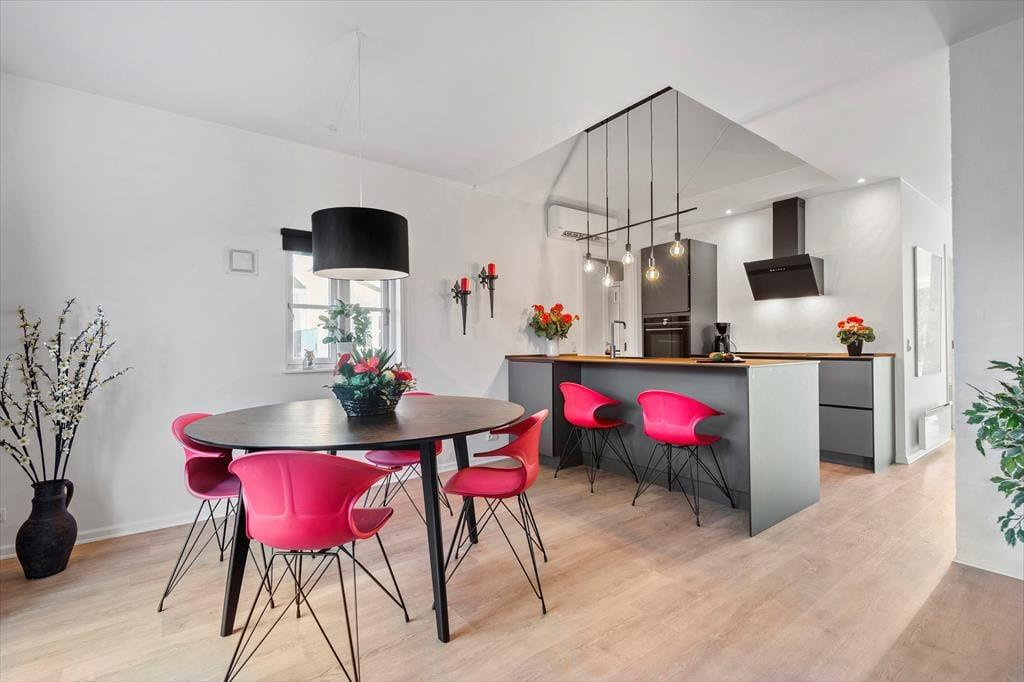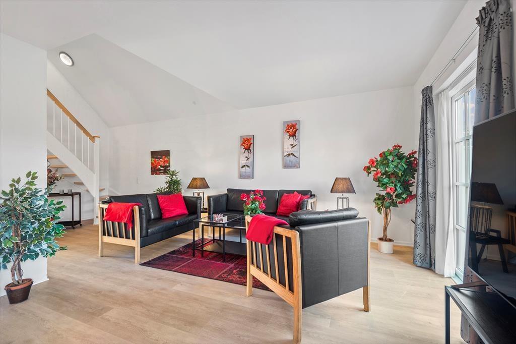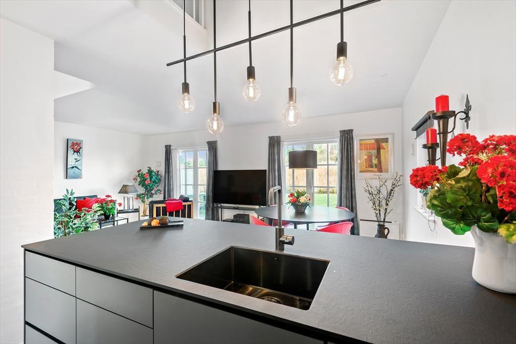 Fra stuen har I direkte adgang til en dejlig terrasse, der virker særdeles tillokkende, så snart solen skinner. Her er godt at være – uanset om I tilbringer en stille eftermiddag i liggestolene eller en lys sommeraften med godt selskab og gang i grillen.